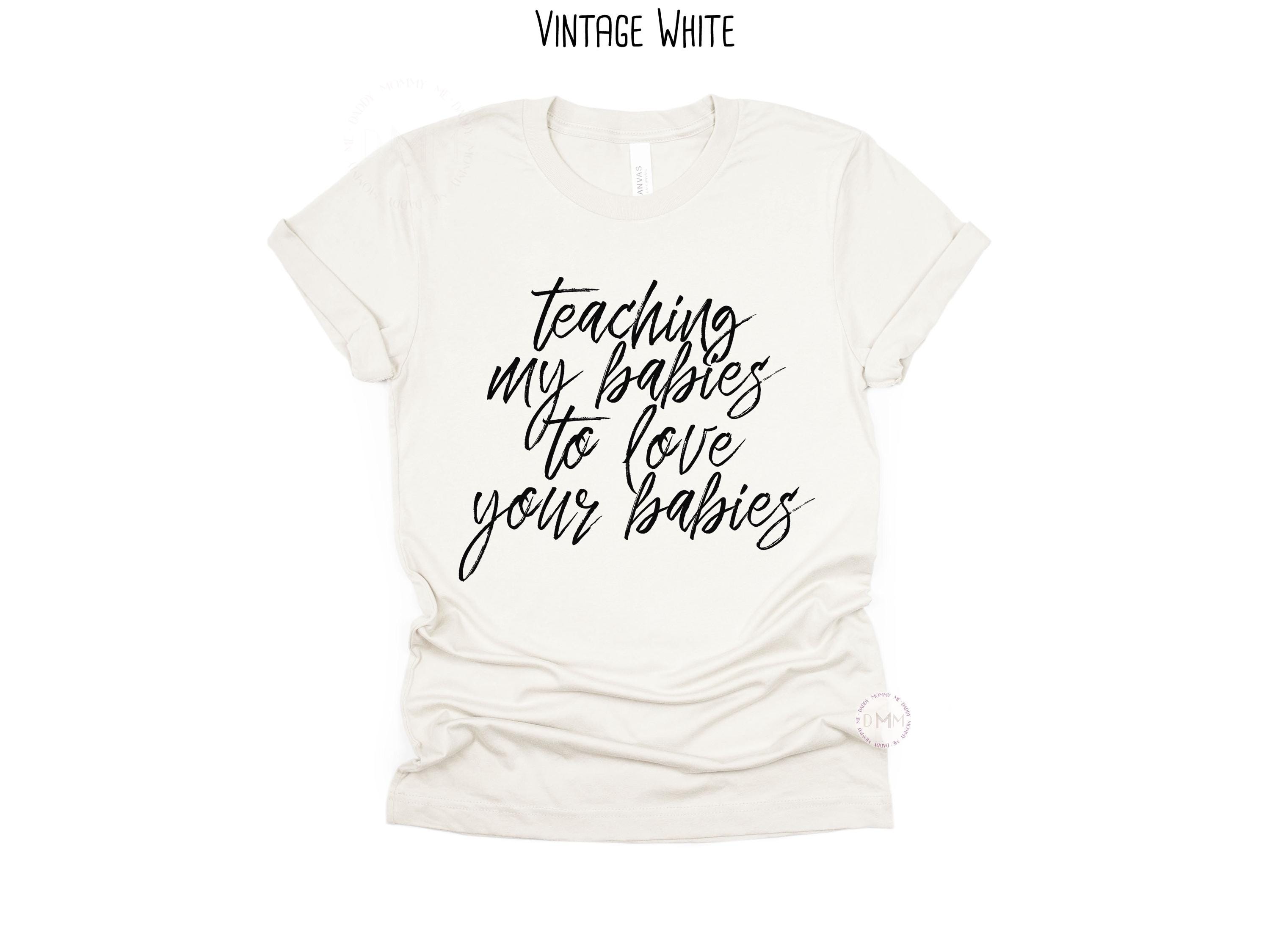 Teaching my babies to love your babies. A meaningful mom shirt that promotes kindness, inclusion, and raising compassionate kids.