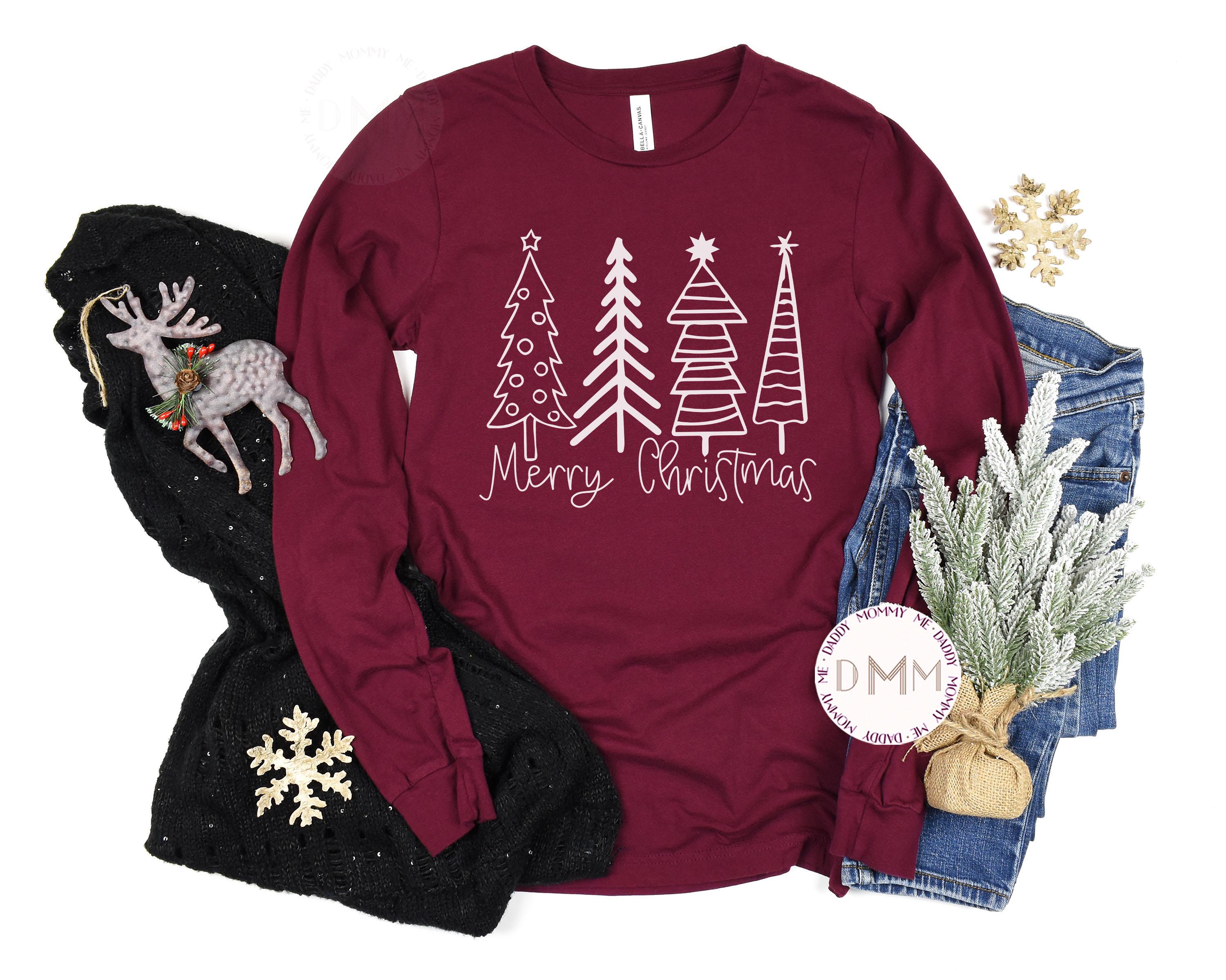 Merry Christmas Trees long sleeve shirt - Bella Canvas brand.