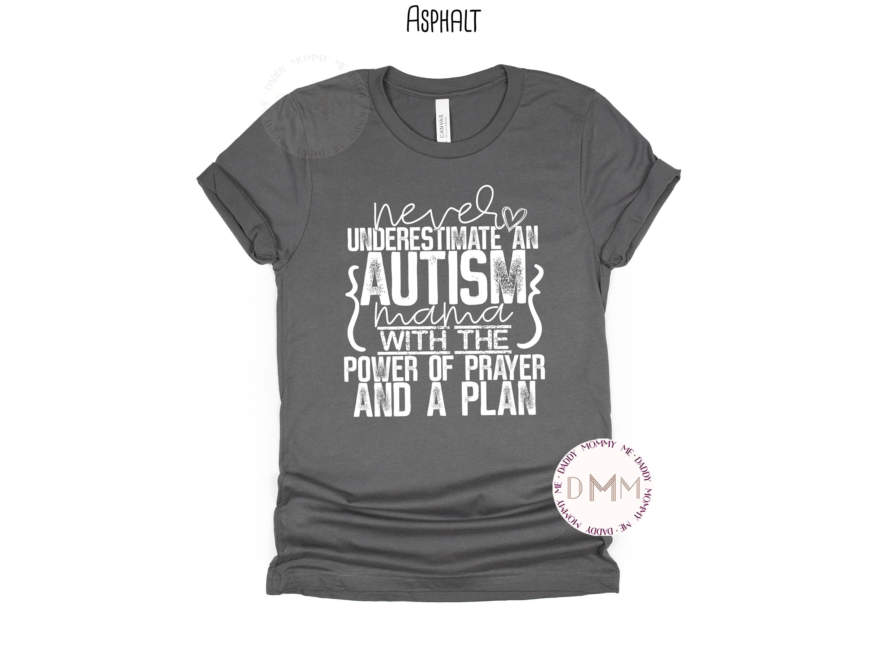 Never Underestimate An Autism Mama With The Power Of Prayer And A Plan Shirt Autism Mom Shirt Autism Awareness Shirt Faith Autism Mama Gift