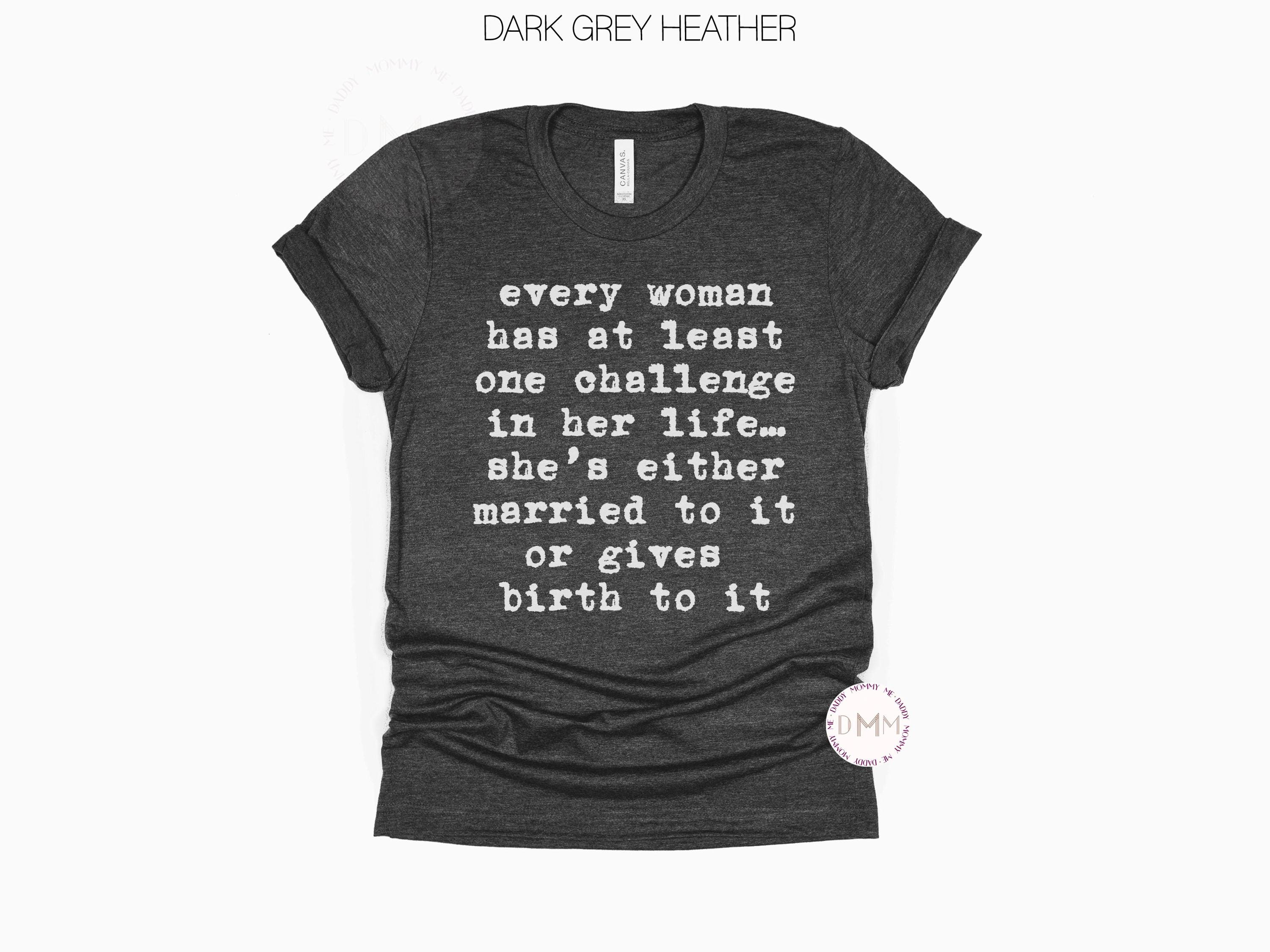 Gift For Here | Every Woman Has At Least One Challenge In Her Life She's Either Married To It Or Gives Birth To It Shirt | Funny Shirts For Mom
