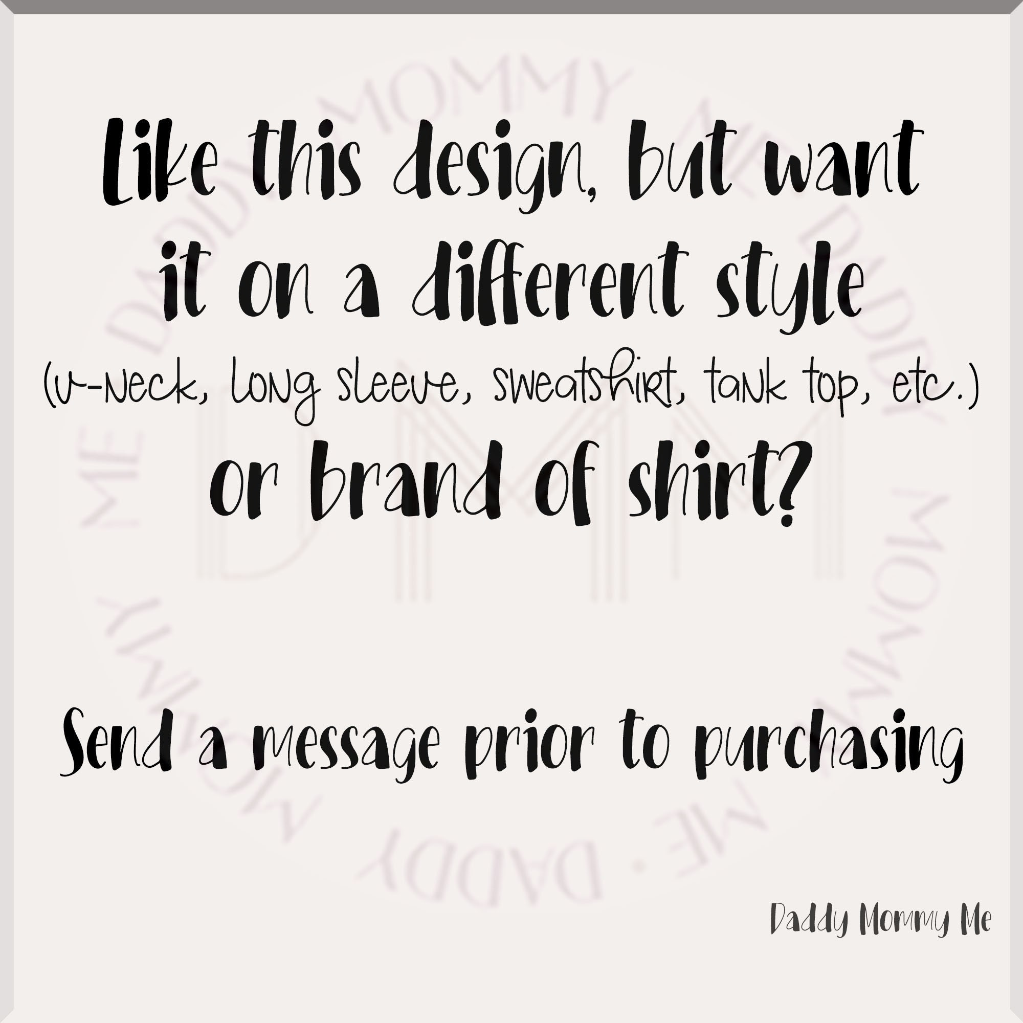 If you would like a custom order or to add a name on a shirt, please send me a message prior to ordering. If you just leave a note on the order, this may delay the processing time as I will need to confirm with you before any personalizations can be made.