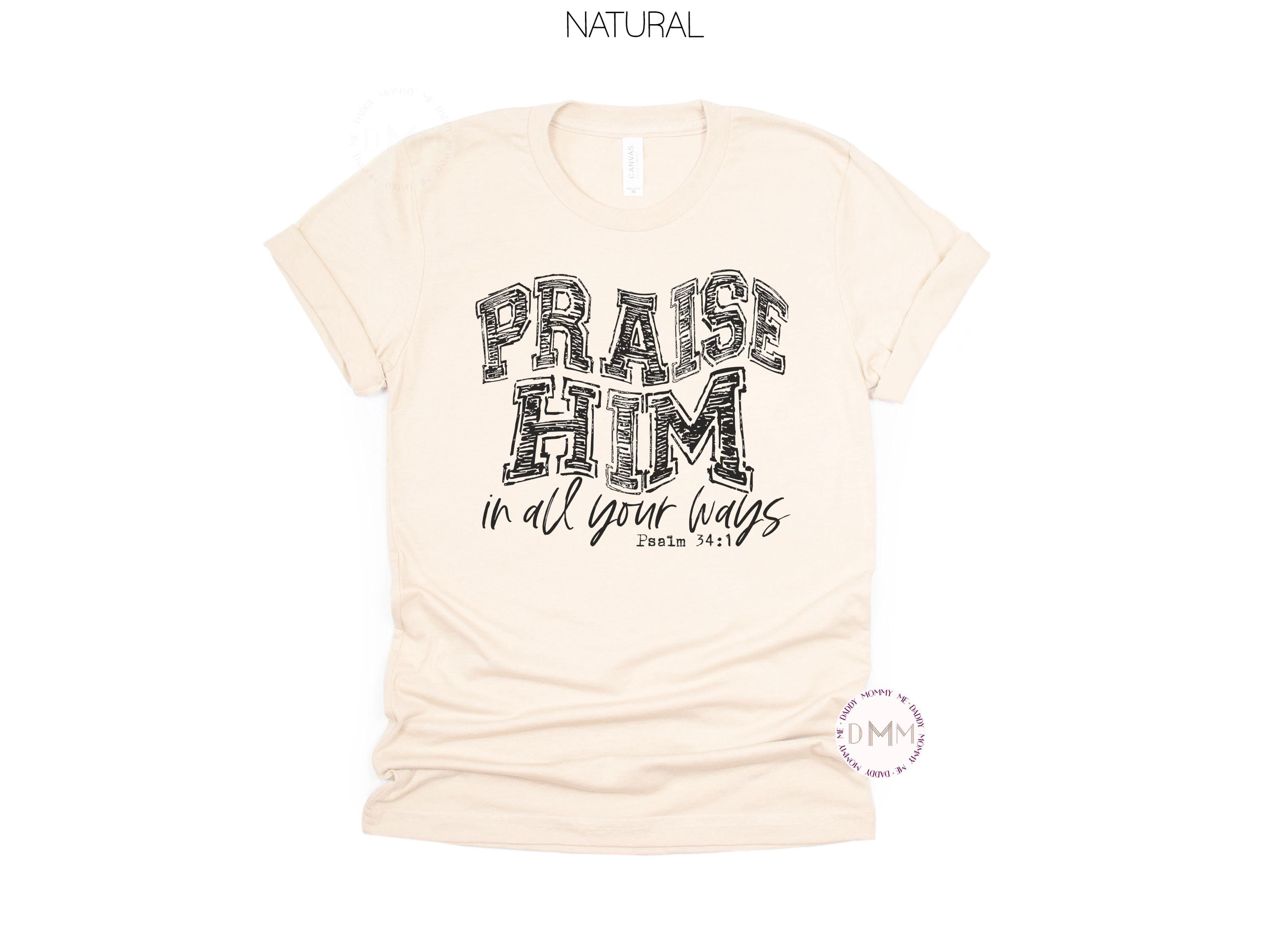 Praise Him In All Your Ways Christian Shirts Religious Tshirts Scripture Tee Bible Verse Inspirational Gift Religious Gift Christian Apparel