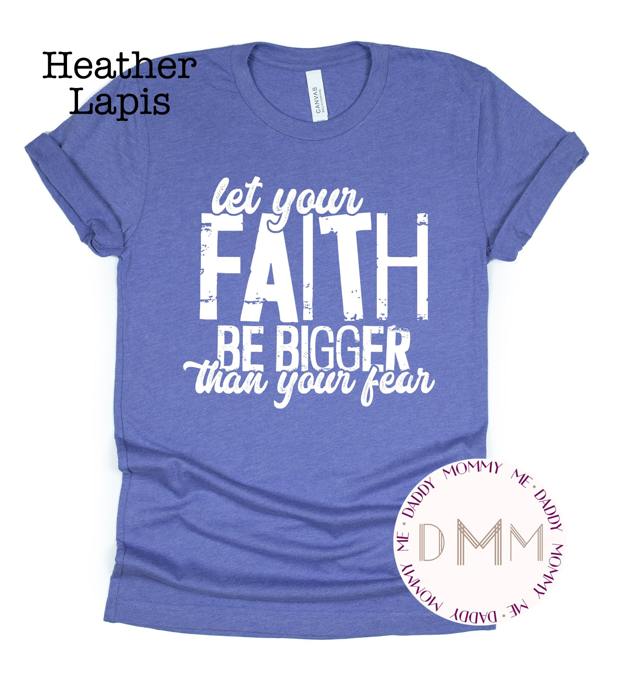 Let Your Faith Be Bigger Than Your Fear Shirt. Unisex. Design only available in white.
