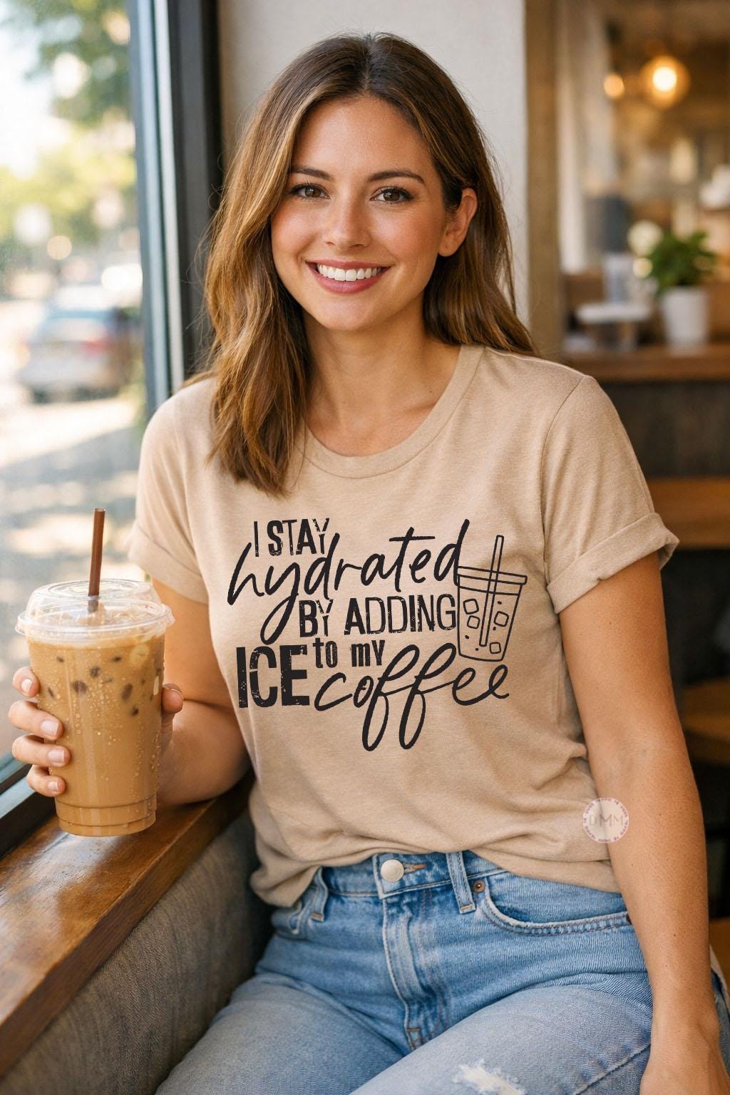 I Stay Hydrated By Adding Ice To My Coffee Shirt, Funny Coffee Shirt, Iced Coffee Shirt, Funny Caffeine Shirt Coffee Lover Shirt Love Coffee Stay Hydrated Iced Coffee Shirt, Funny Coffee Lover Tee, Coffee Addict Shirt, Barista Gift, Cute Coffee Graphic Tee, Mom Coffee Shirt
