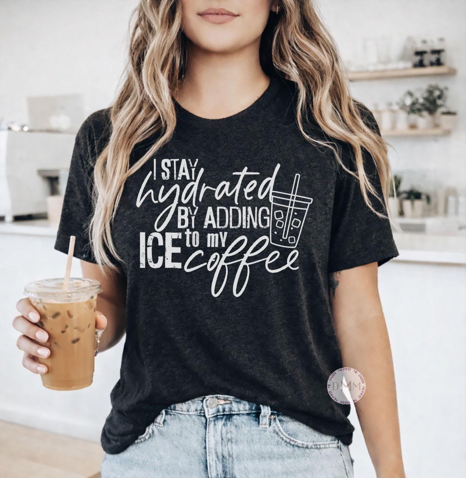 Stay Hydrated… by Adding Ice to Your Coffee. If iced coffee is basically a personality trait, this tee was made for you. This fun and relatable graphic shirt is perfect for coffee lovers who know that staying hydrated sometimes means another iced coffee.