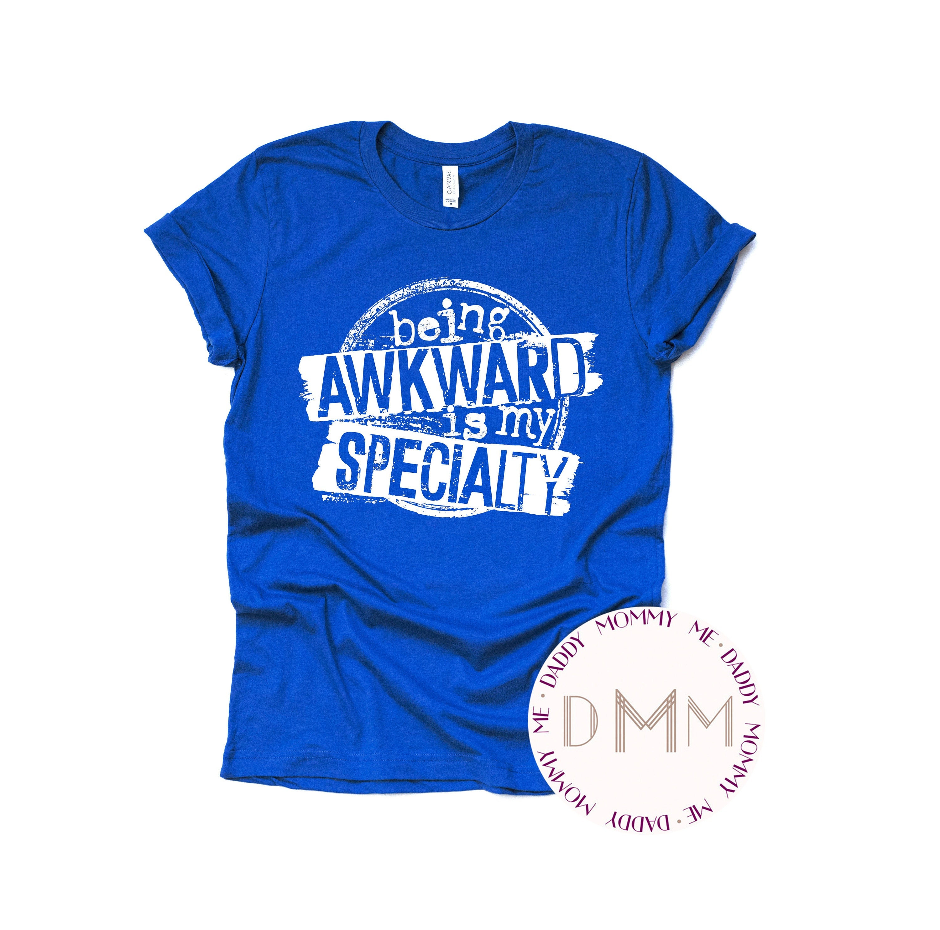 Being Awkward Is My Specialty Shirt. Unisex. Design only available in white.