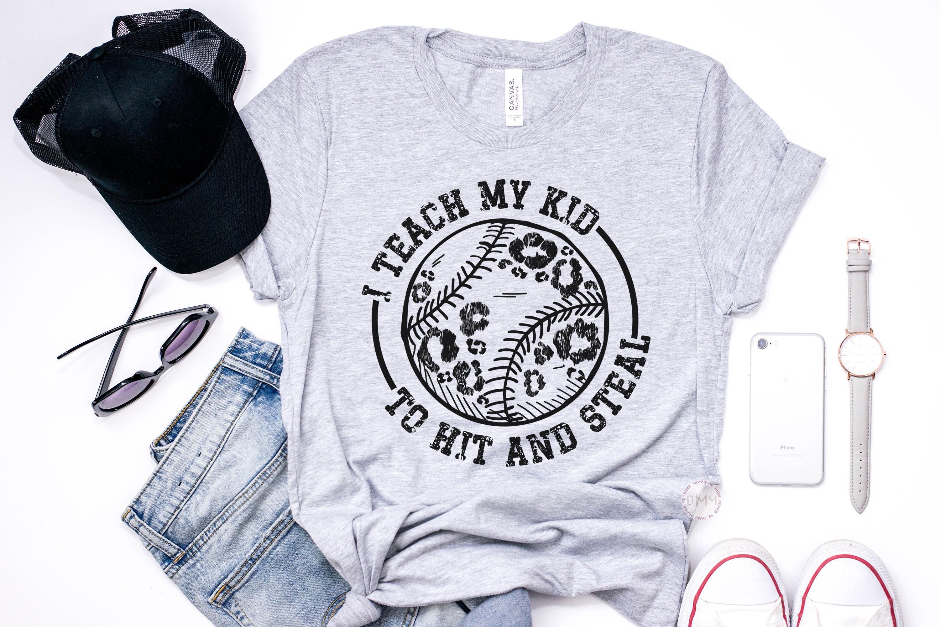 Funny Baseball Mom Shirt - I Teach My Kid To Hit And Steal Shirt, Baseball Shirt For Mom, Baseball Tee, Baseball Mama, Sarcastic Baseball