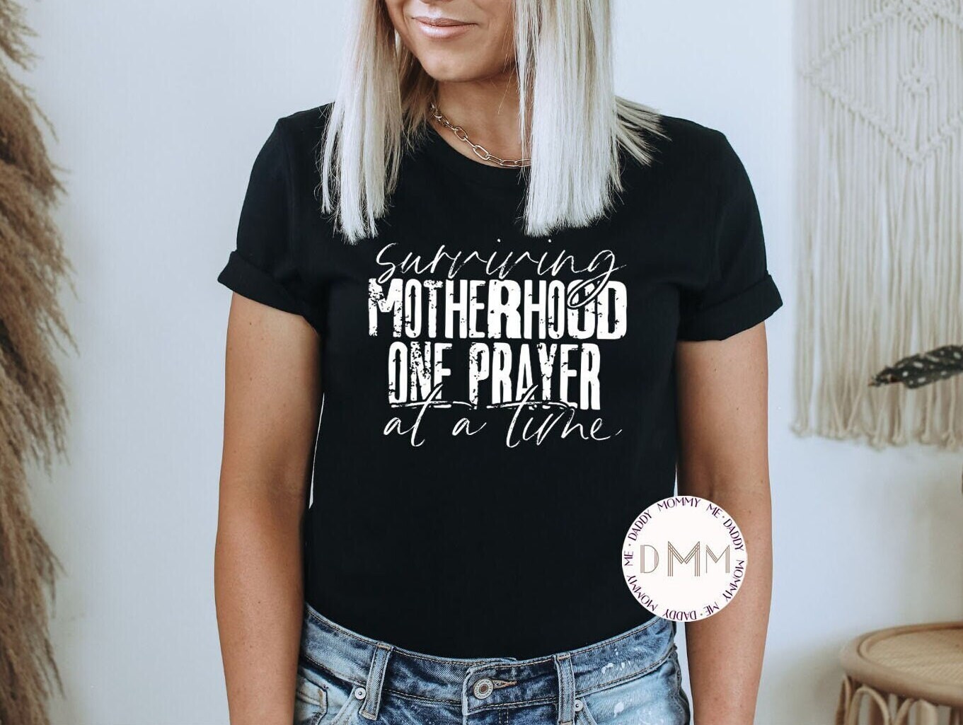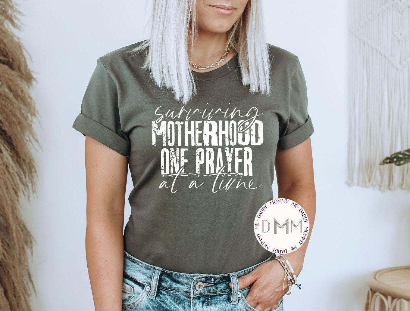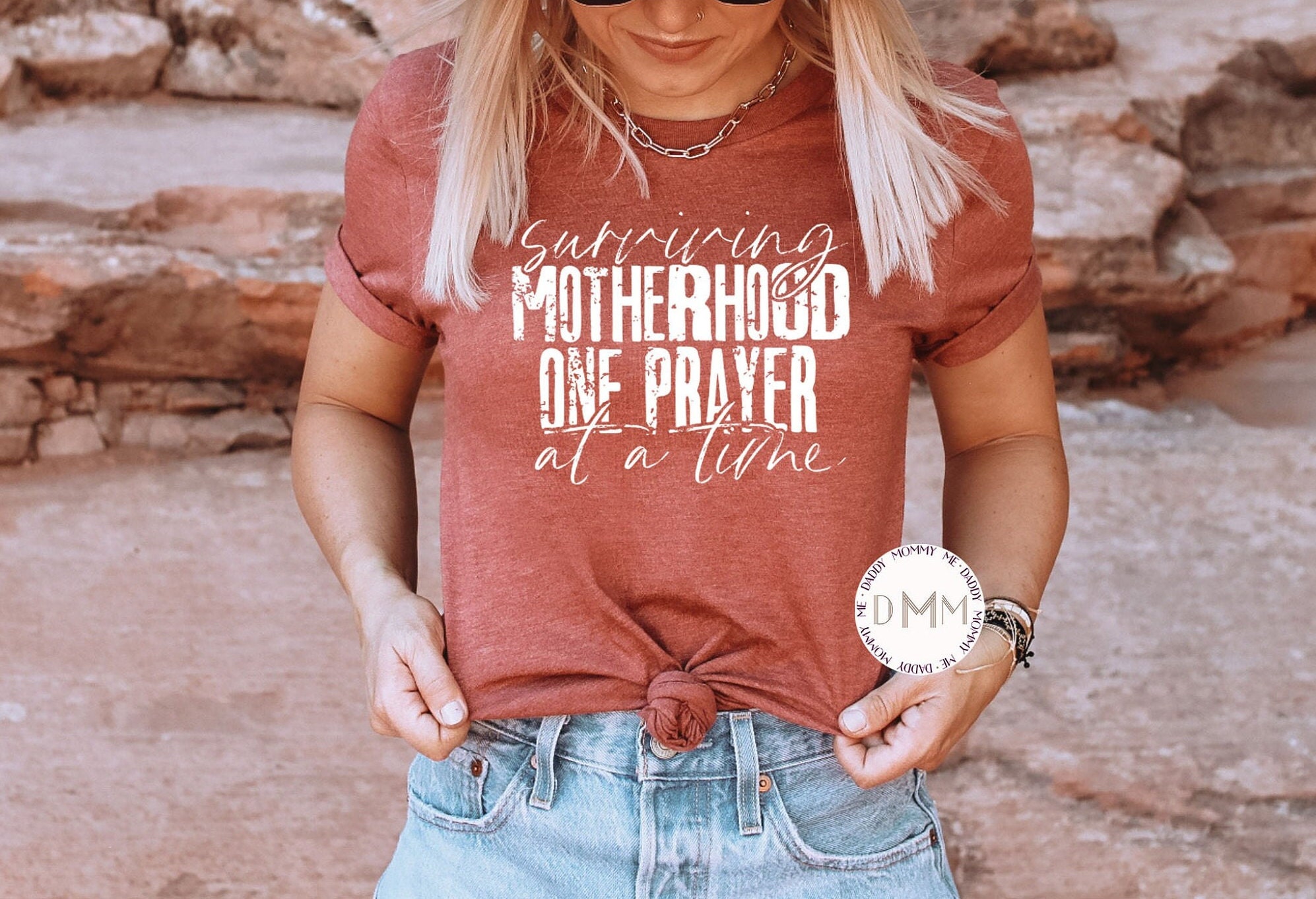 Surviving Motherhood One Prayer At A Time Shirt - Praying Mom Shirt - Christian Moms Shirt - Unisex Graphic Tee - Mom Gift - This Mama Prays