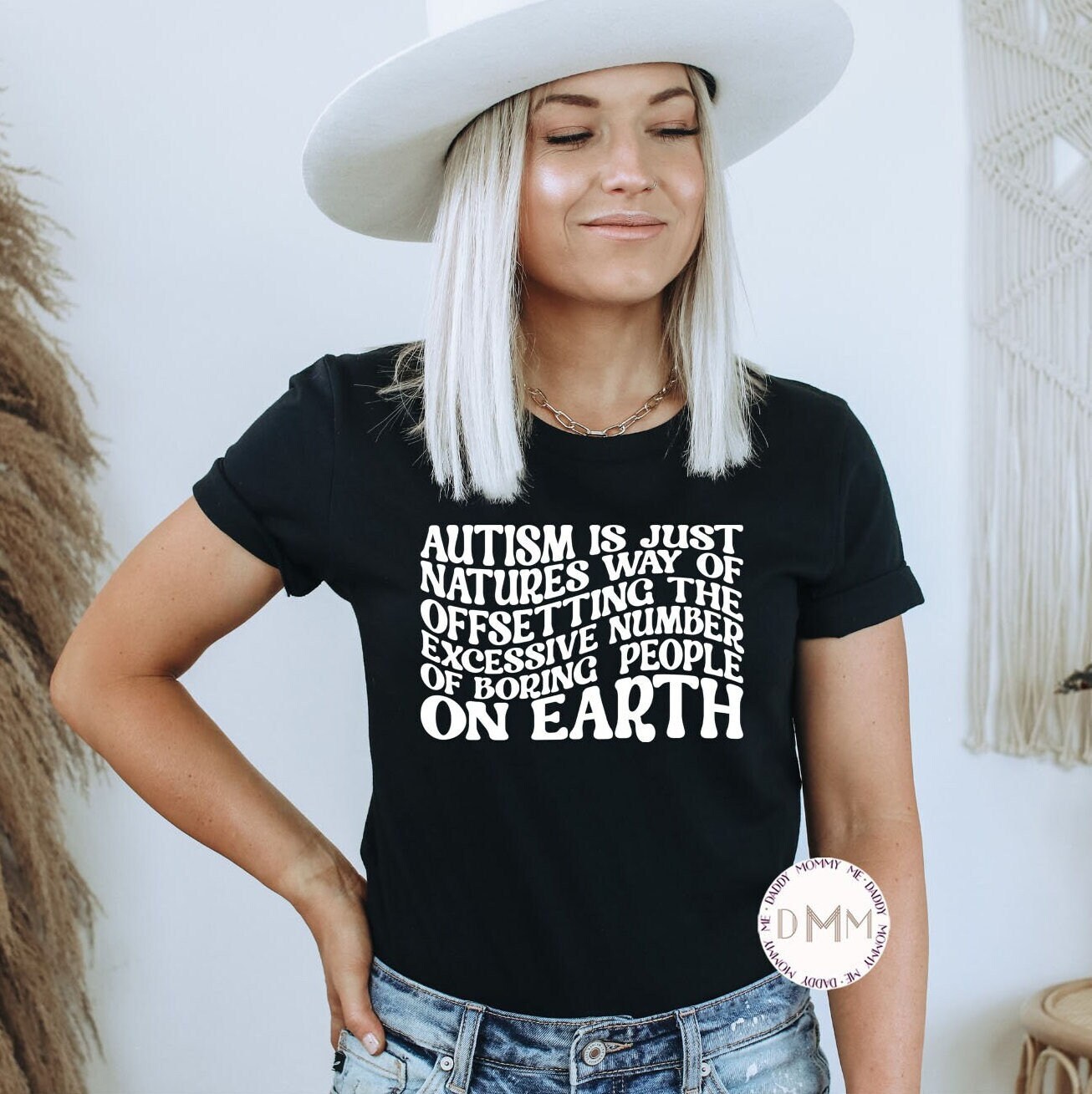 Autism Is Just Natures Way Of Offsetting The Excessive Number Of Boring People On Earth Shirt. Graphic design in white - screen print.