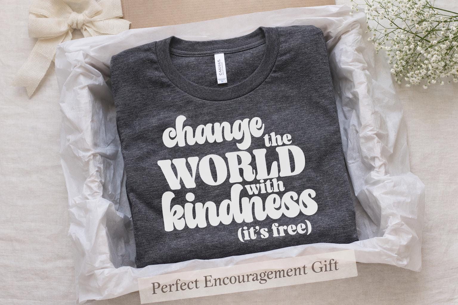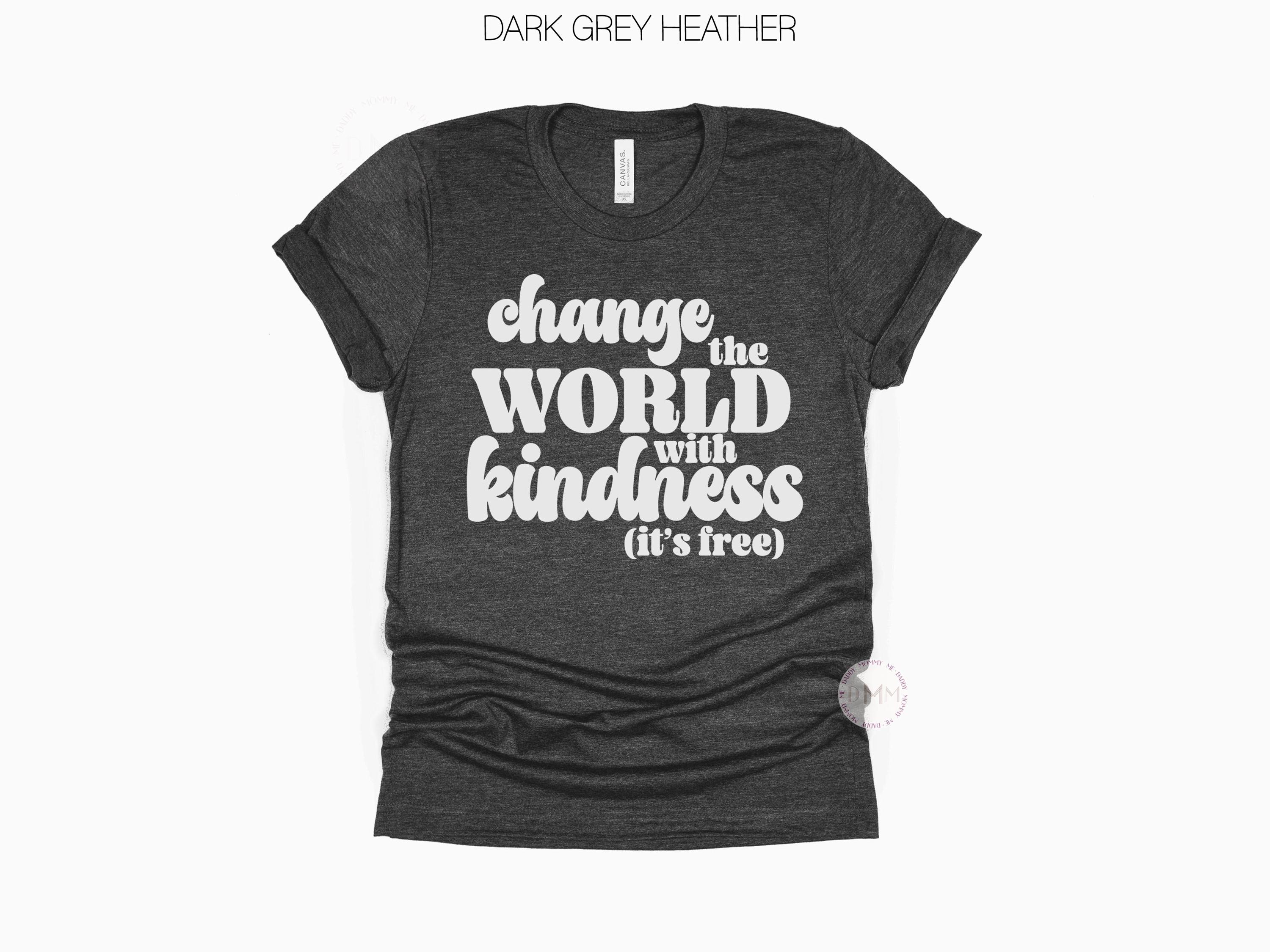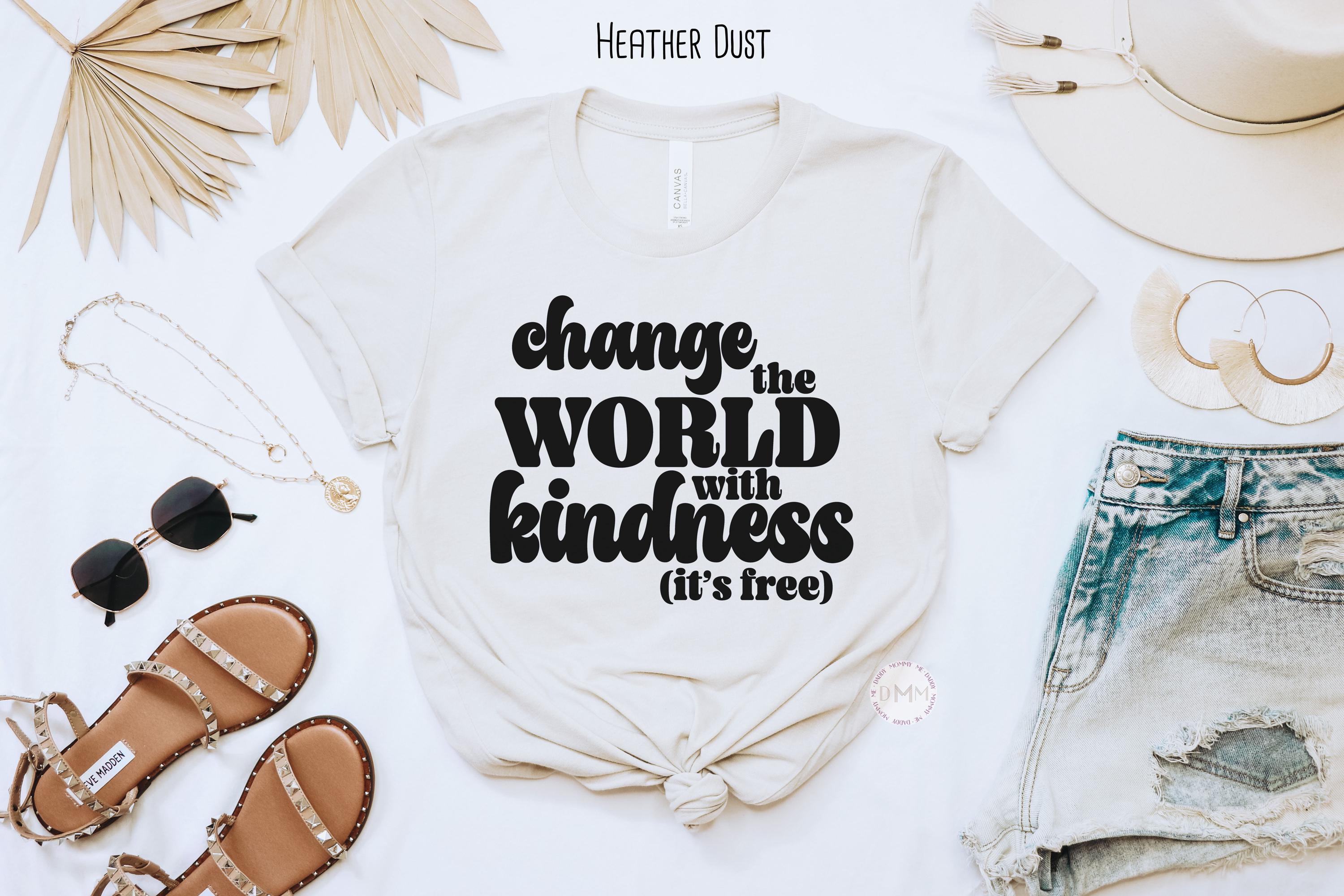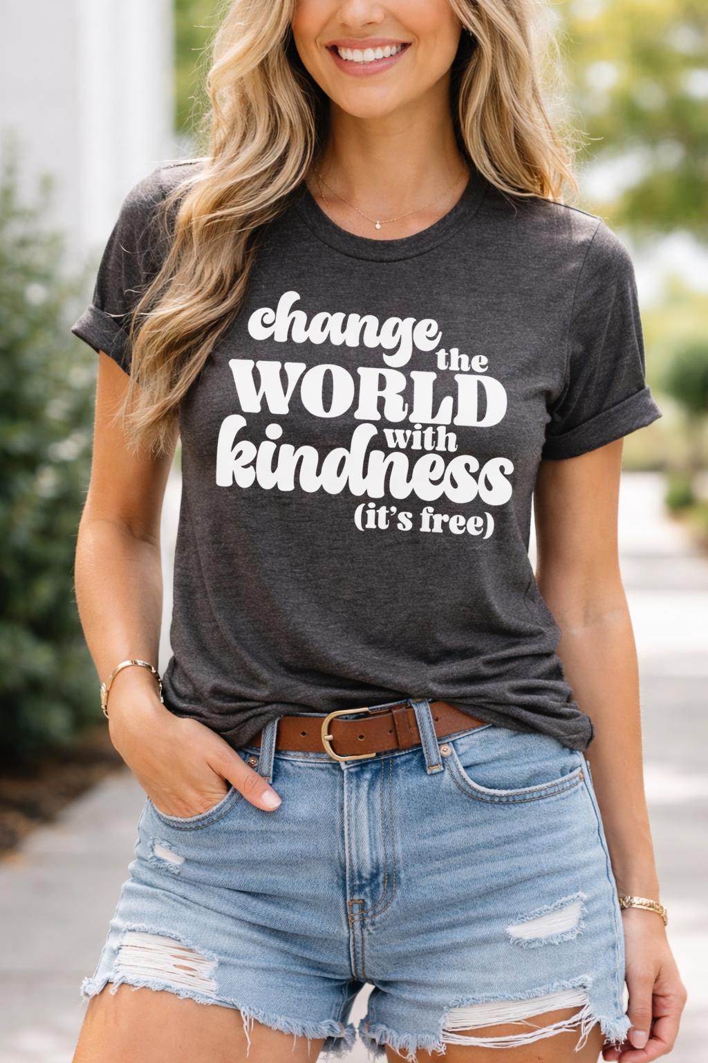 Change the World with Kindness (It’s Free). Spread positivity everywhere you go with this uplifting and stylish graphic tee. Designed to inspire compassion and confidence, this soft shirt pairs perfectly with jeans, leggings, or layered under a cardigan for an effortless everyday look.