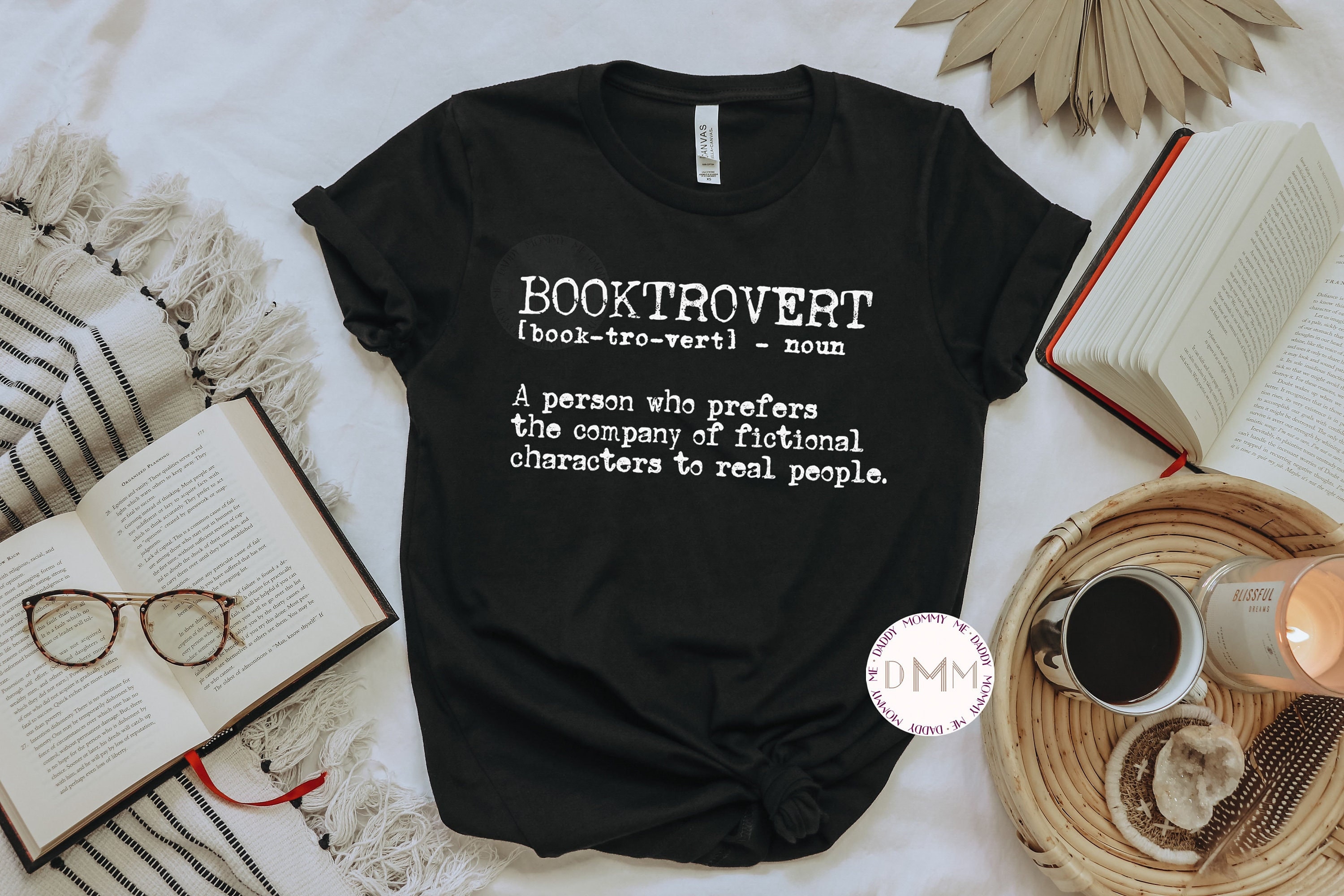 Booktrovert Shirt. Design in white.