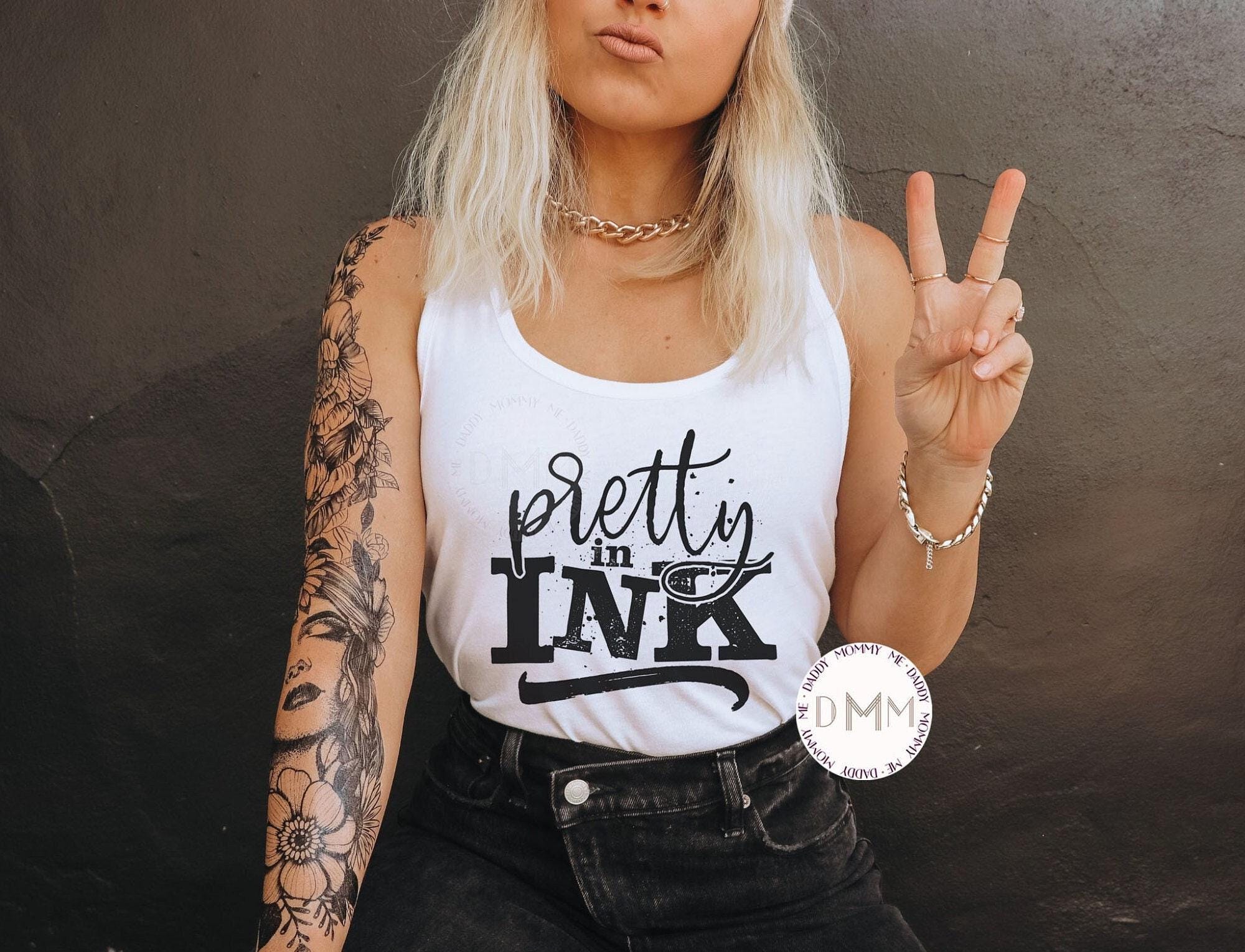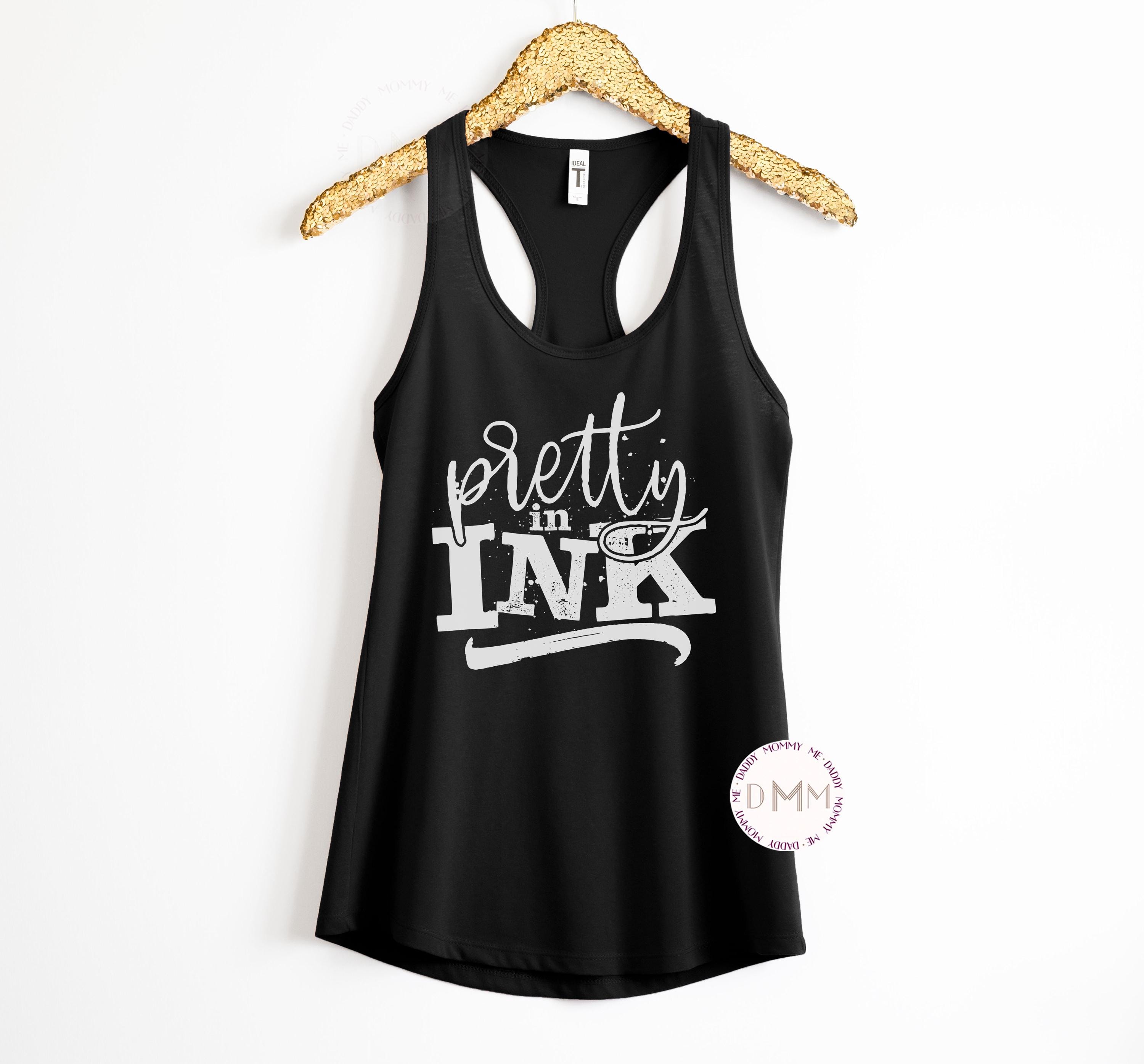 Pretty In Ink Ladies Racerback Tank Top, Tattoo Lover Tank Top, Inked, Tatted, Gift For Tattoo Lover, Tank Tops For Women, Inked Mama Tank
