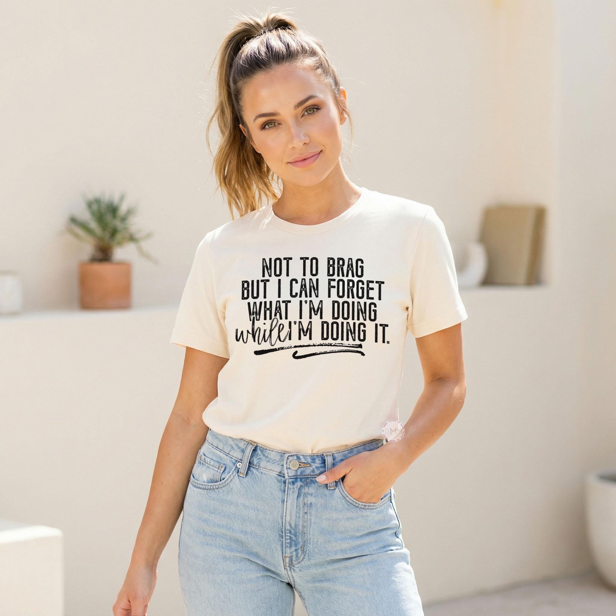 Funny Forgetful Shirt, Not To Brag But I Forget What I'm Doing Shirt, ADHD Humor Tee, Relatable Saying Shirt, Funny Mom Life Shirt