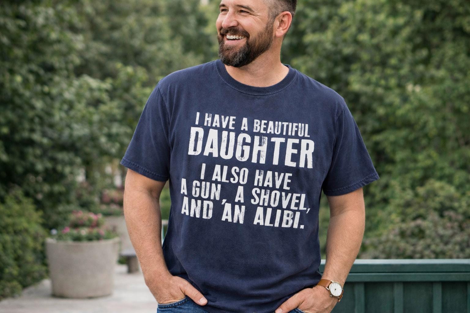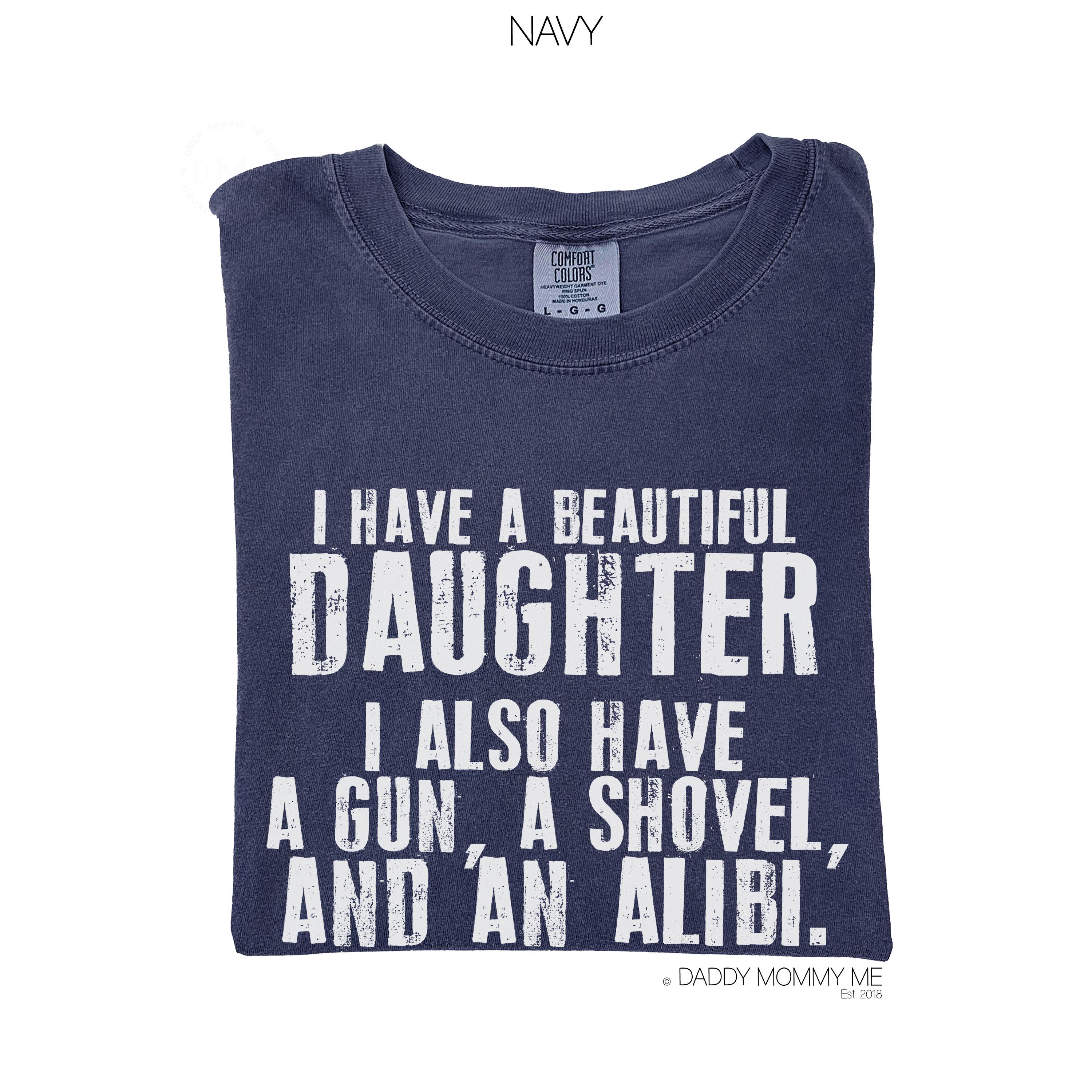 Comfort Colors® Shirt - I Have A Beautiful Daughter I Also Have A Gun A Shovel And An Alibi Shirt, Dad Shirt, Fathers Day, Sarcastic Dad Tee Funny Dad Shirt – Protective Dad Gift – Comfort Colors Graphic Tee