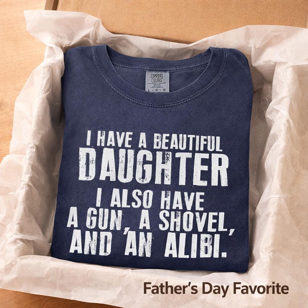If you have a beautiful daughter… you already understand. This bold and slightly edgy tee is perfect for protective dads with a sense of humor. If you’re looking for a bold, funny dad shirt that gets laughs and nods of agreement — this is it.