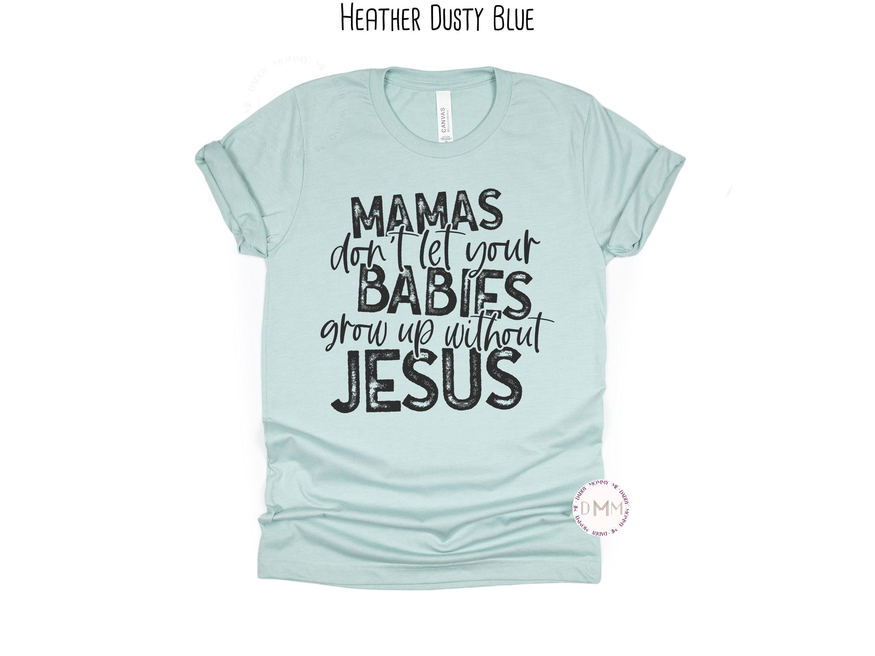 Mamas Don’t Let Your Babies Grow Up Without Jesus Shirt | Christian Mom T-Shirt | Faith Based Graphic Tee | Religious Mama Shirt
