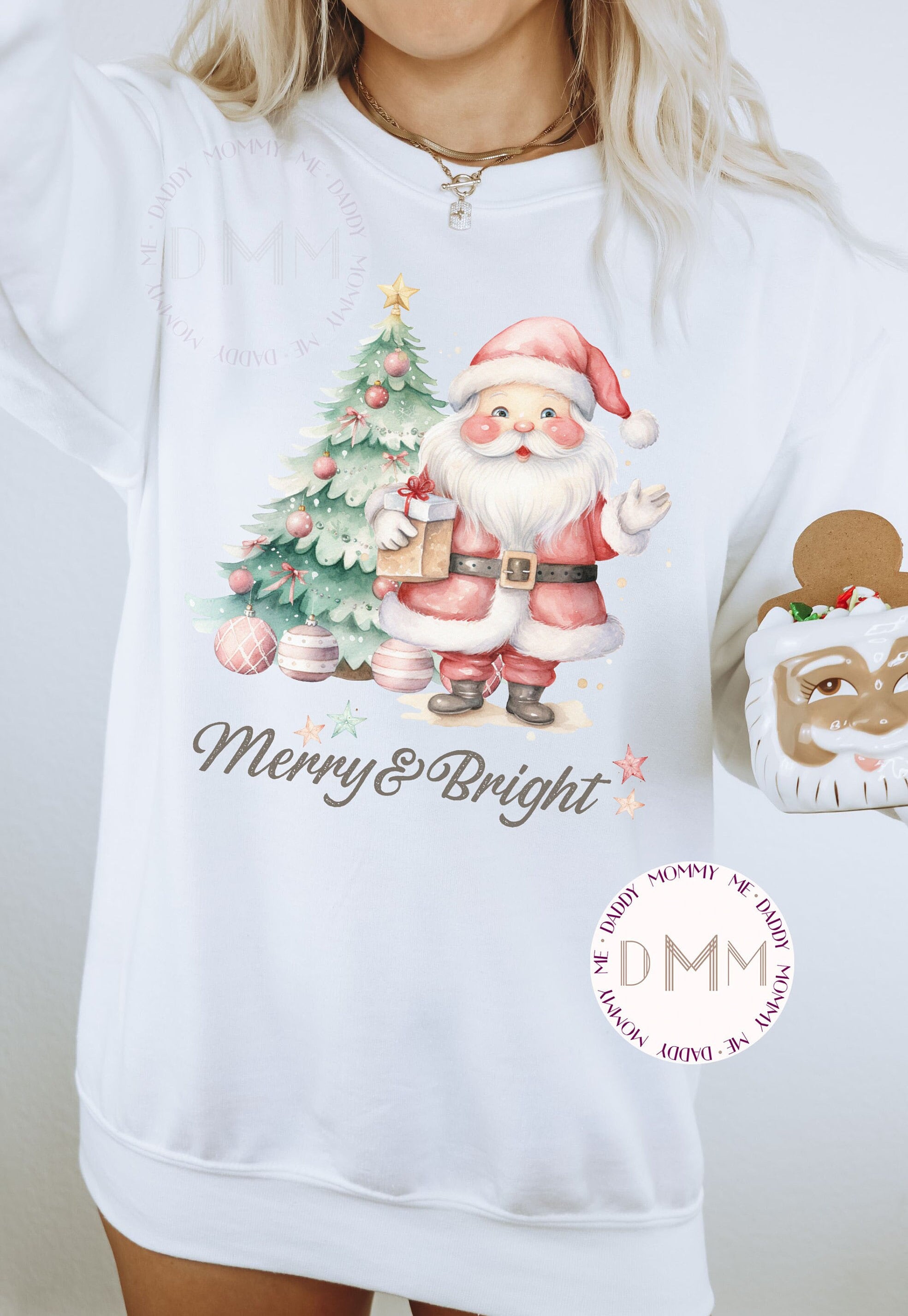 Merry And Bright Santa Sweatshirt Cute Christmas Sweatshirt Trendy Sweatshirt Oversized Sweatshirt Women Santa Sweatshirt Christmas Sweater