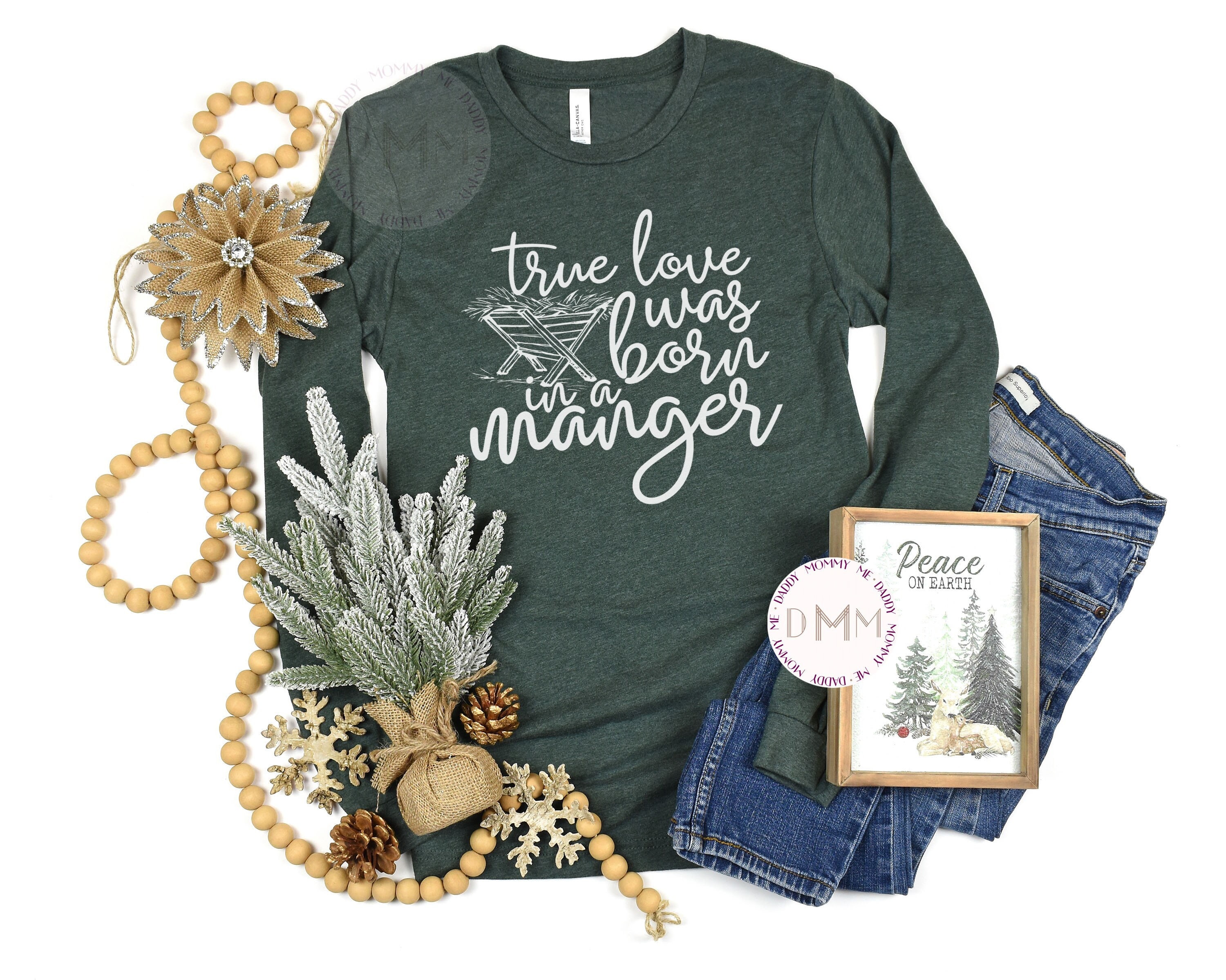 True Love Was Born In A Manger Long Sleeve Shirt, Christian Shirt Mom, Christmas True Story Christmas Shirt, Religious Shirt, Jesus Shirt