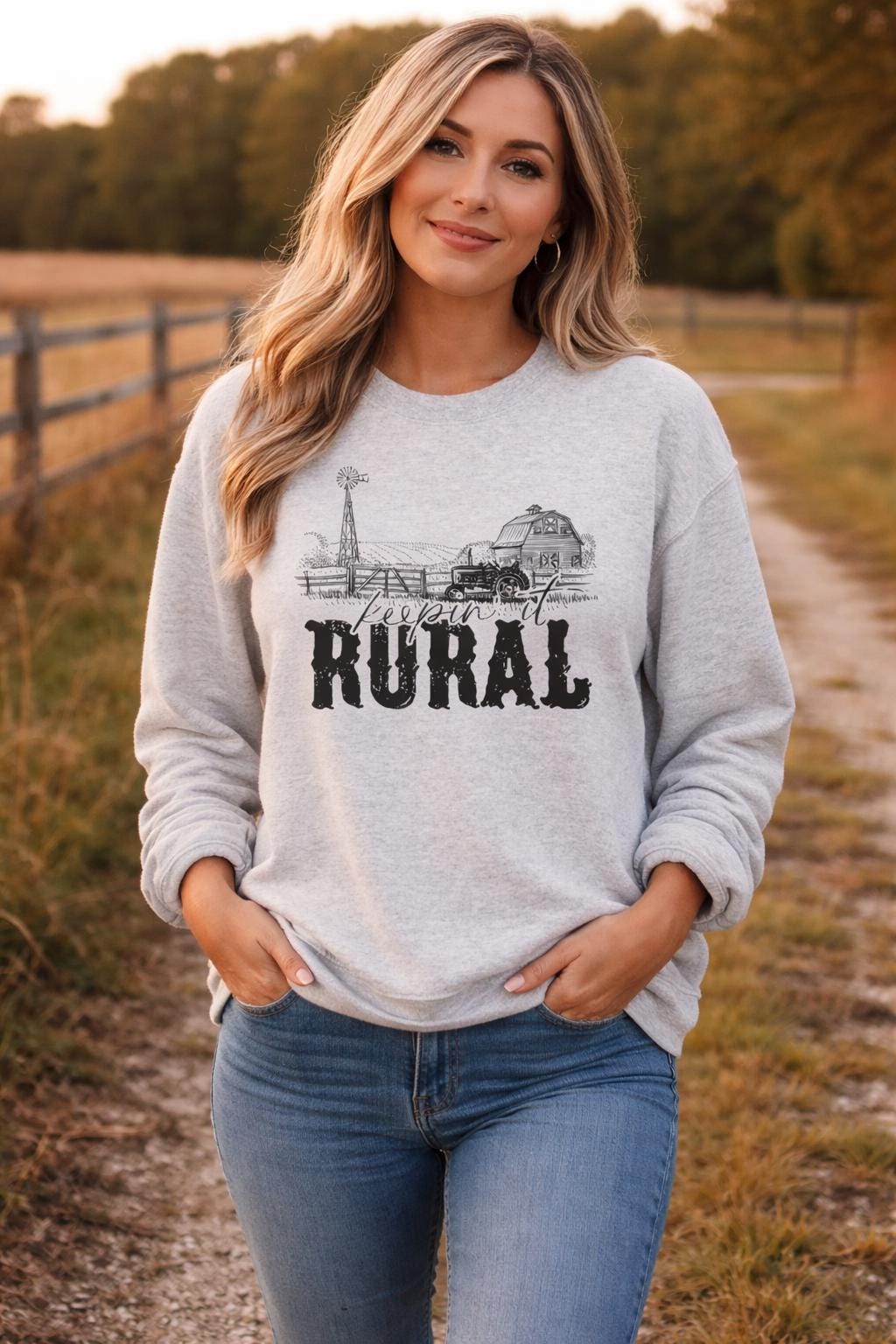 Keepin’ It Rural Sweatshirt – Farm Life Crewneck, Country Living Shirt, Rustic Farm Graphic Sweatshirt, Rural Lifestyle Gift