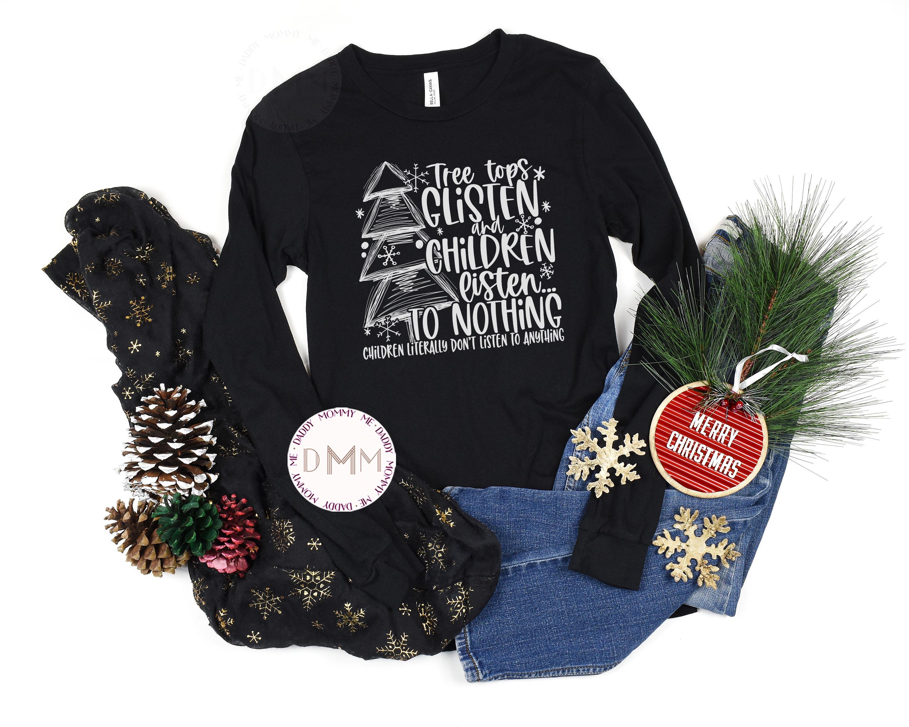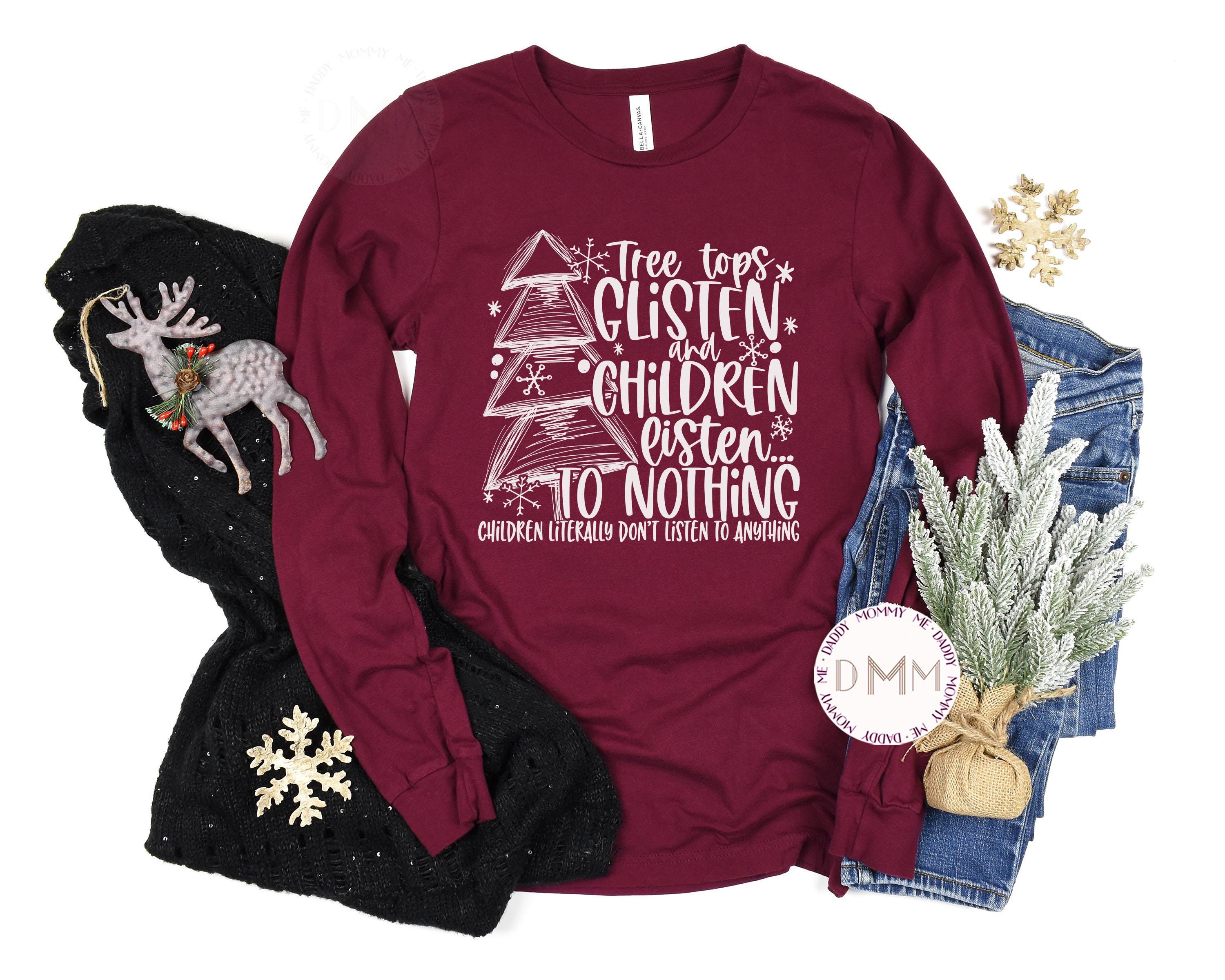 Funny Christmas Long Sleeve Shirt Tree Tops Glisten And Children Listen To Nothing Christmas Tree Shirt Merry Christmas Shirt Christmas Mom