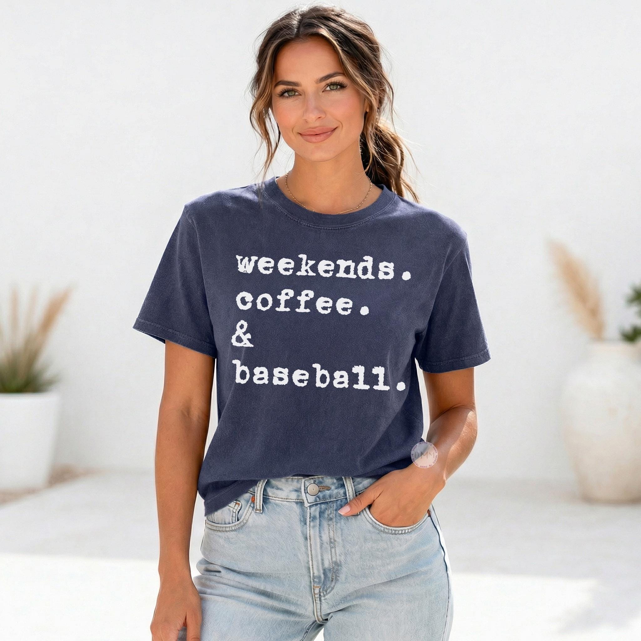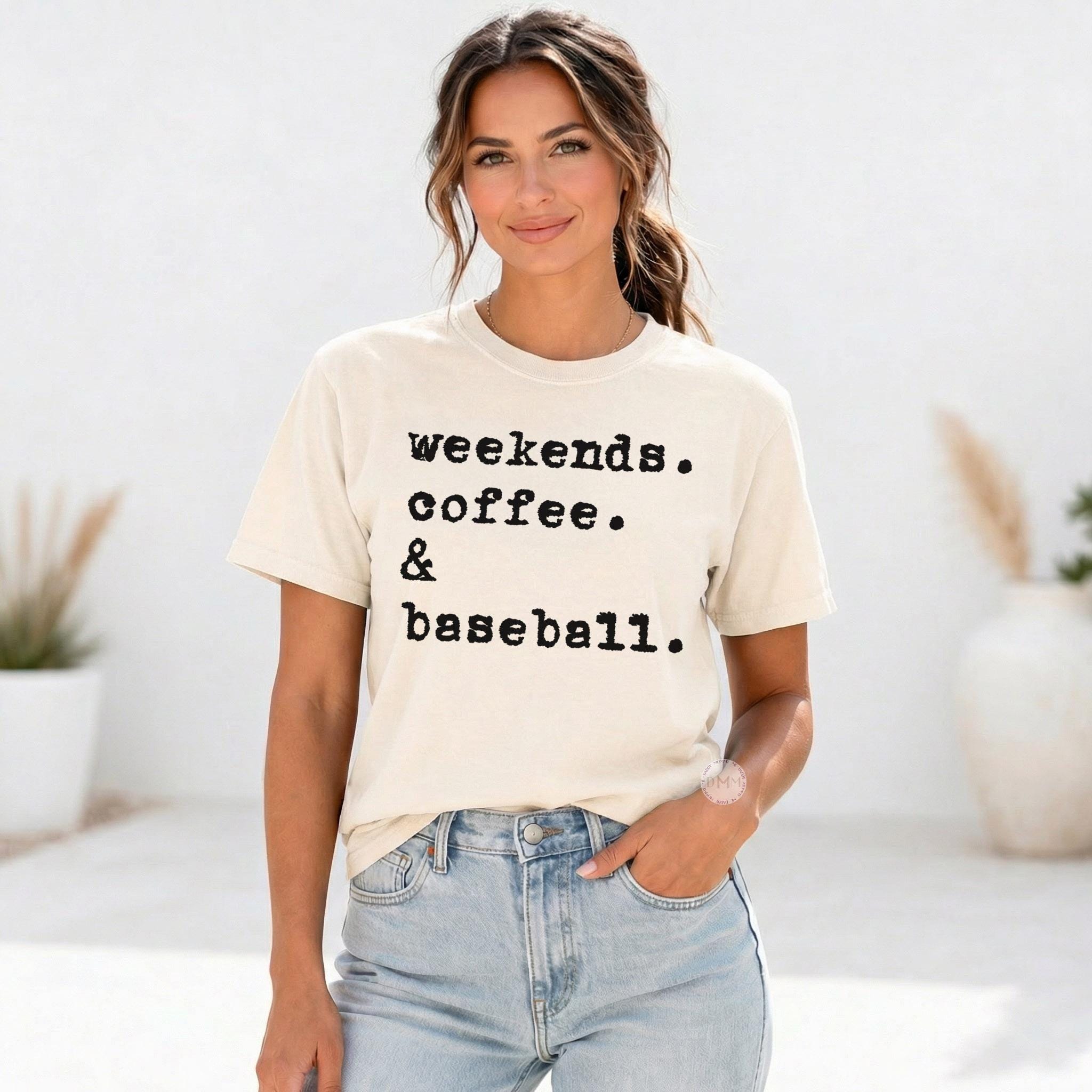 Weekends = coffee + baseball. The perfect comfy, vintage-style tee for baseball moms living that game day life. If your weekends revolve around coffee runs and baseball games, this tee was made for you.