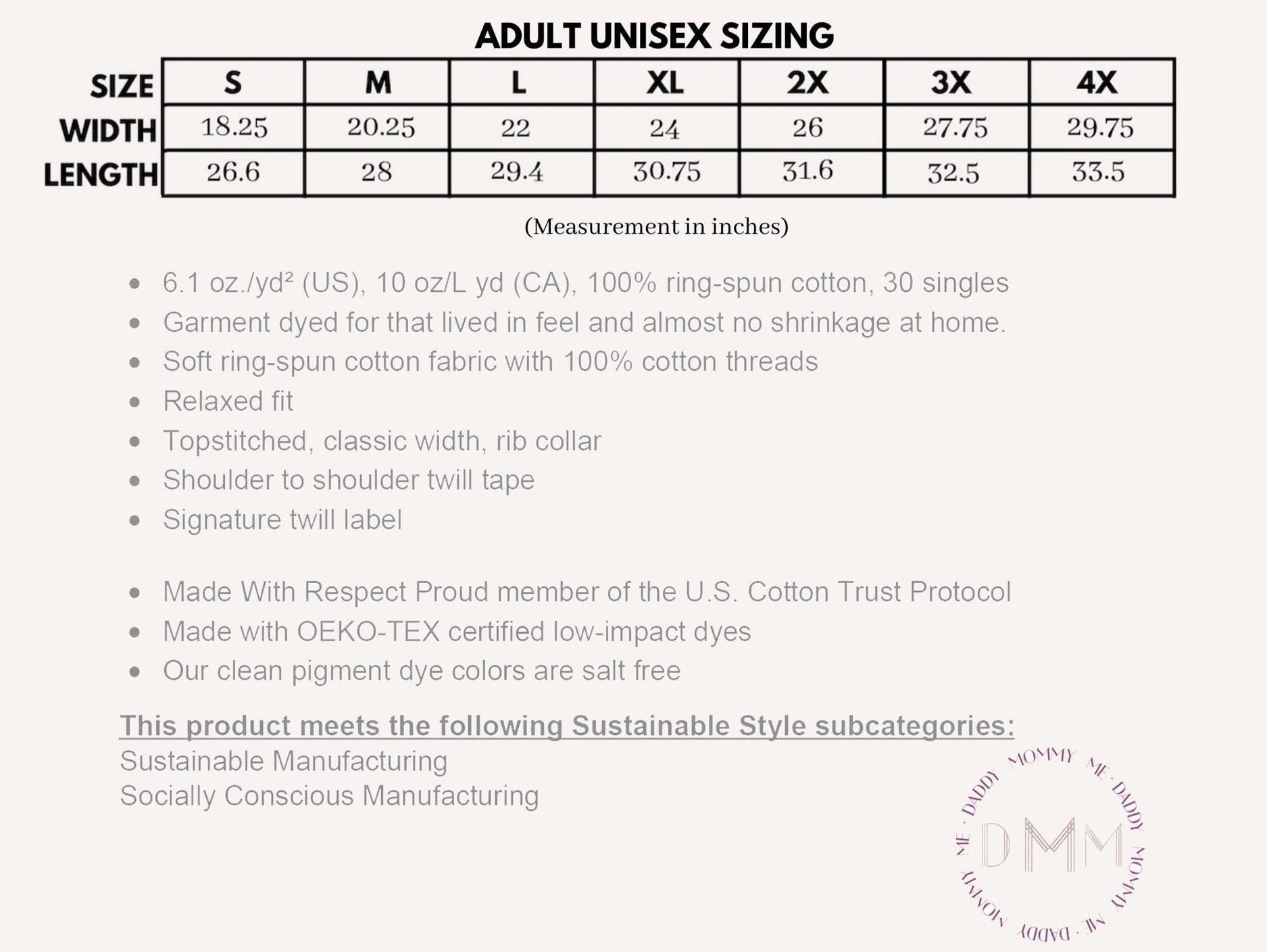 Due to the items being made to order, returns or exchanges are not accepted if a wrong color or size is purchased. Please refer to the size charts available on each listing or message with any sizing questions before purchasing. If you would like to see a mockup of a certain shirt color, please message before purchasing.