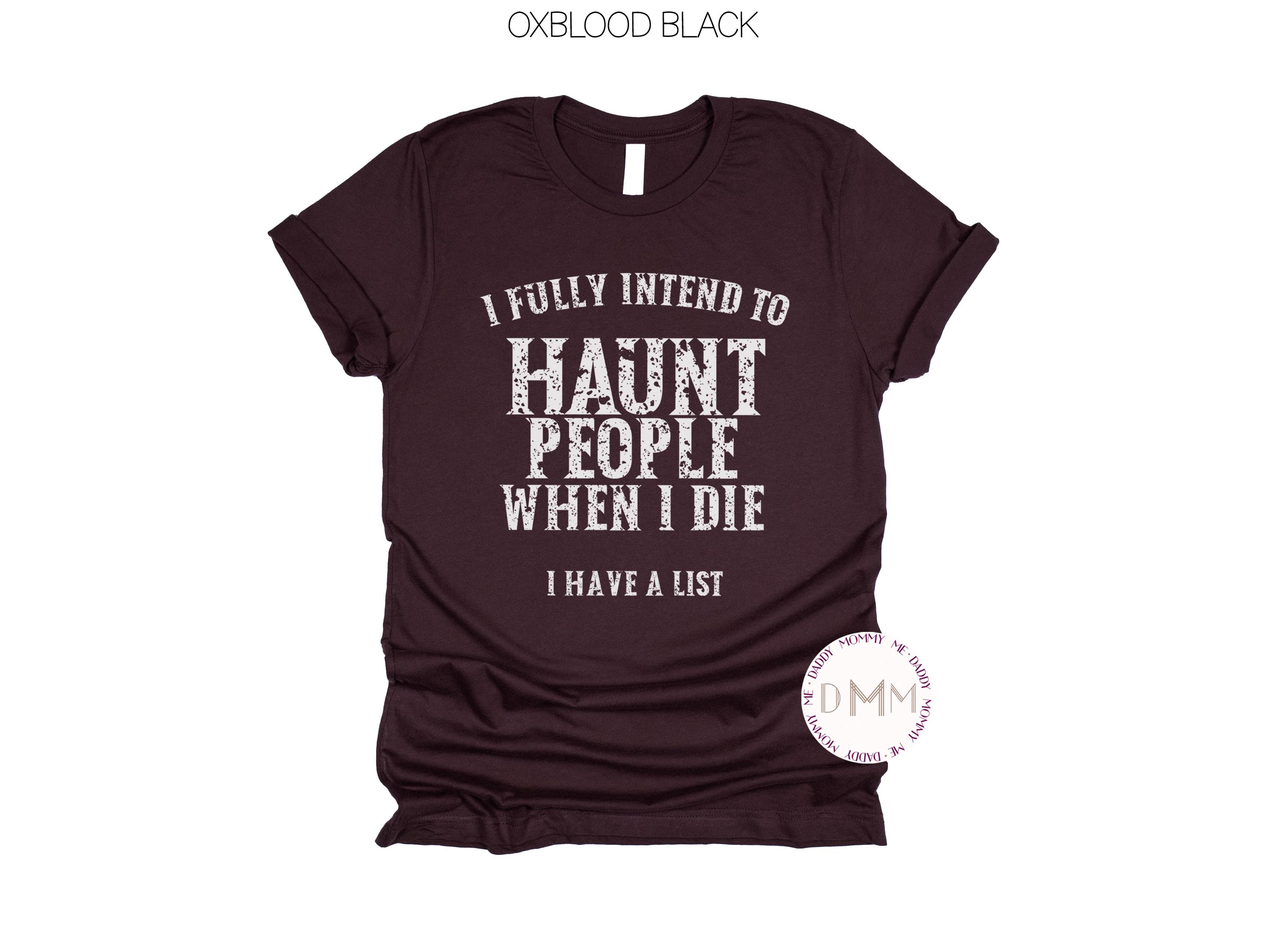 Sarcastic Shirt: I Fully Intend To Haunt People When I Die I Have A List Tee, Multiple Shirt Colors Available Bella Canvas TShirt
