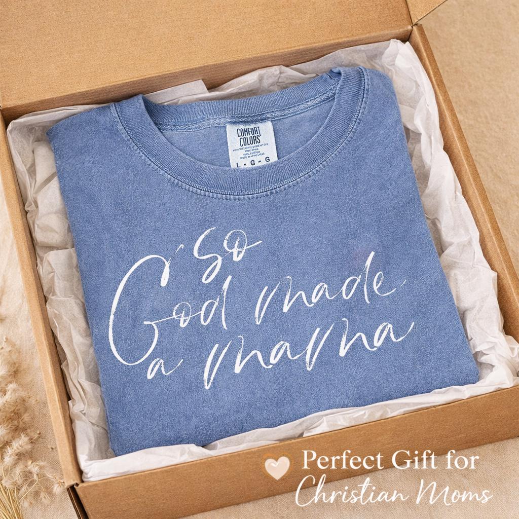 So God Made a Mama Shirt, Christian Mom Tee, Faith Based Graphic Shirt, Comfort Colors T-Shirt, Religious Gift for Mom, Mother’s Day Shirt