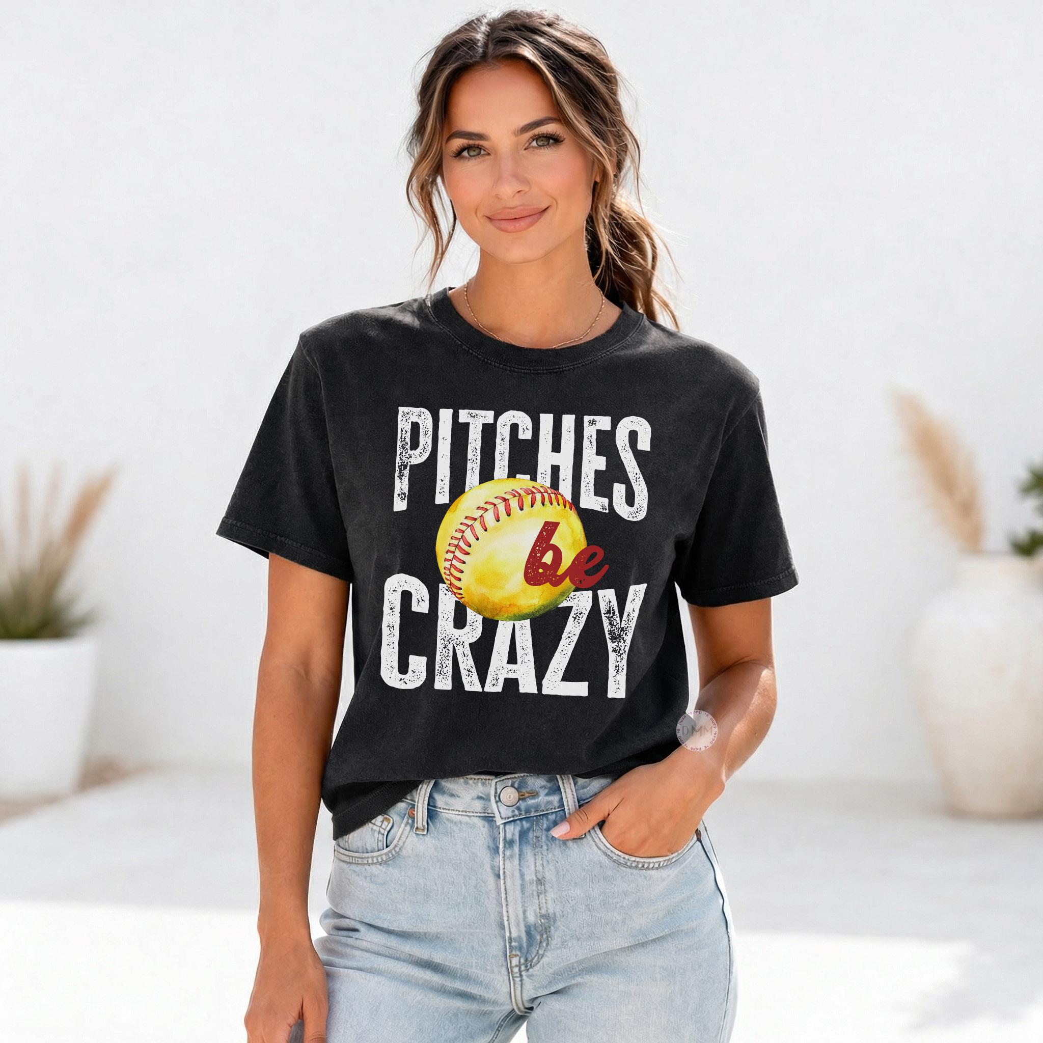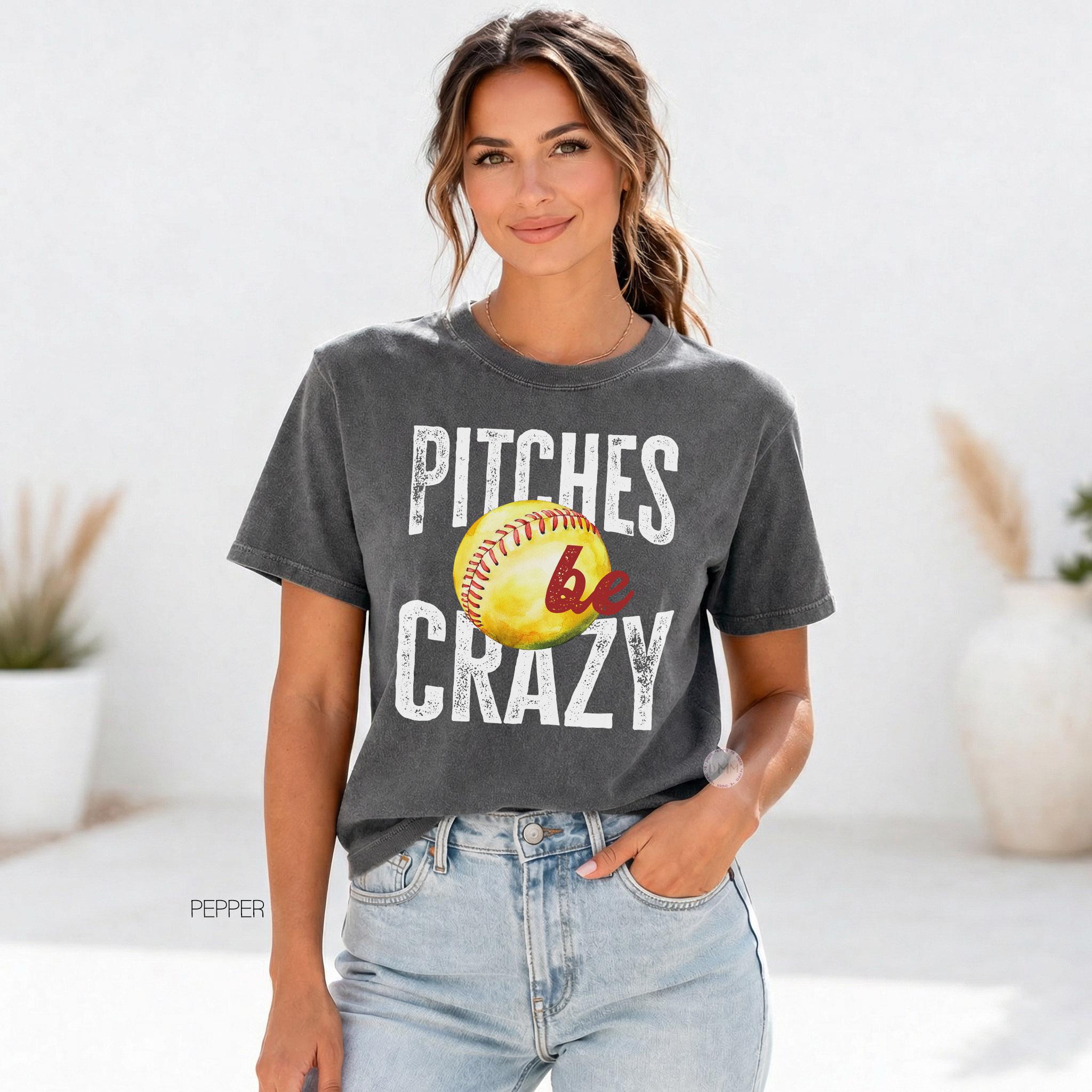 Comfort Colors Funny Softball TShirt Pitches Be Crazy Shirt Sarcastic Softball Shirt Softball Mom Shirt Sarcasm Shirt Softball Season Game