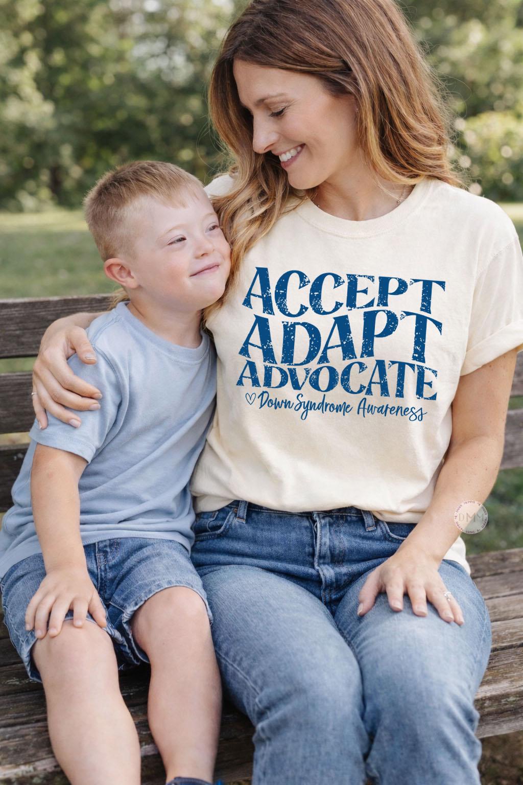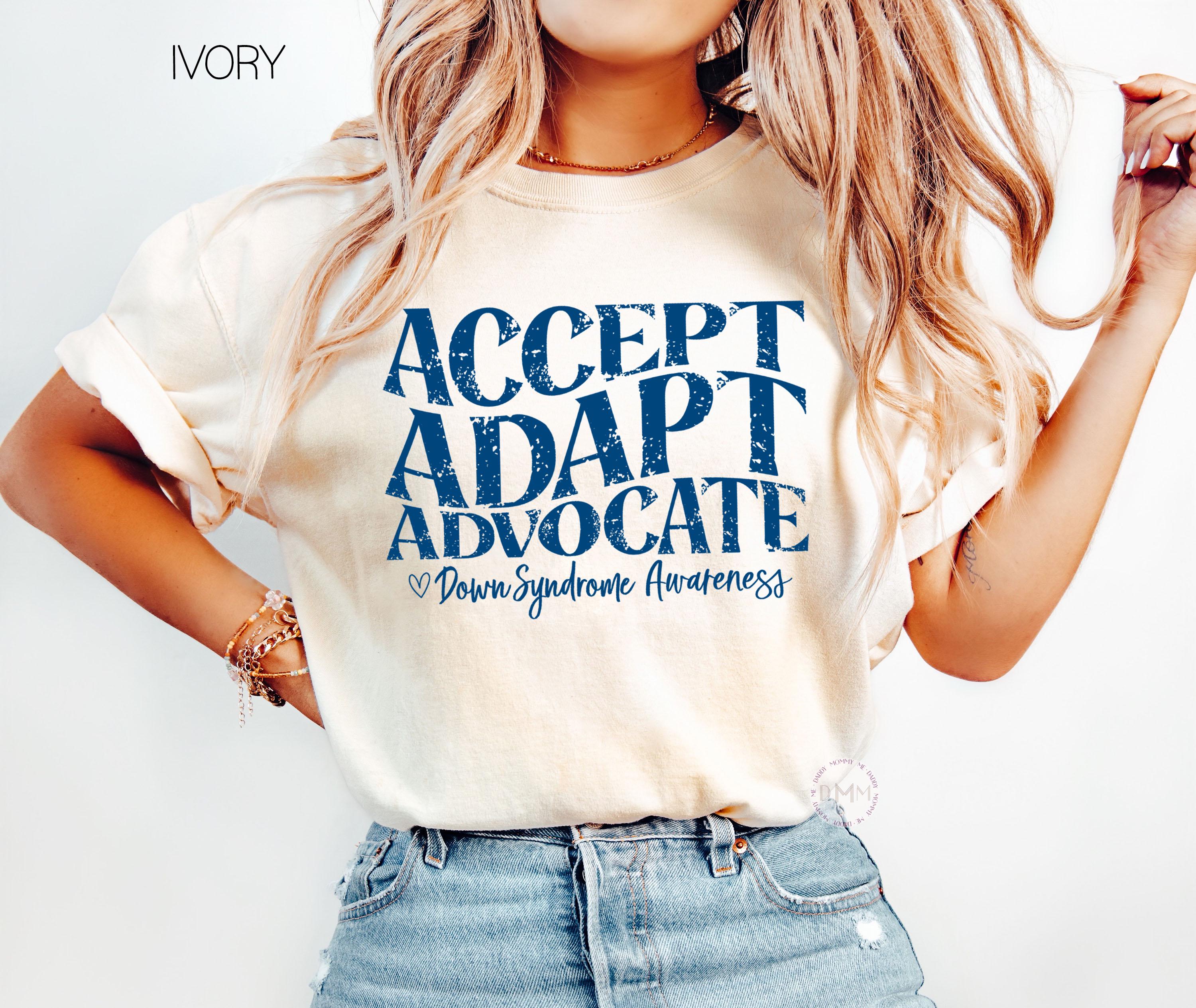 Accept Adapt Advocate Shirt, Down Syndrome Awareness Shirt, Down Syndrome Mom Shirt, Advocate Tee, Special Needs Mom Gift, Trisomy 21 Awareness Shirt