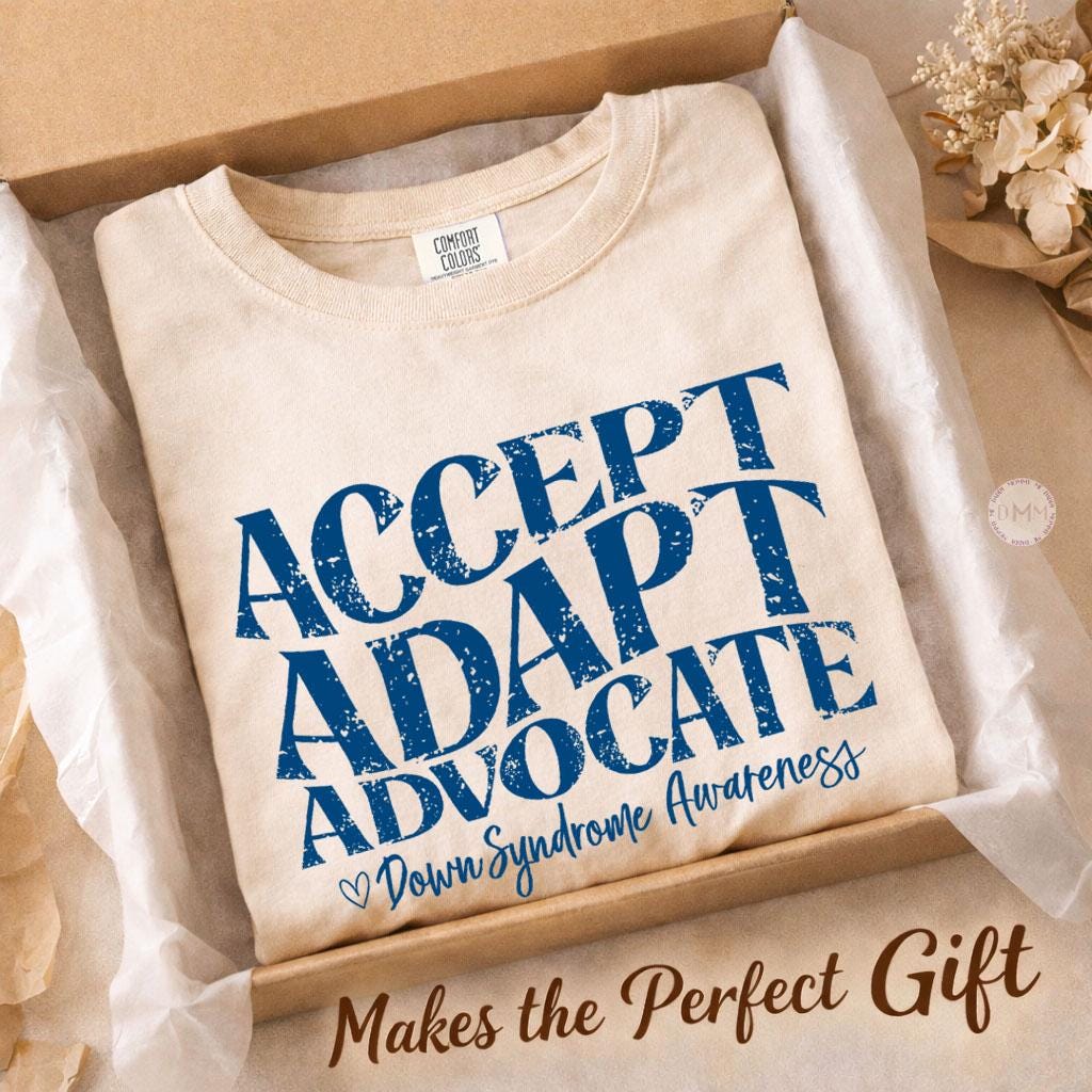 Accept • Adapt • Advocate 💙 Show your support and love with this meaningful Down Syndrome Awareness shirt designed for parents, advocates, teachers, and supporters who proudly stand with the Down Syndrome community.