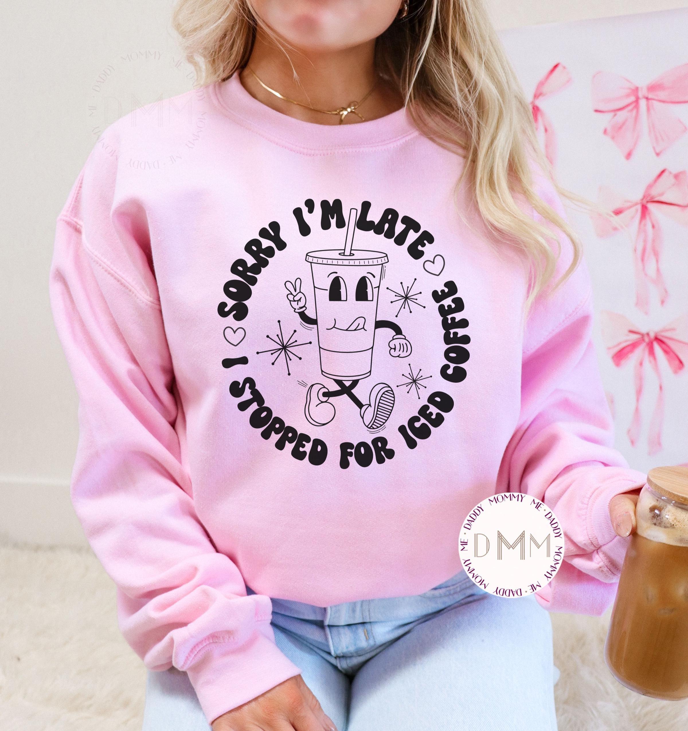 Funny Coffee Sweatshirt - Sorry I'm Late I Stopped For Iced Coffee Sweater, Iced Coffee Drinker, Coffee Lover Gift