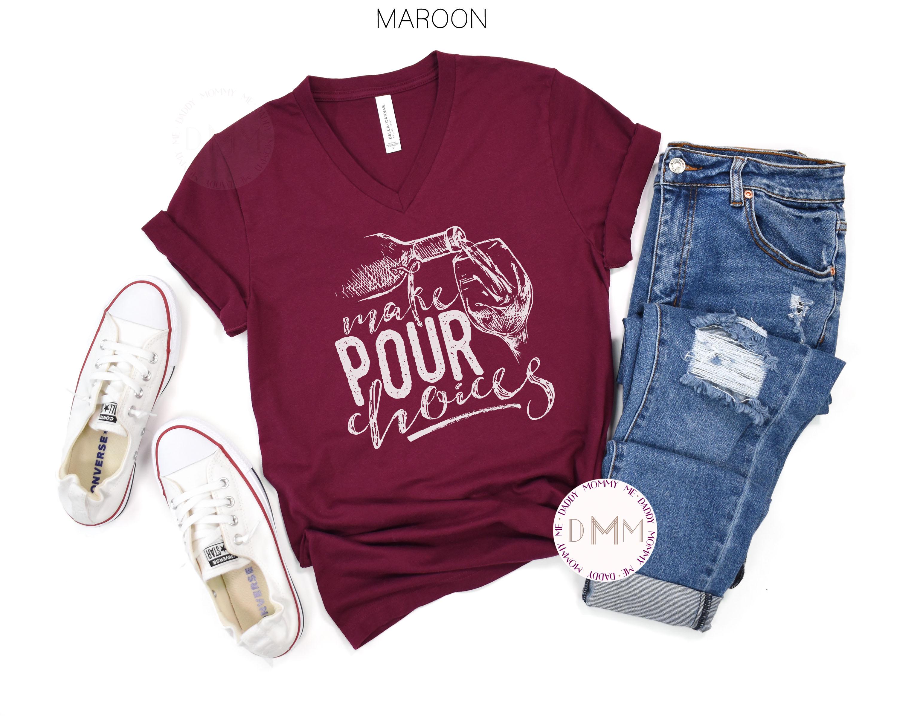 Funny Wine V Neck Shirt - Make Pour Choices VNeck Shirt, Wine Gift, Wine Tasting Shirt