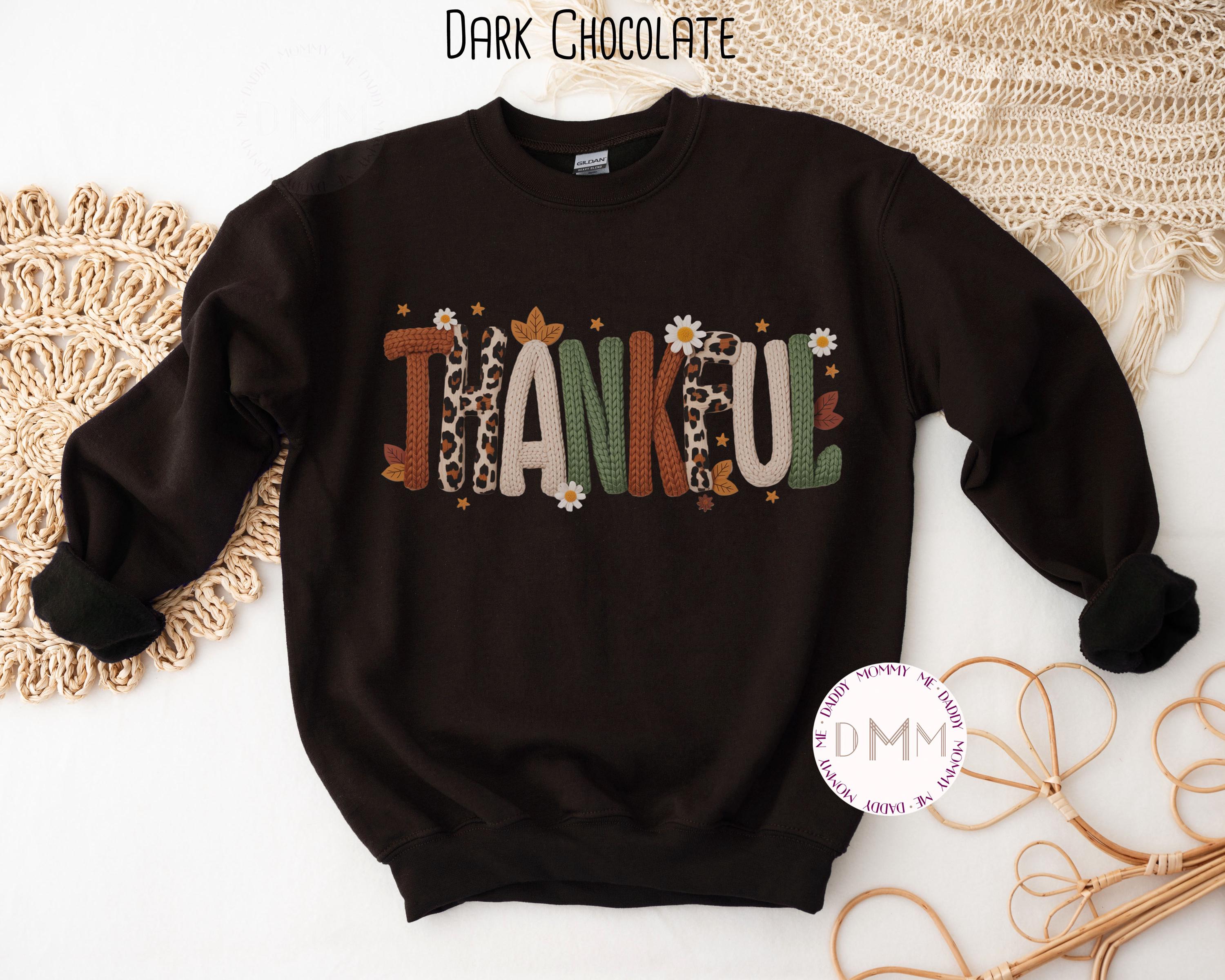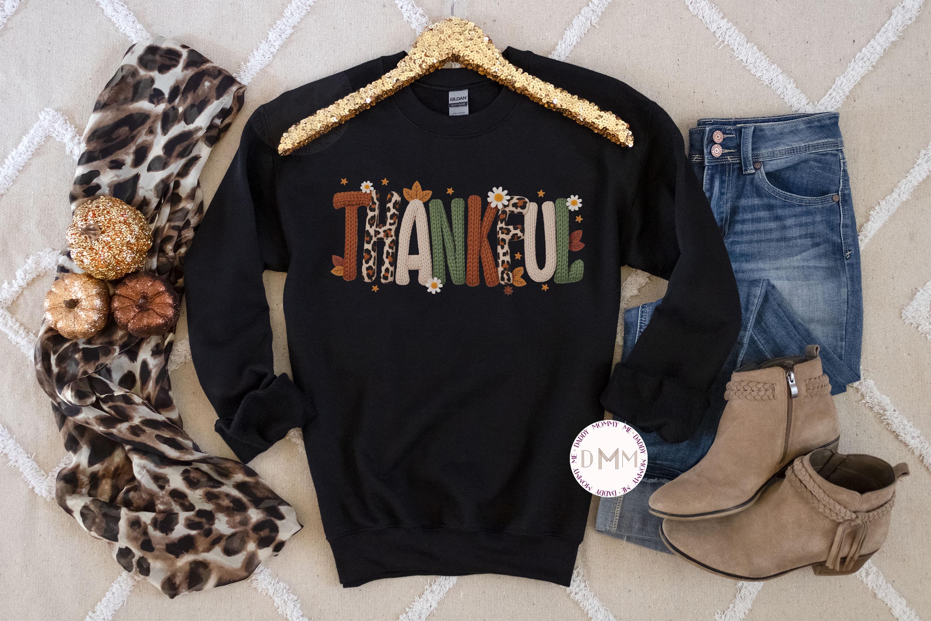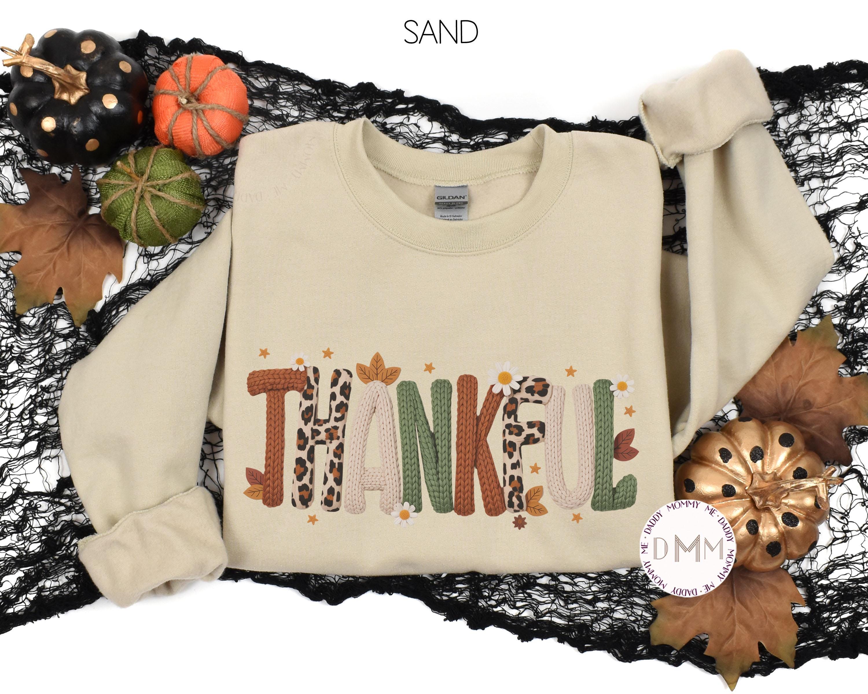 Thankful Faux Latch Hook Yarn Sweatshirt, Faux Embroidery Thanksgiving Sweater, Trendy Holiday Faux Crochet Sweatshirt Thankful Fall Sweater