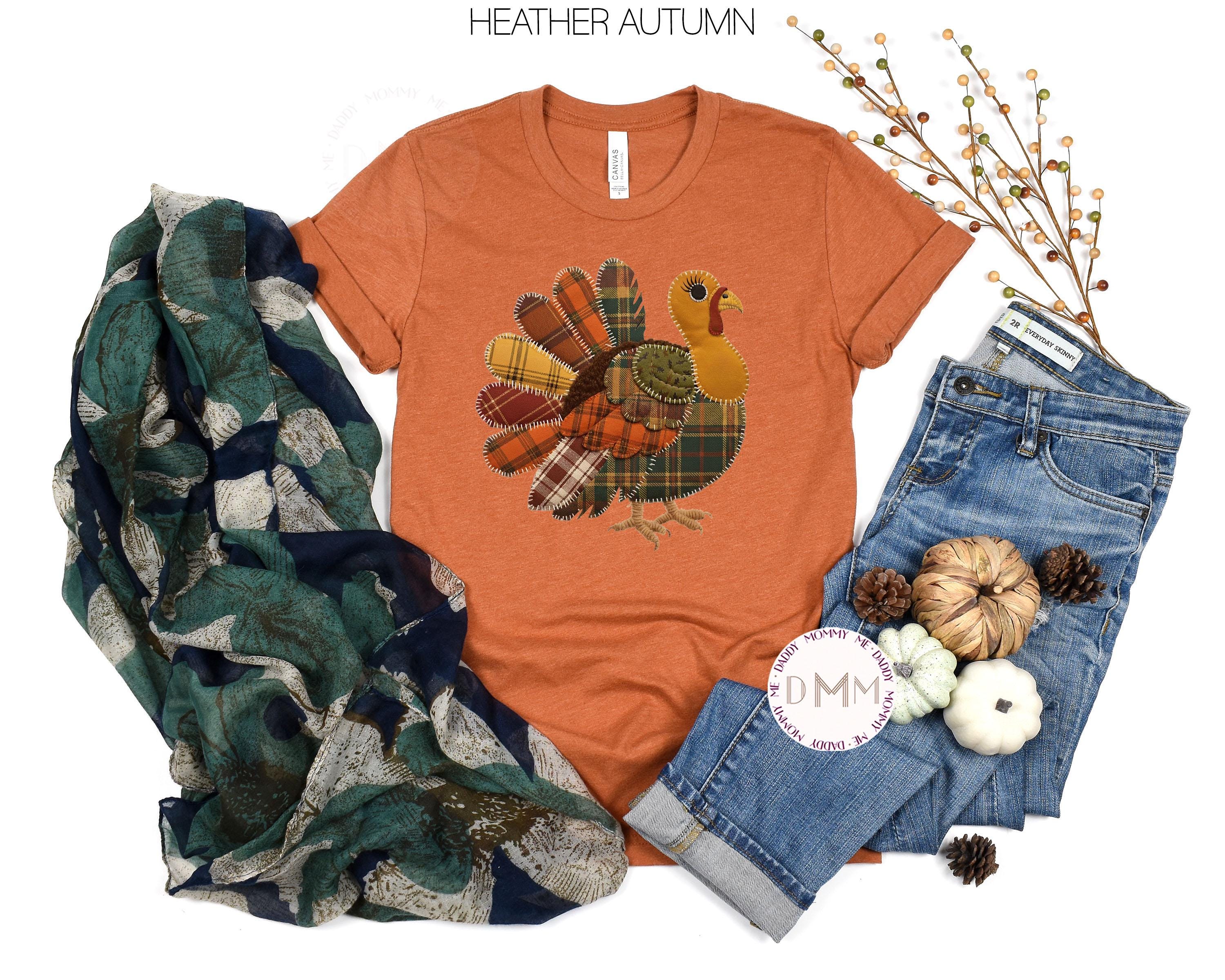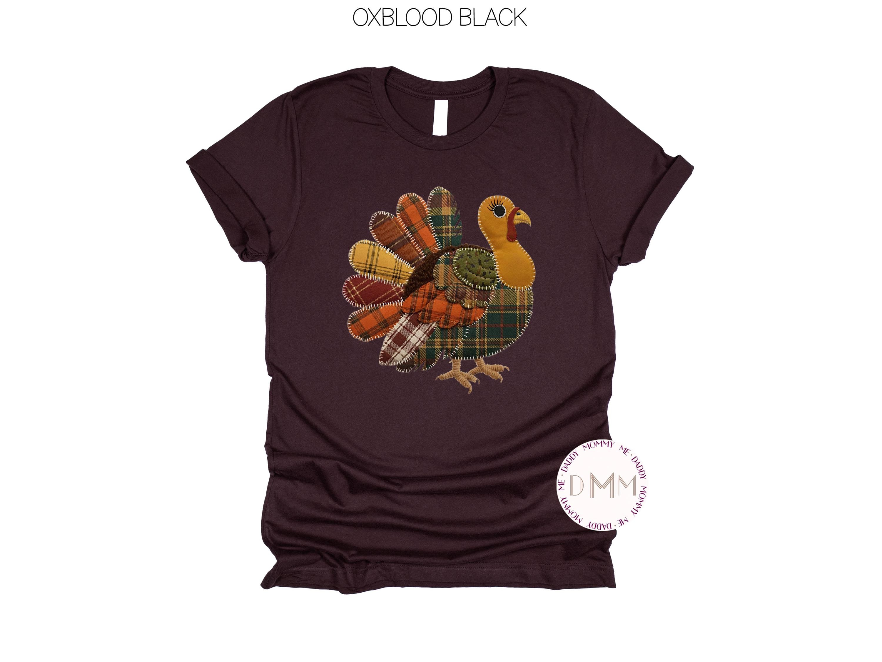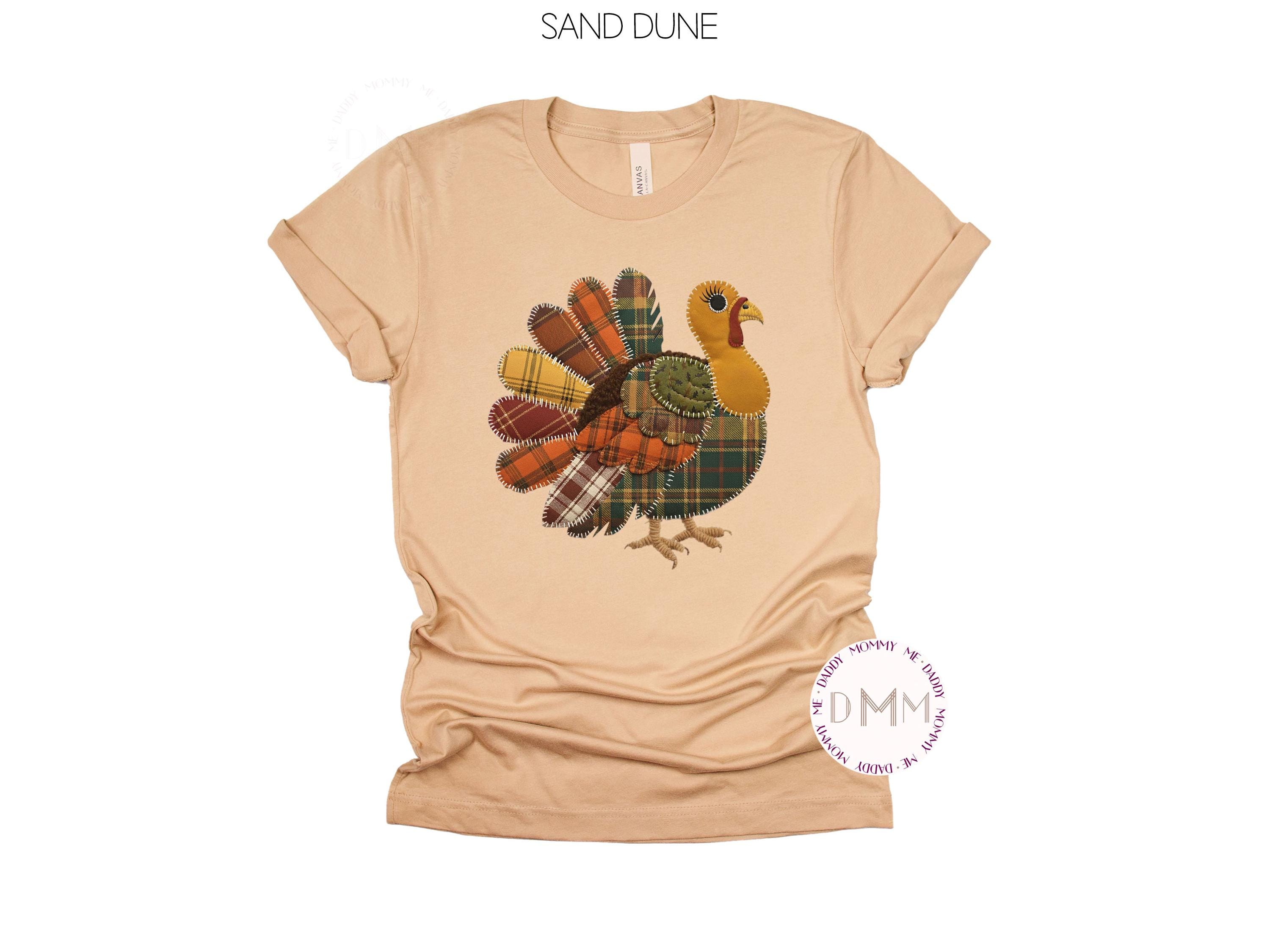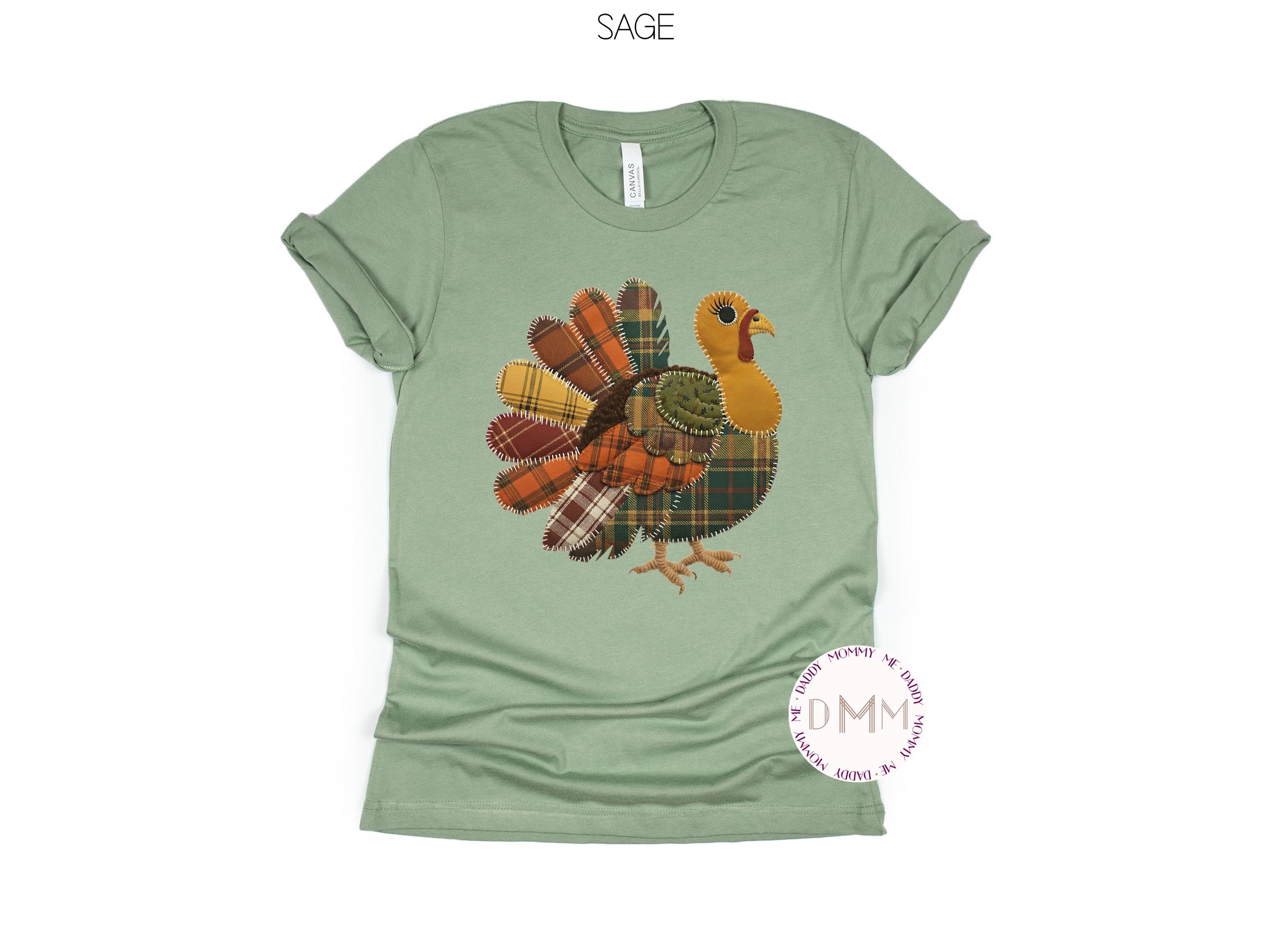 Patchwork Turkey Shirt - Faux Embroidery Turkey Thanksgiving Graphic Tee, Multiple Shirt Color Options, Turkey Day Tee Trendy Thanksgiving