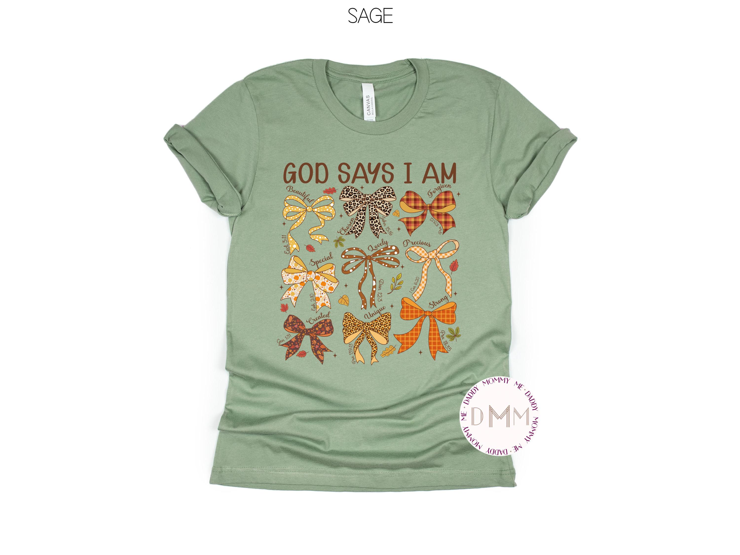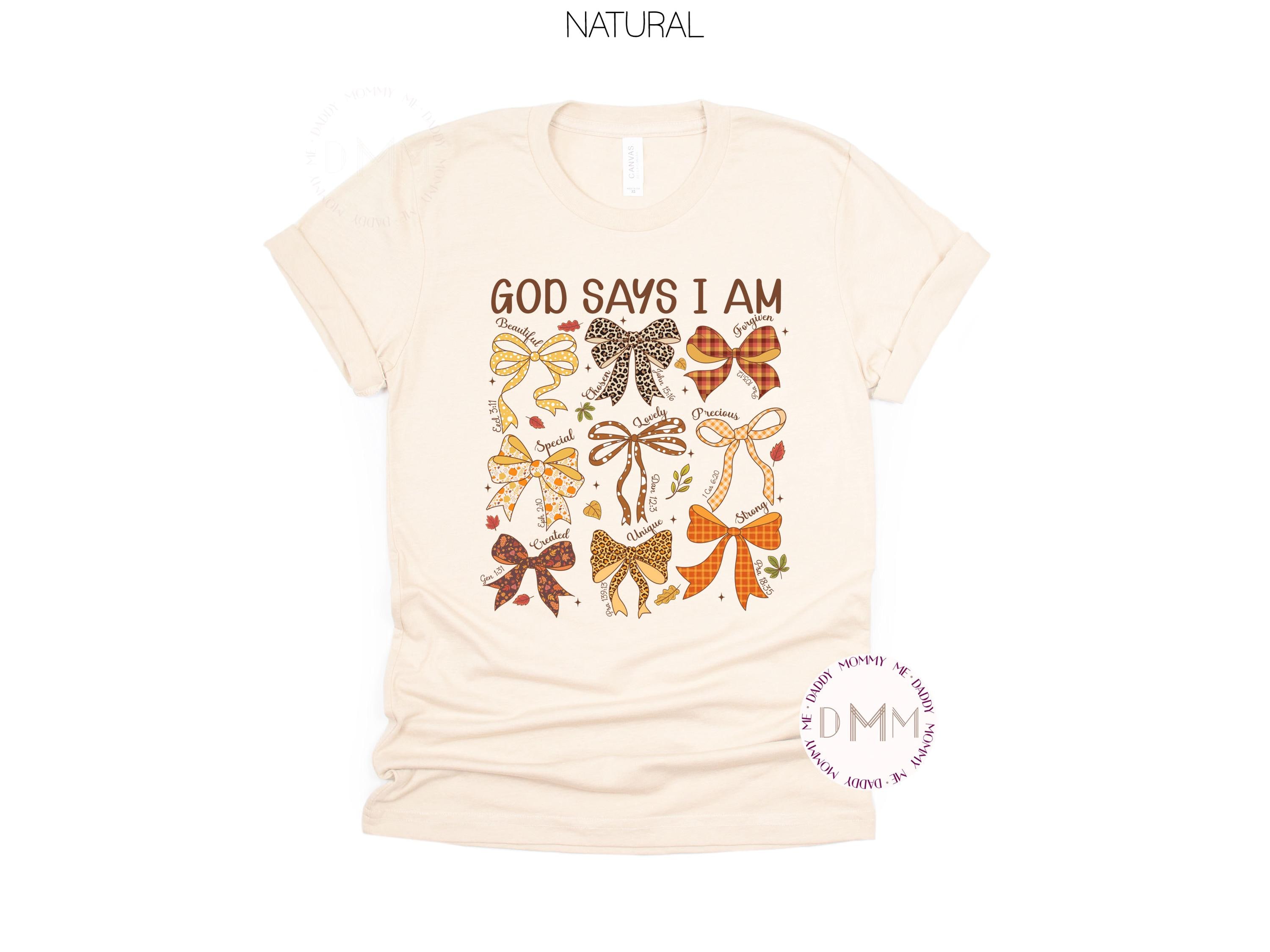 God Says I Am Shirt - Fall Christian TShirt, Religious Apparel, Fall Coquette Tee