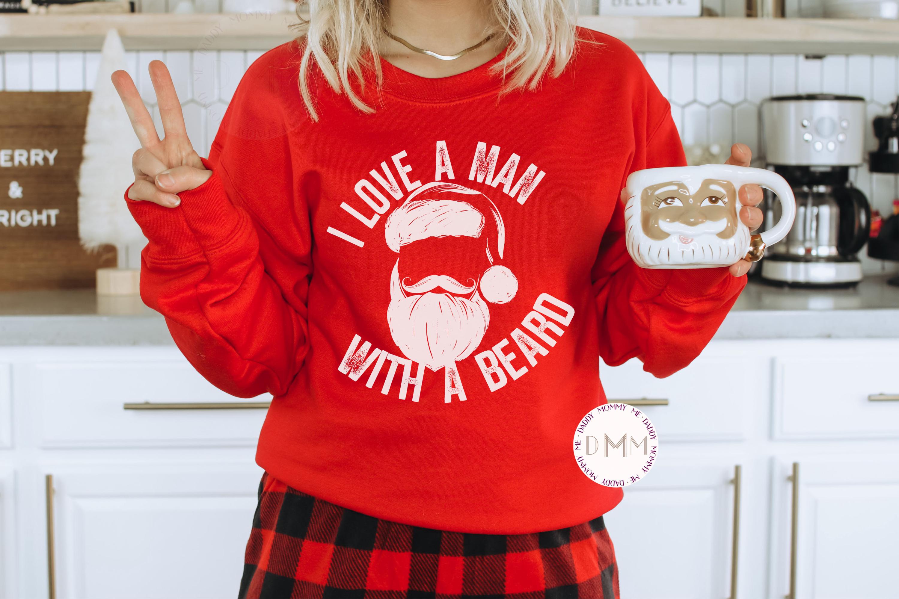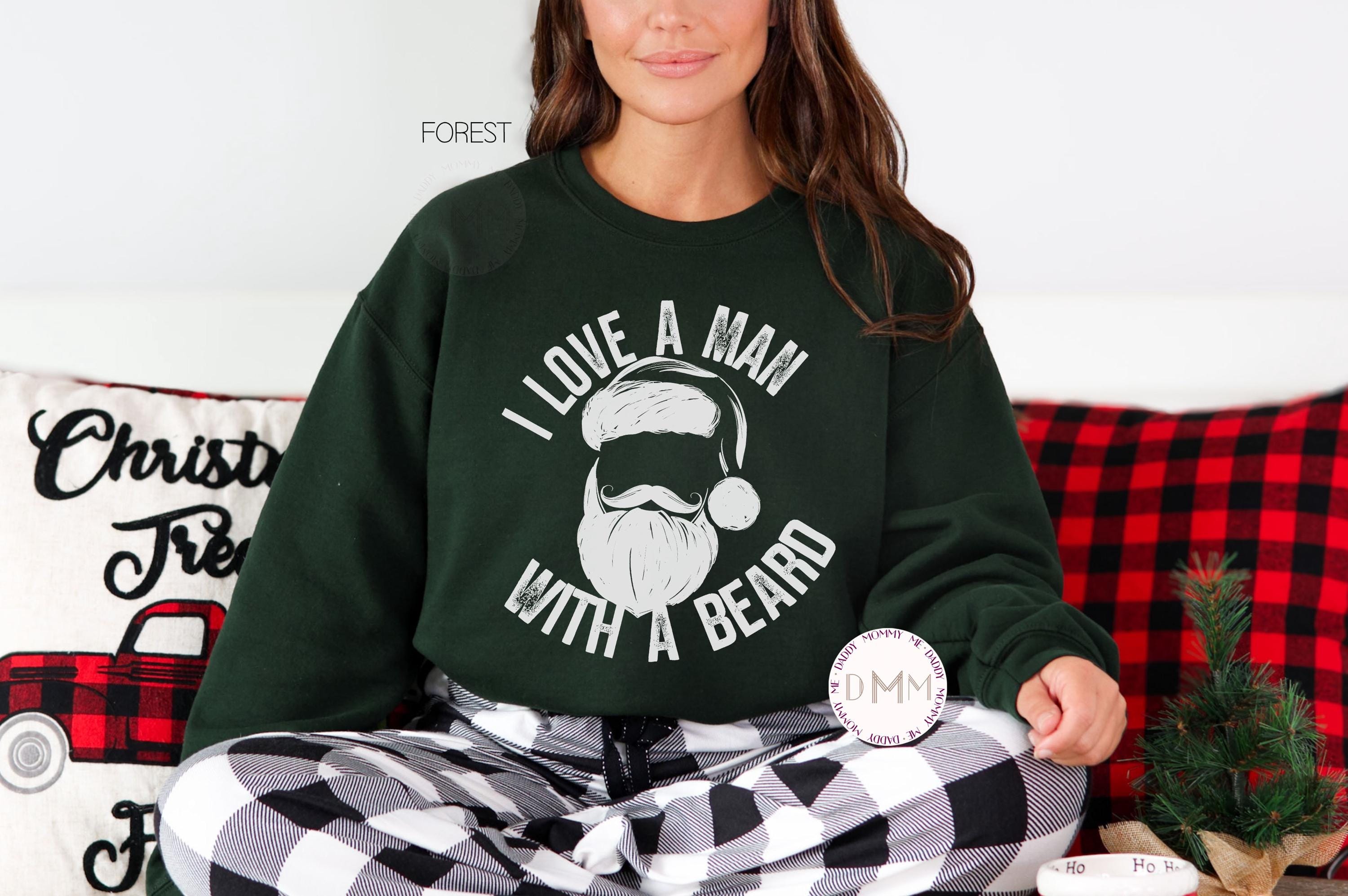 Santa Sweatshirt - I Love A Man With A Beard Sweater, Christmas Sweatshirt, Funny Santa Sweater, Multiple Sweatshirt Colors Available