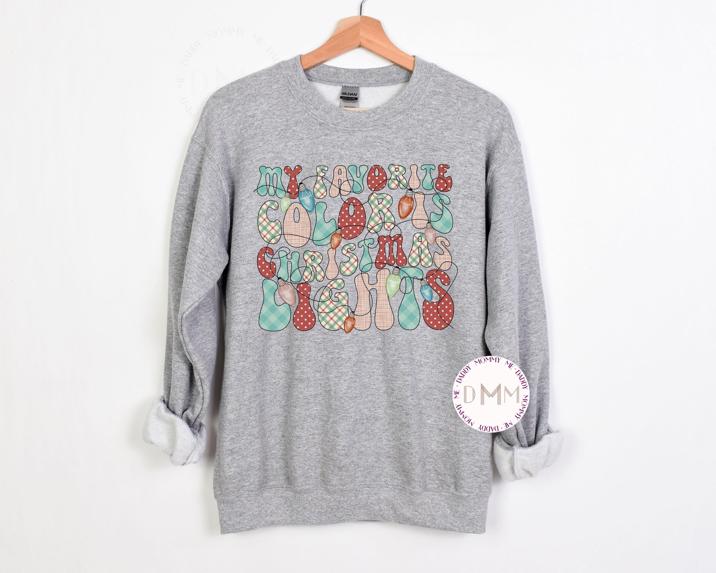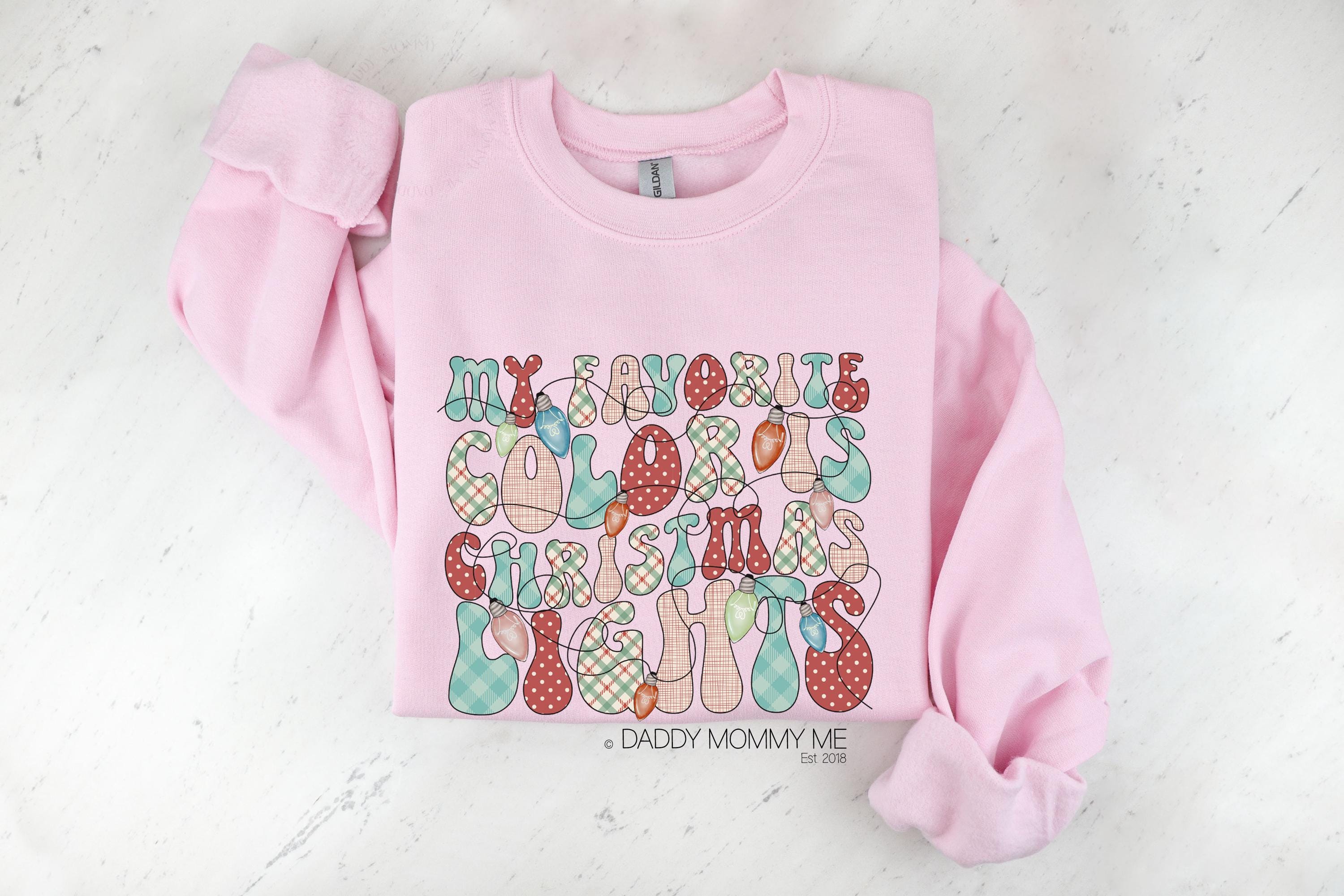 Trendy Christmas Sweatshirt - My Favorite Color Is Christmas Lights Sweatshirt, Multiple Sweatshirt Colors Available