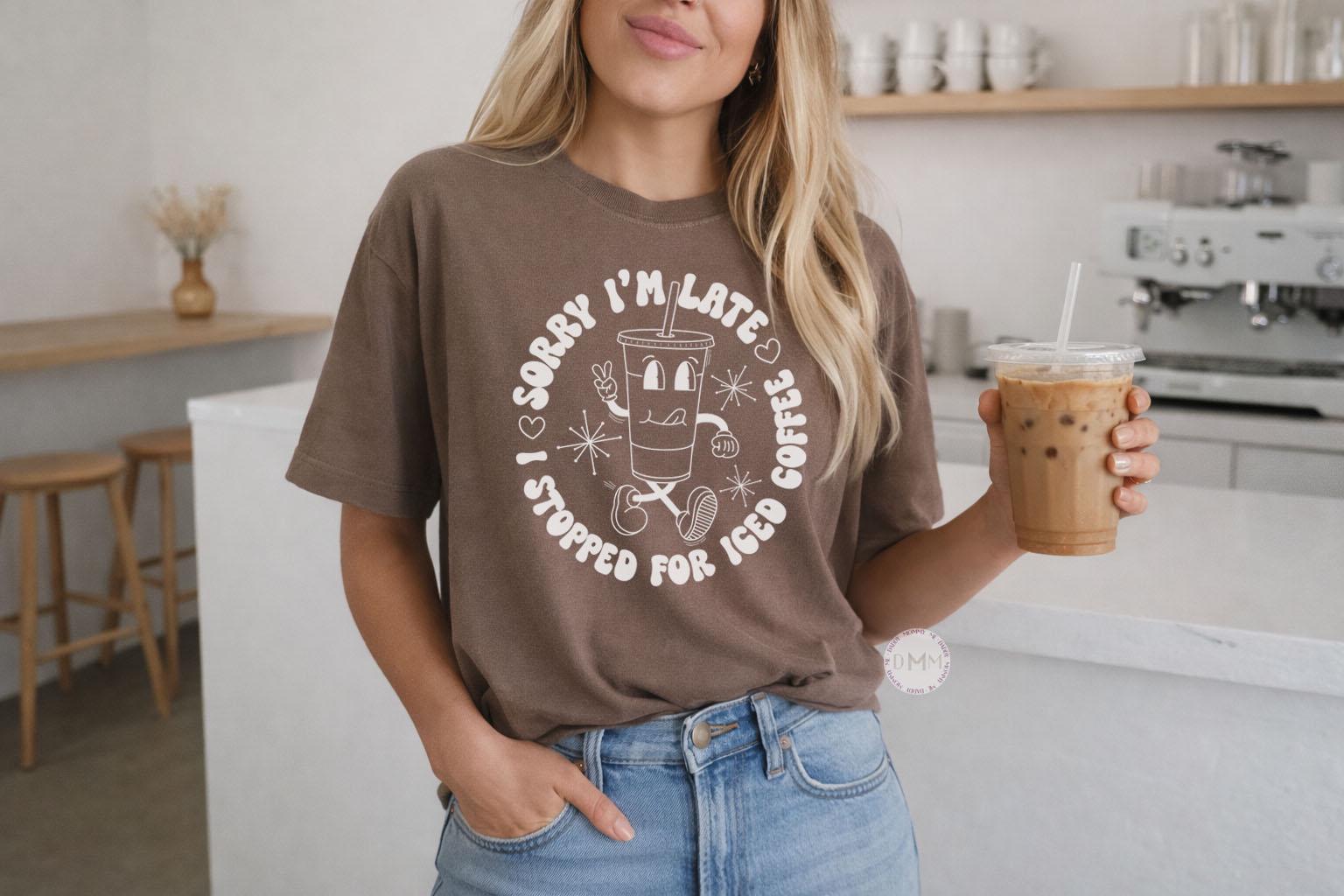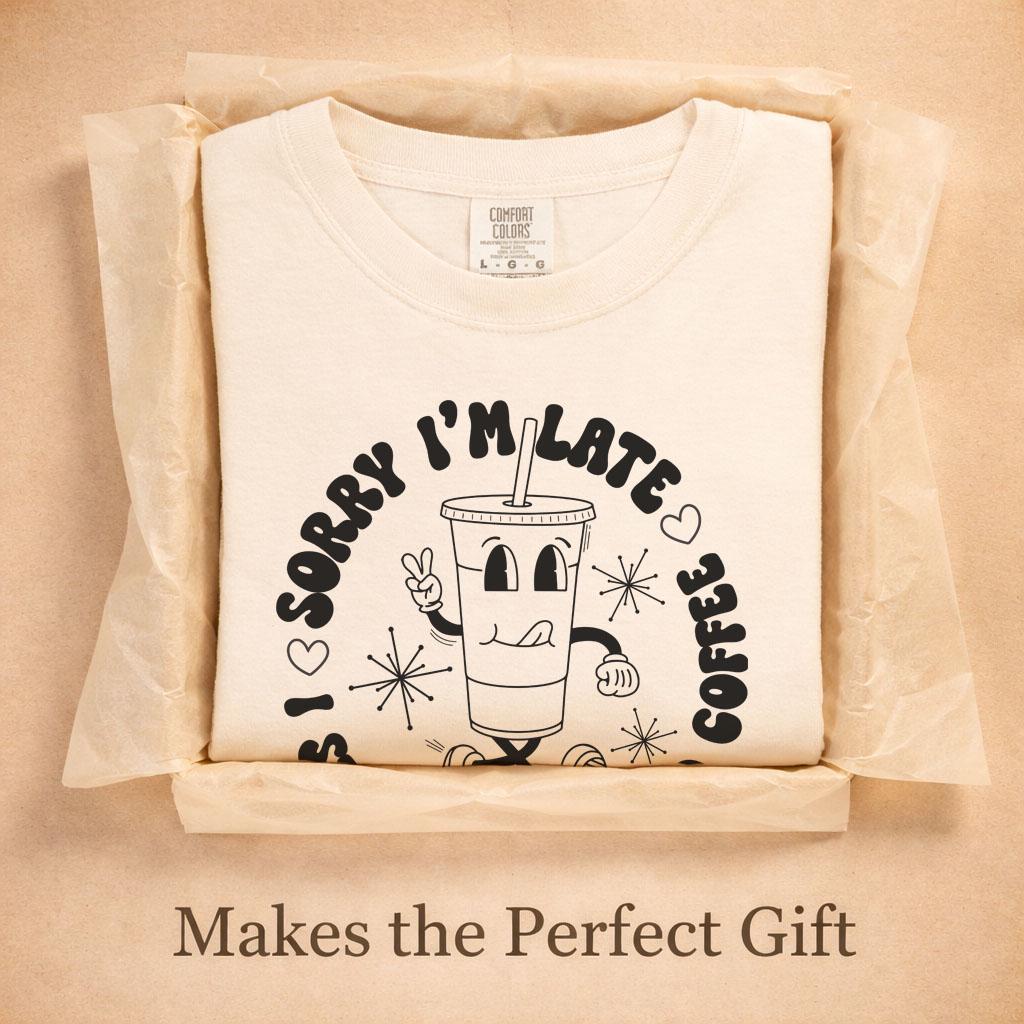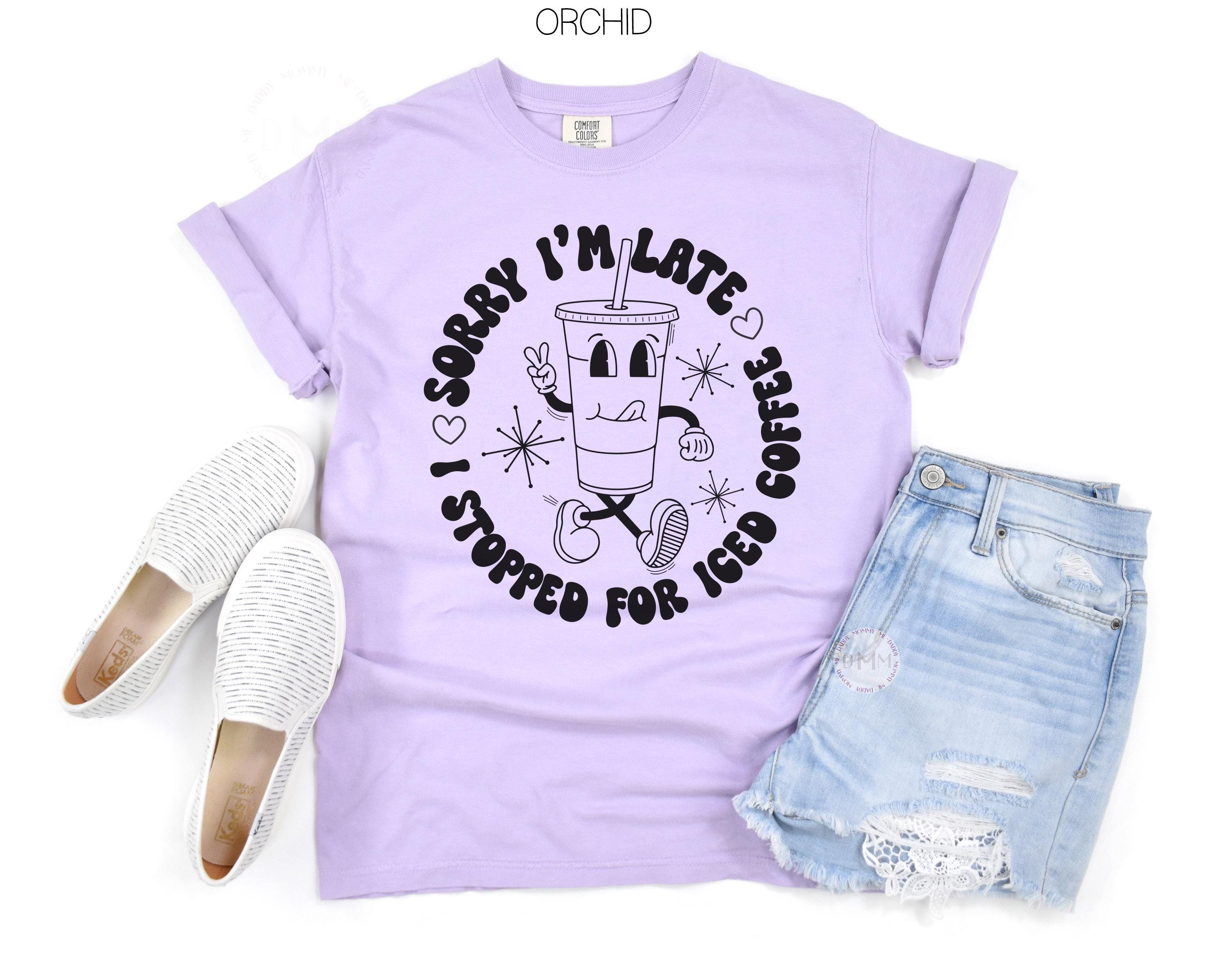 Iced Coffee Shirt Comfort Colors, Sorry I’m Late Coffee Lover Tee, Cute Barista Gift, Trendy Graphic T-Shirt for Women