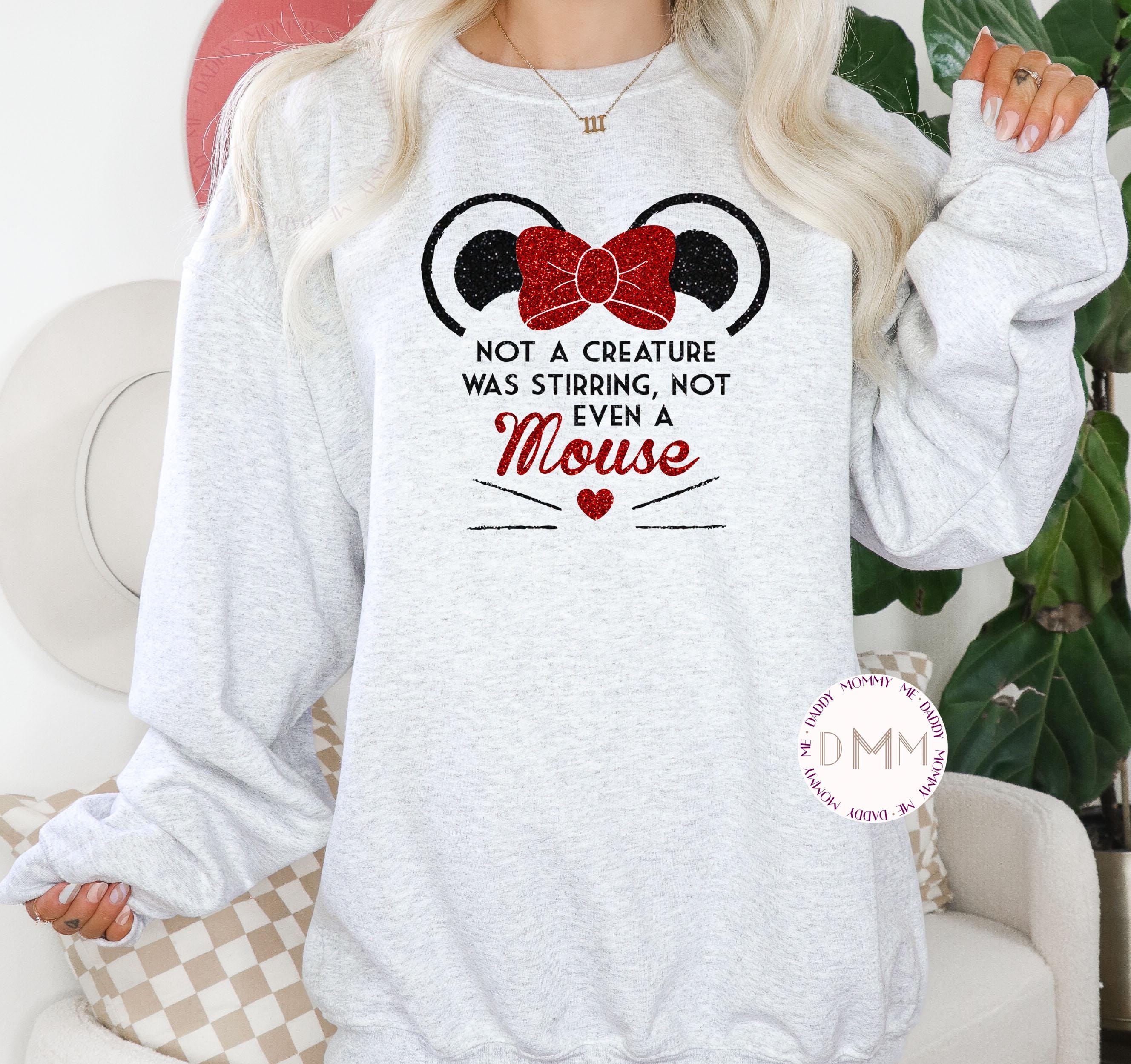 Not A Creature Was Stirring Not Even A Mouse Sweatshirt. Glitter graphic design - does not shed