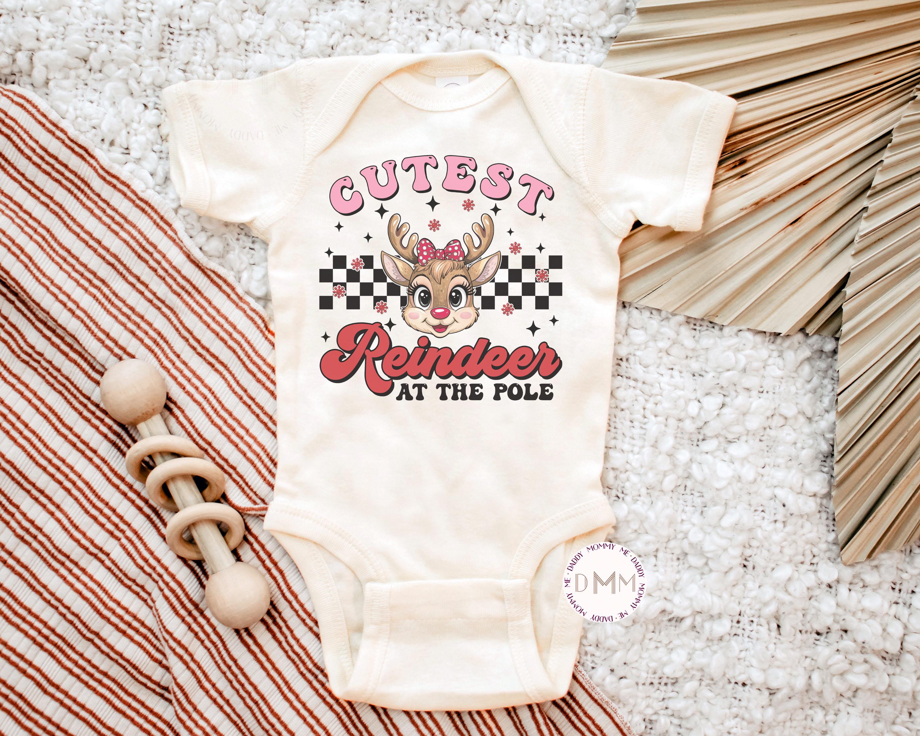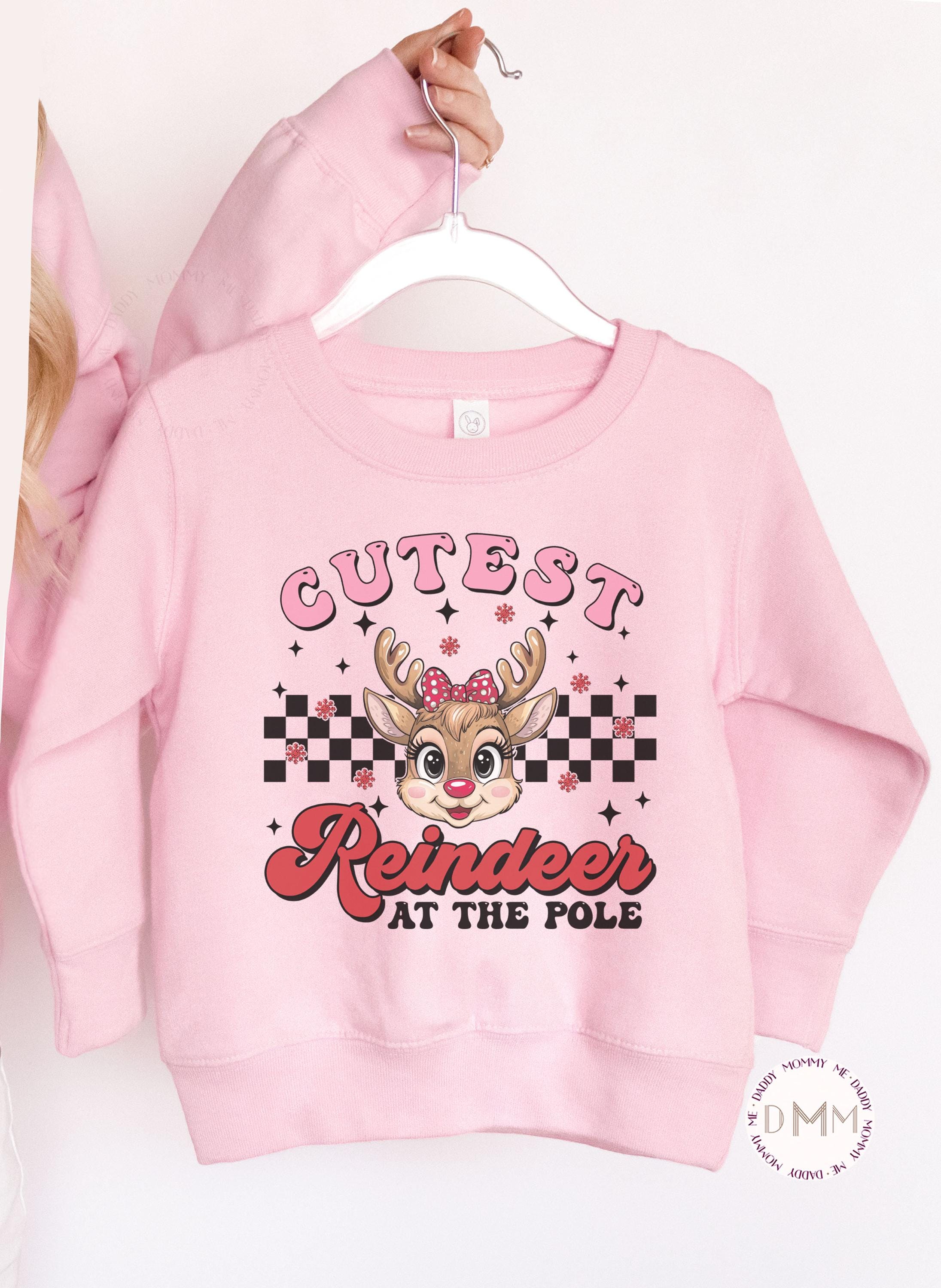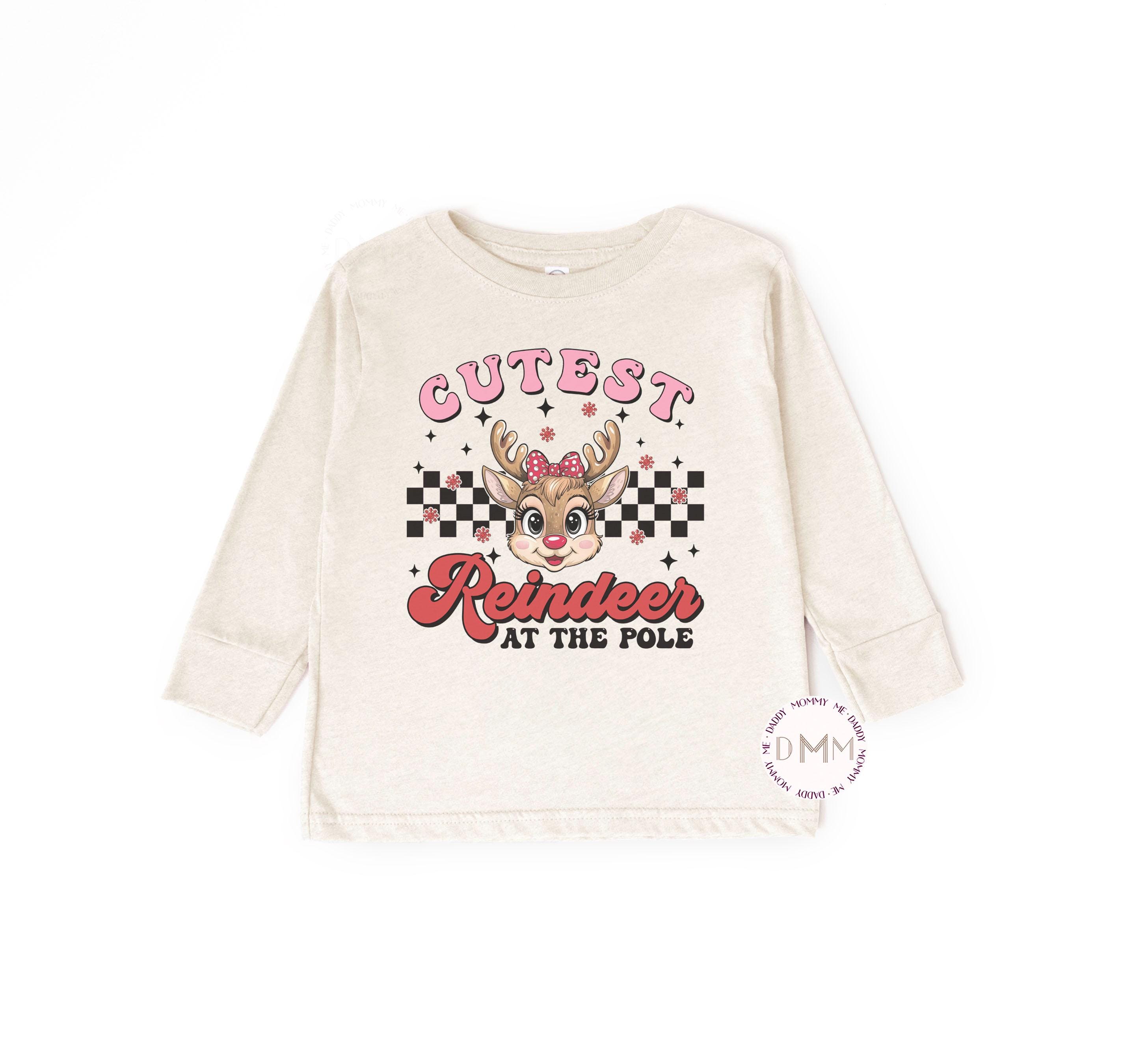 Cutest Reindeer At The Pole Christmas Shirt, Christmas Toddler Shirt, Christmas Onesie® Christmas Long Sleeve Shirt Girl Reindeer Sweatshirt
