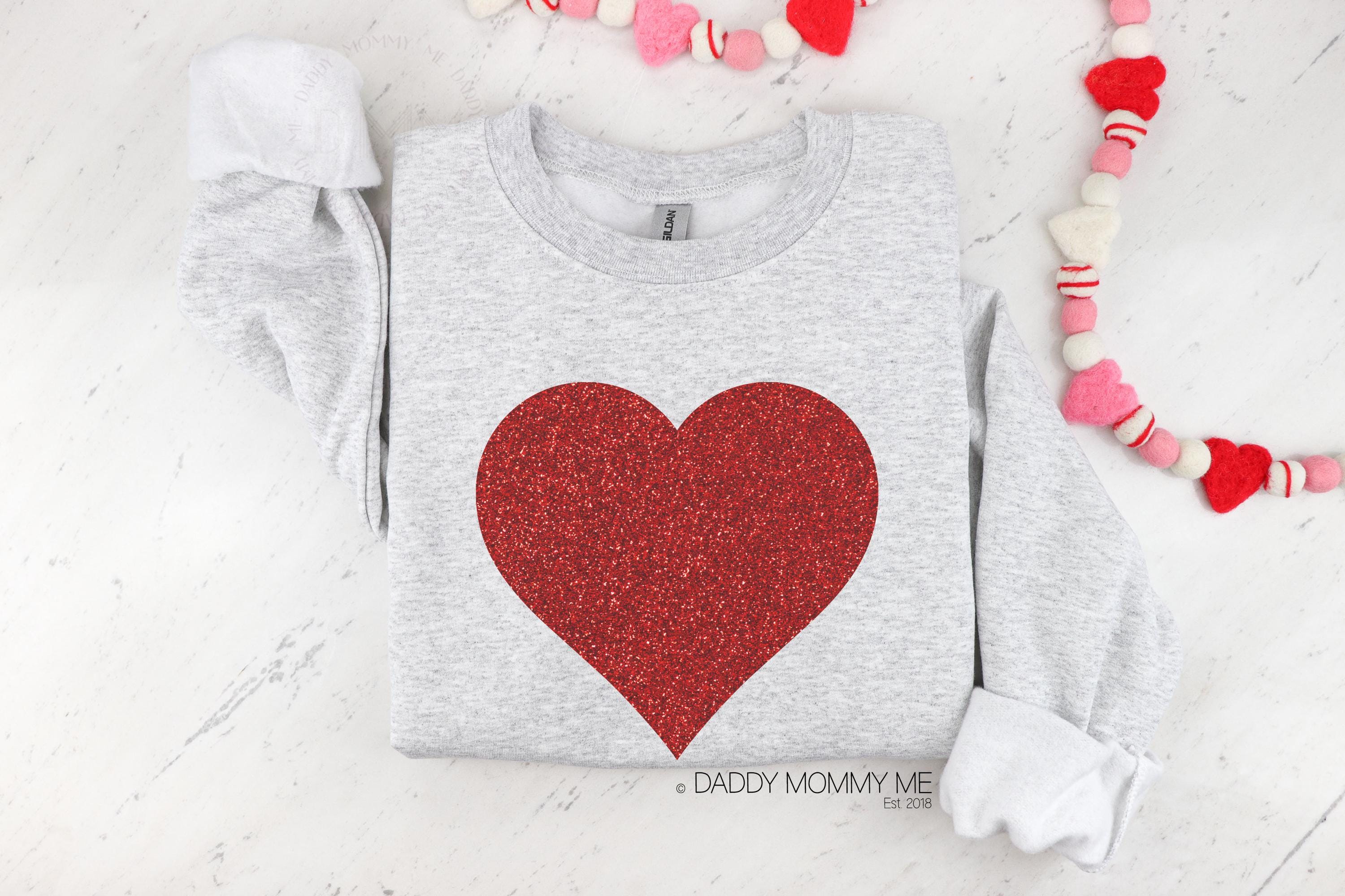 Red Glitter Heart Sweatshirt. Glitter does not shed.