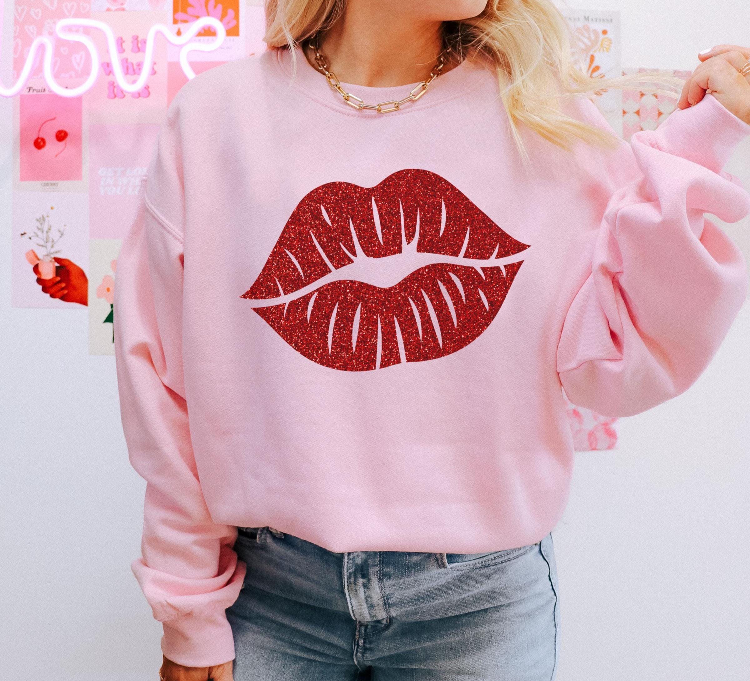 Red Glitter Lips Sweatshirt, Valentines Day Sweatshirt, Love Sweatshirt, Valentine Lips Sweater, XOXO Sweatshirt For Women