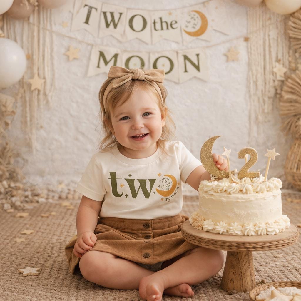 Celebrate your little one’s second trip around the sun with this adorable “Two the Moon” birthday shirt 🌙✨