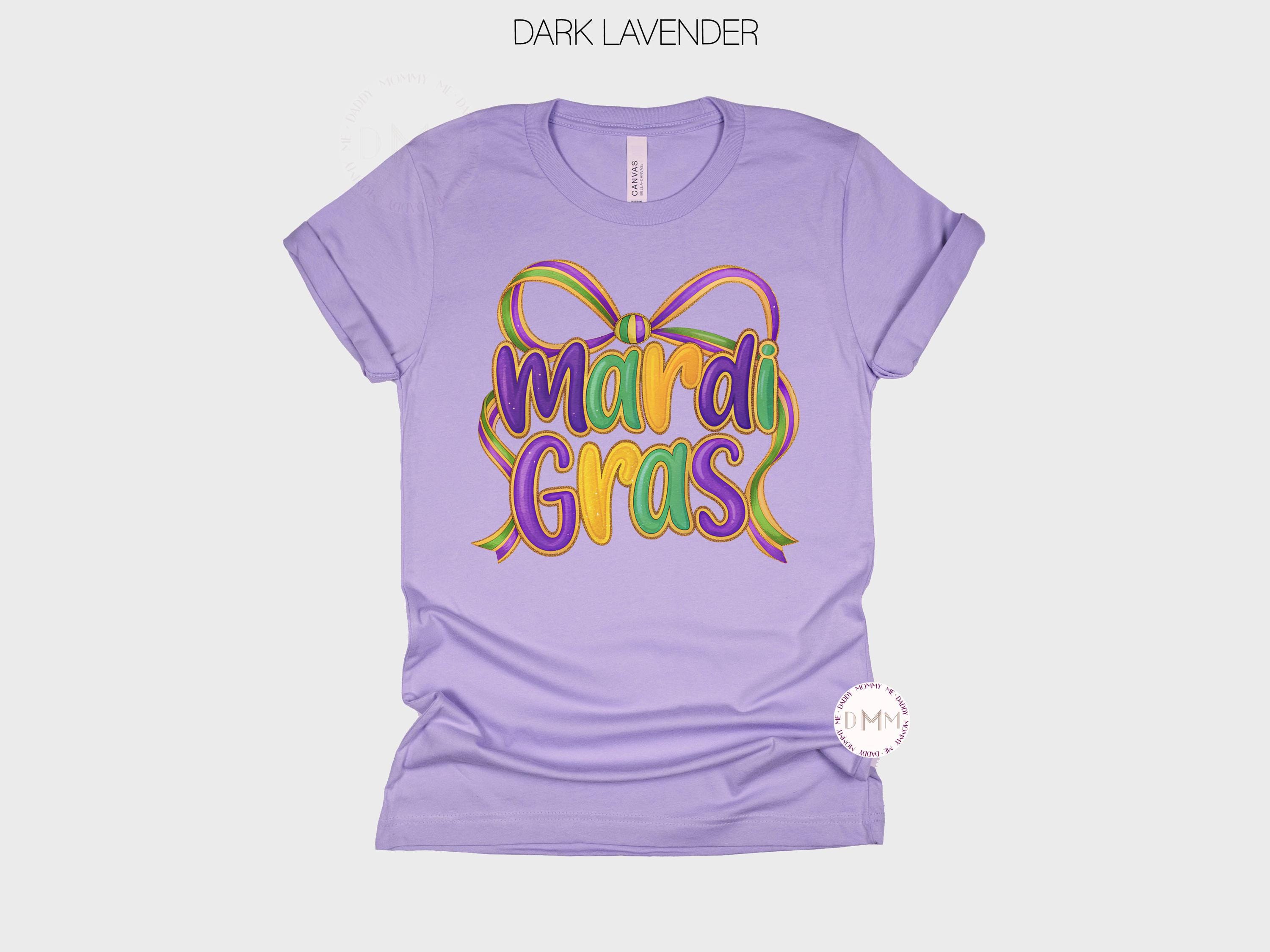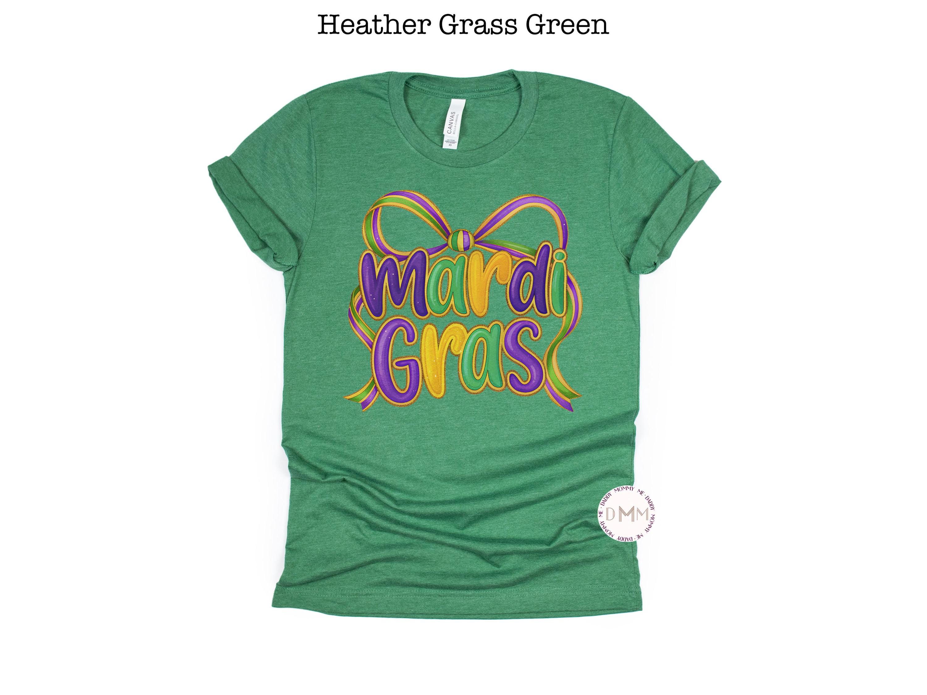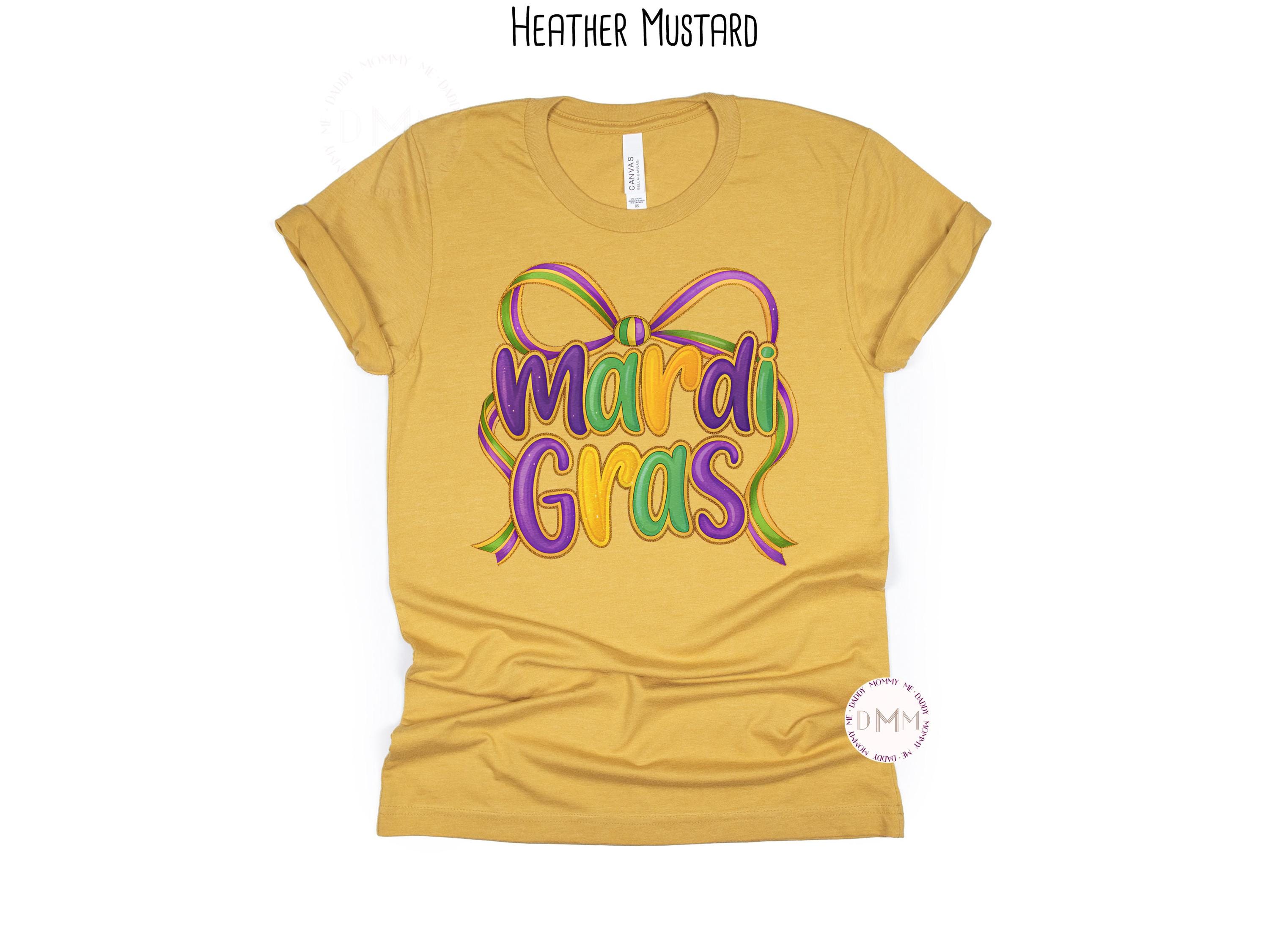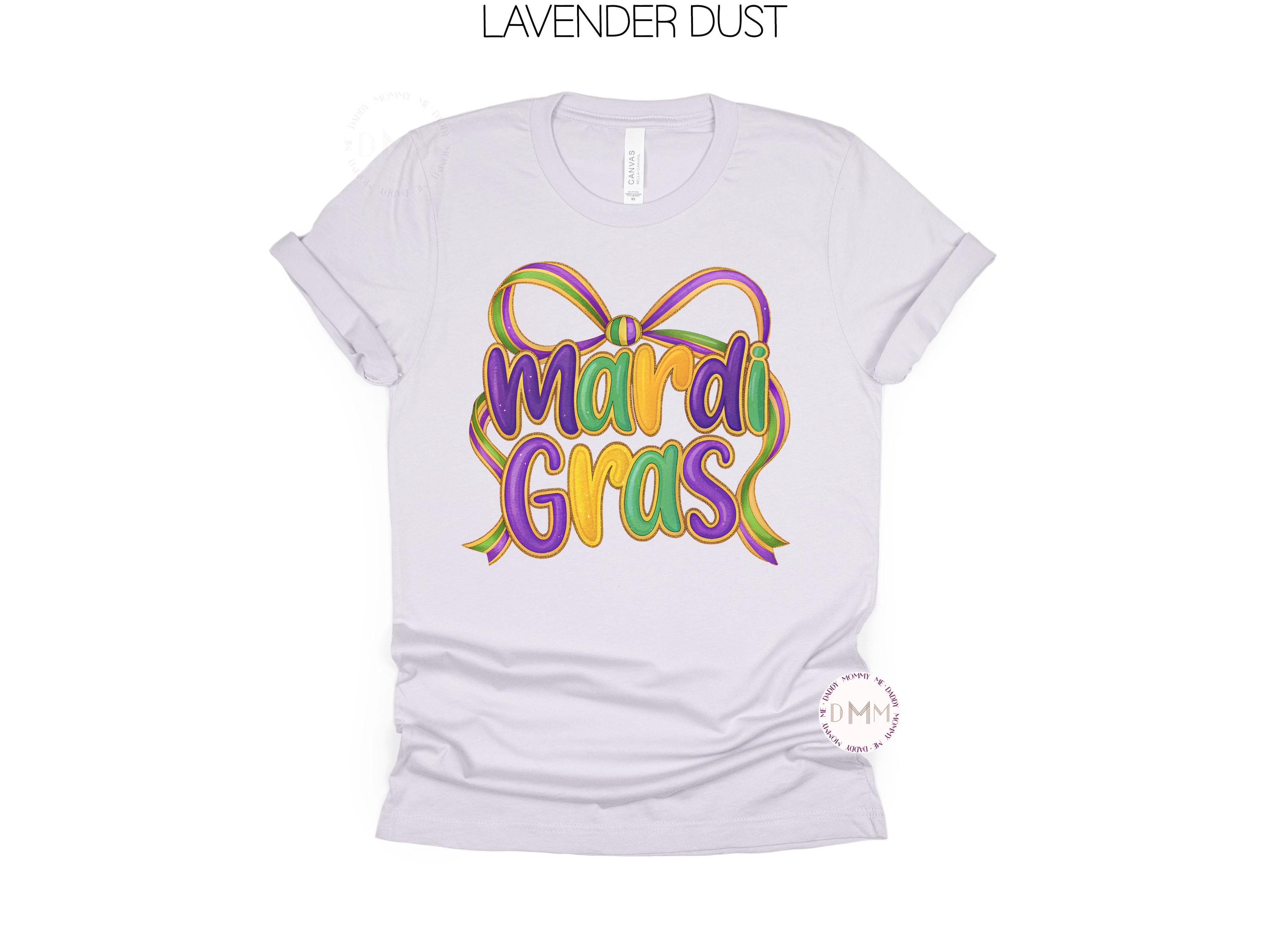 Celebrate Mardi Gras in style with this cute Mardi Gras bow tee featuring bold purple, green, and gold lettering. Perfect for parades, Fat Tuesday parties, or your next New Orleans trip, this festive shirt is soft, comfortable, and easy to style with jeans or shorts.