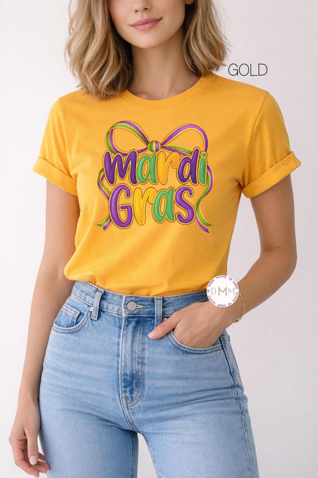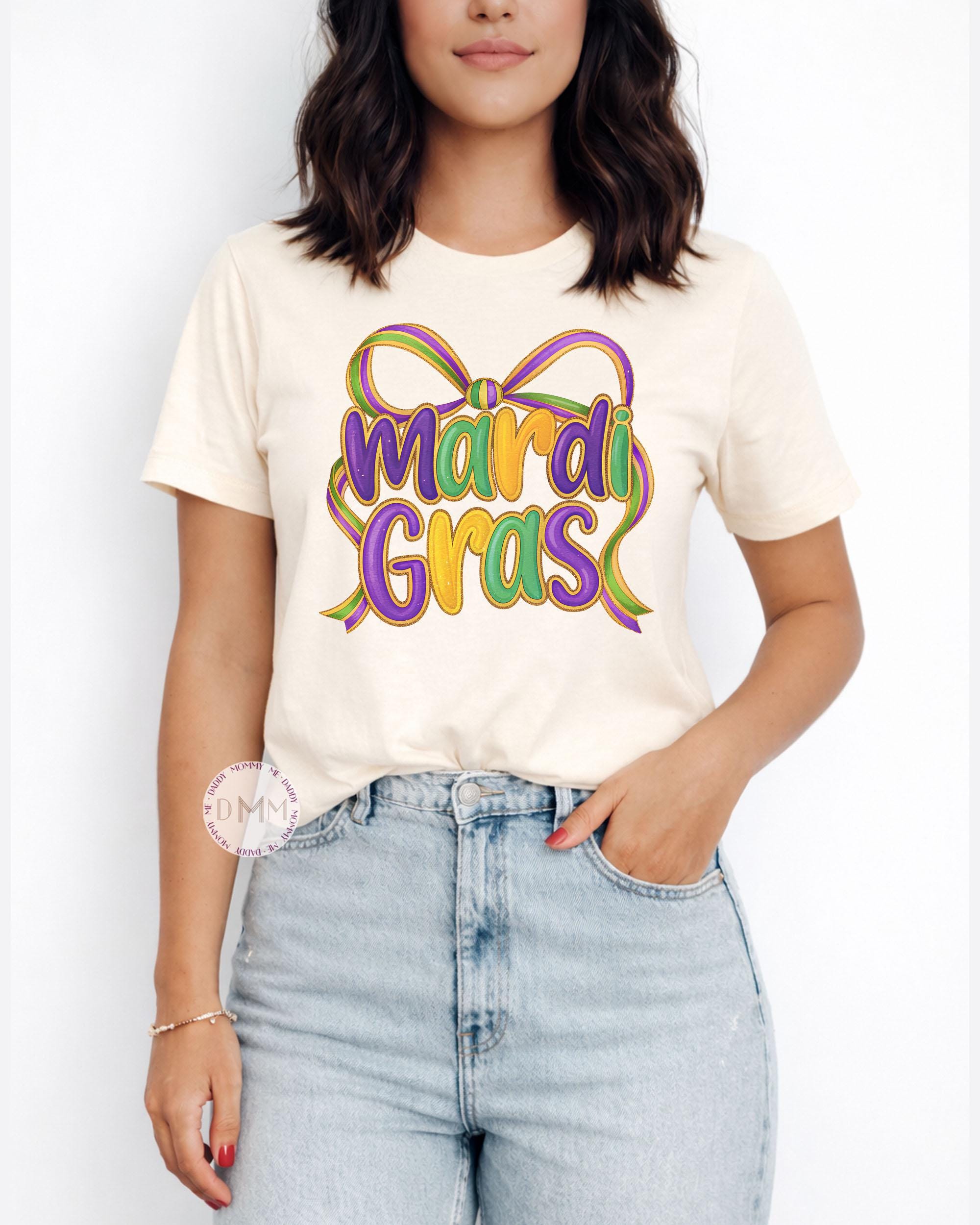 Mardi Gras Shirt with Bow | Cute Mardi Gras Tee | Fat Tuesday Shirt | Mardi Gras Outfit | New Orleans Festival Shirt | Carnival Shirt