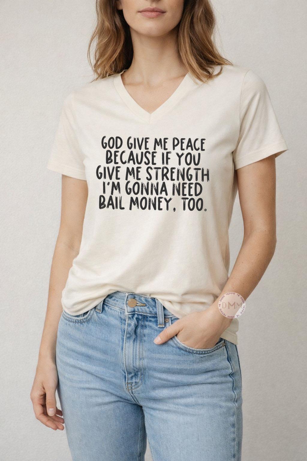 God Give Me Peace Funny Christian Shirt – Bella Canvas Unisex V-Neck – Faith Graphic Tee – Soft Inspirational Humor Shirt – Christian Gift