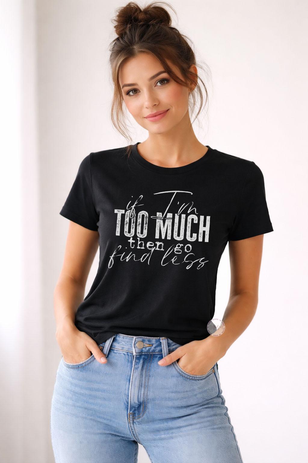 For the women who know their worth. This bold and confident graphic tee says it all: “If I’m Too Much Then Go Find Less.”