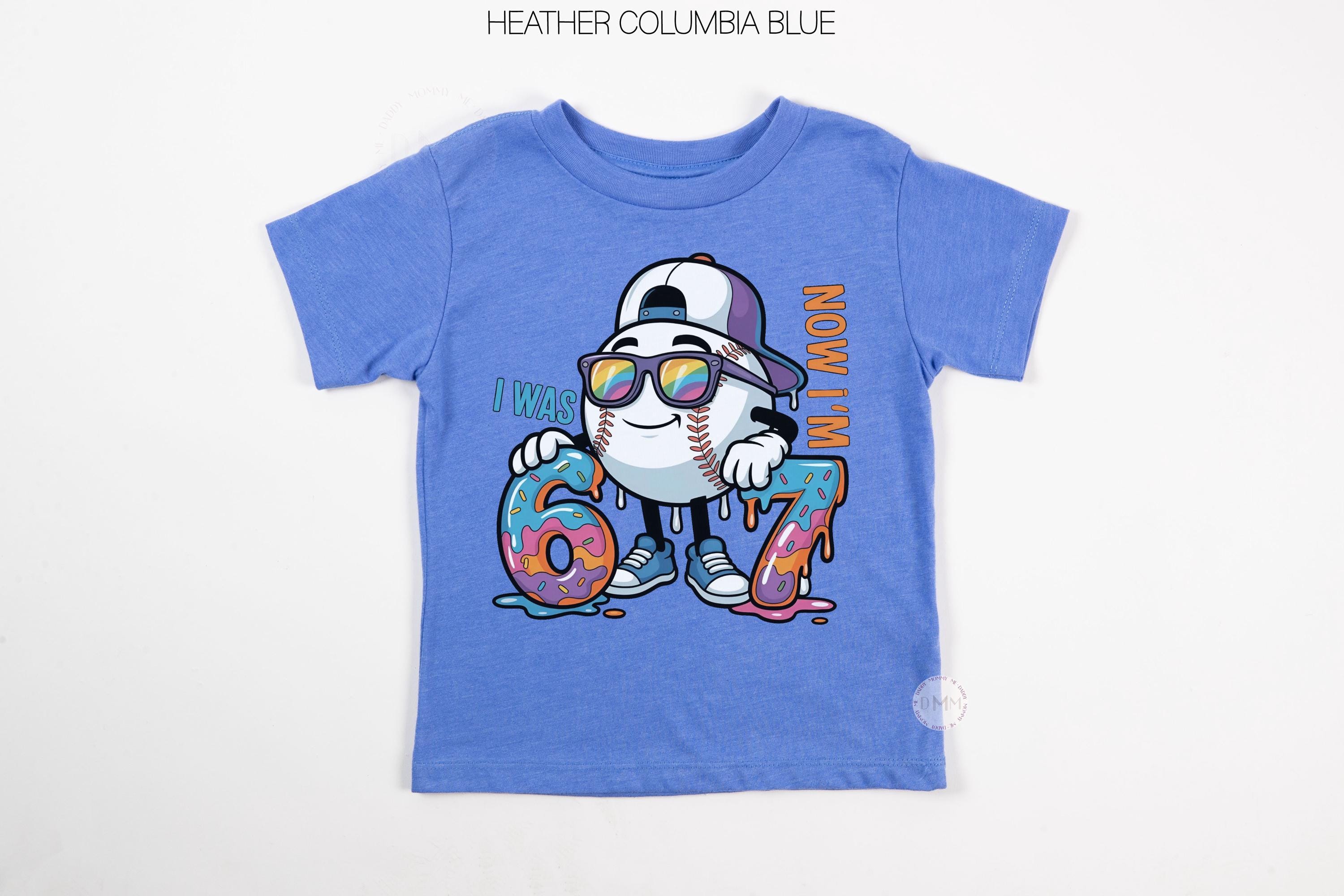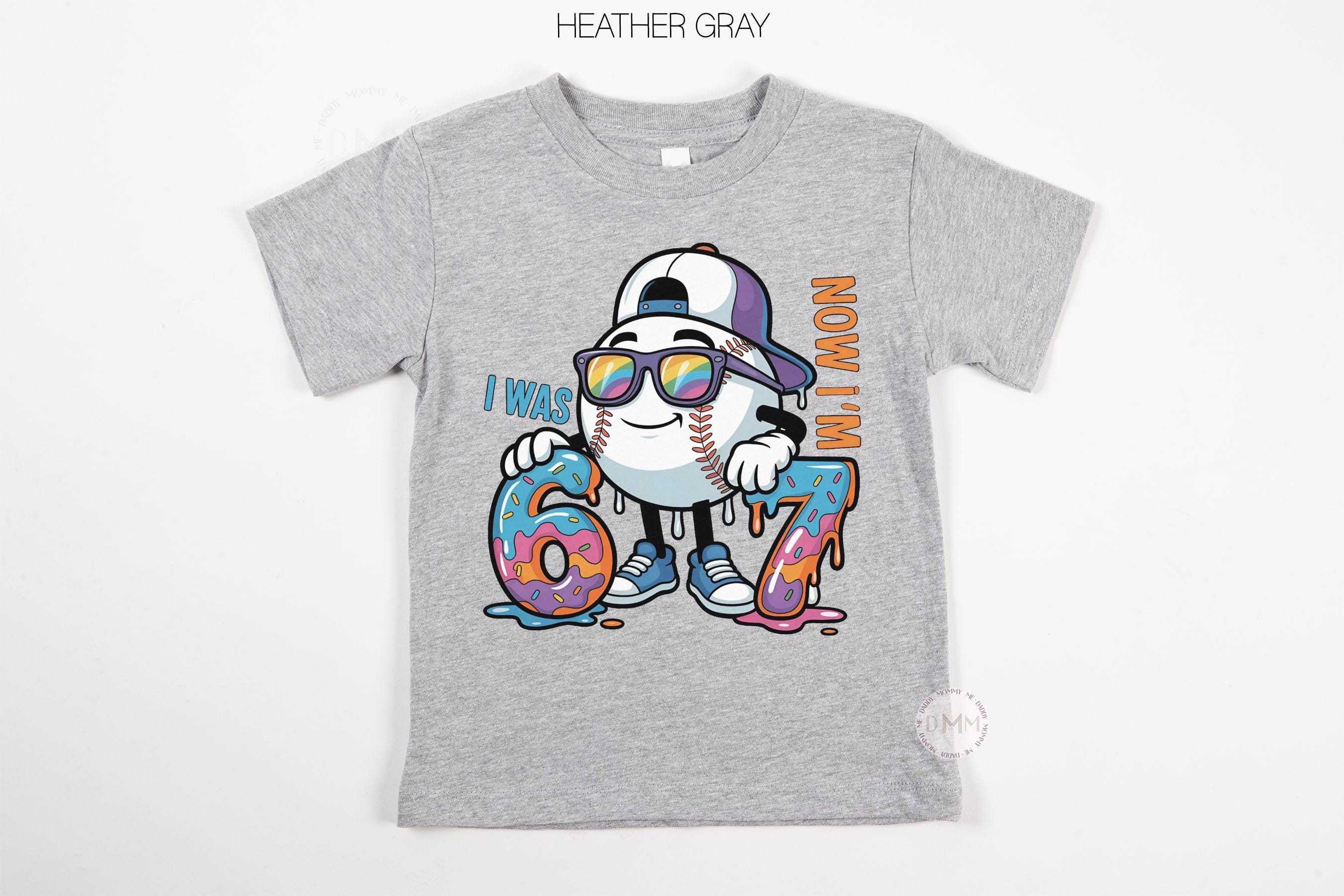 Celebrate turning 7 in style! This fun 67 baseball-themed birthday shirt is perfect for boys who love sports, donuts, and cool birthday outfits.
