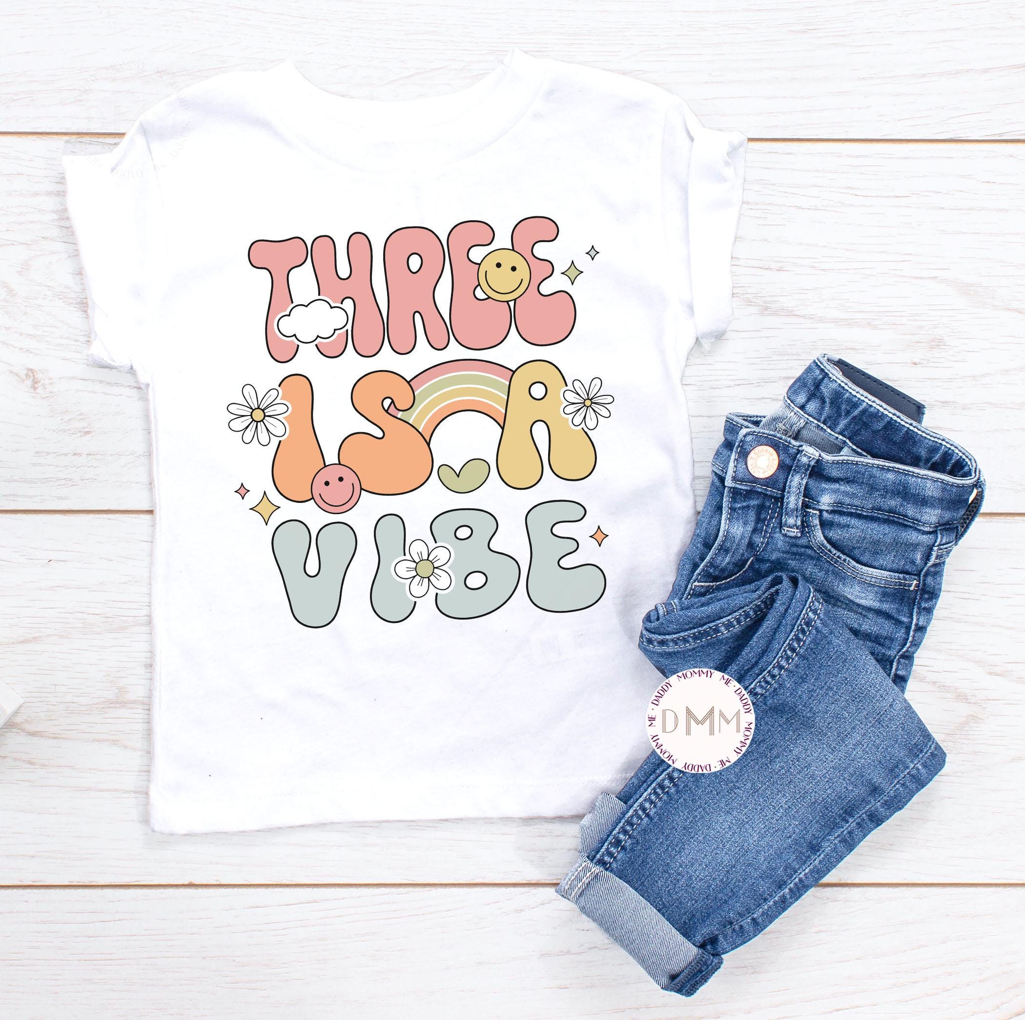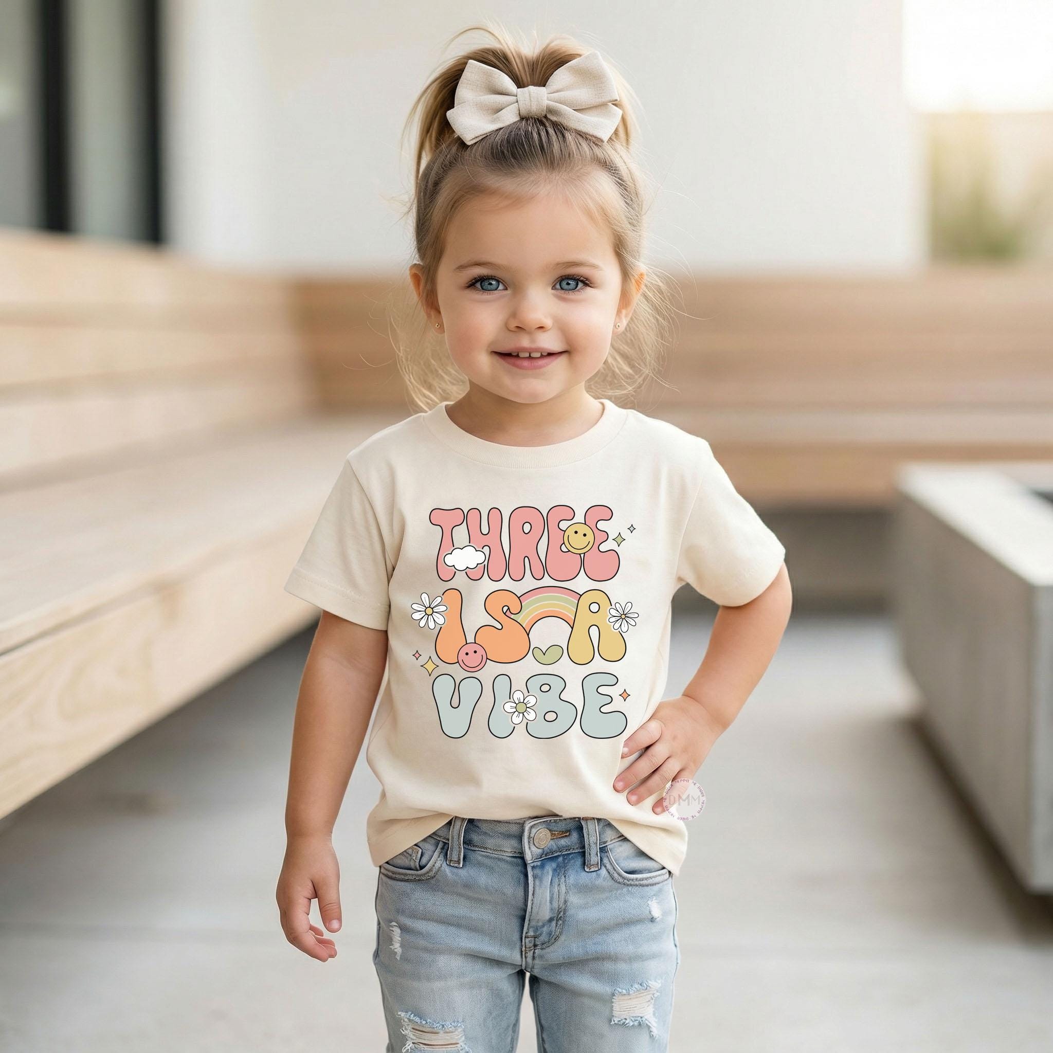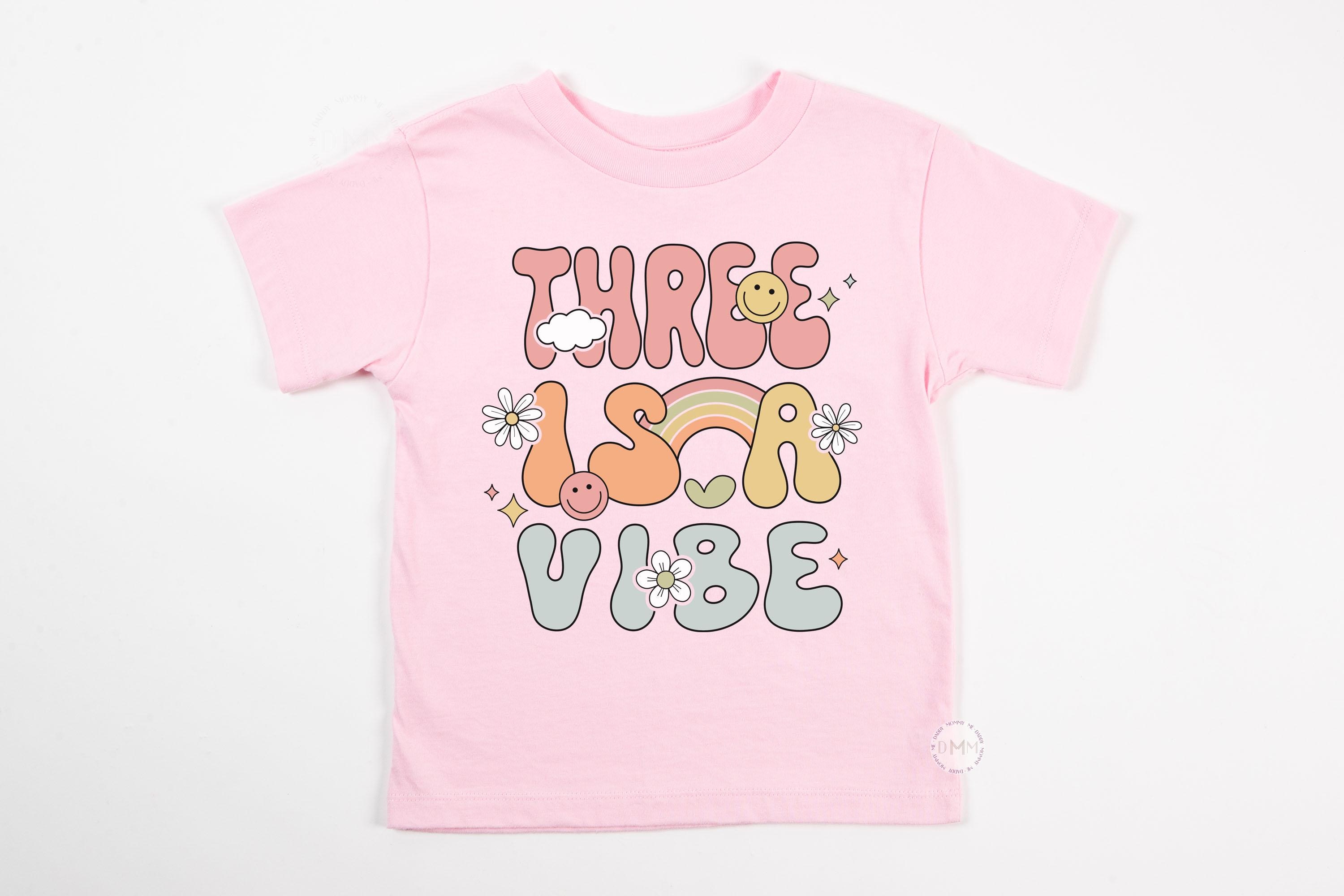 Three Is A Vibe Shirt, 3rd Birthday Girl Shirt, Retro Third Birthday Outfit, Toddler Girl Birthday Tee, Age 3 Shirt, Cute Kids Birthday Top